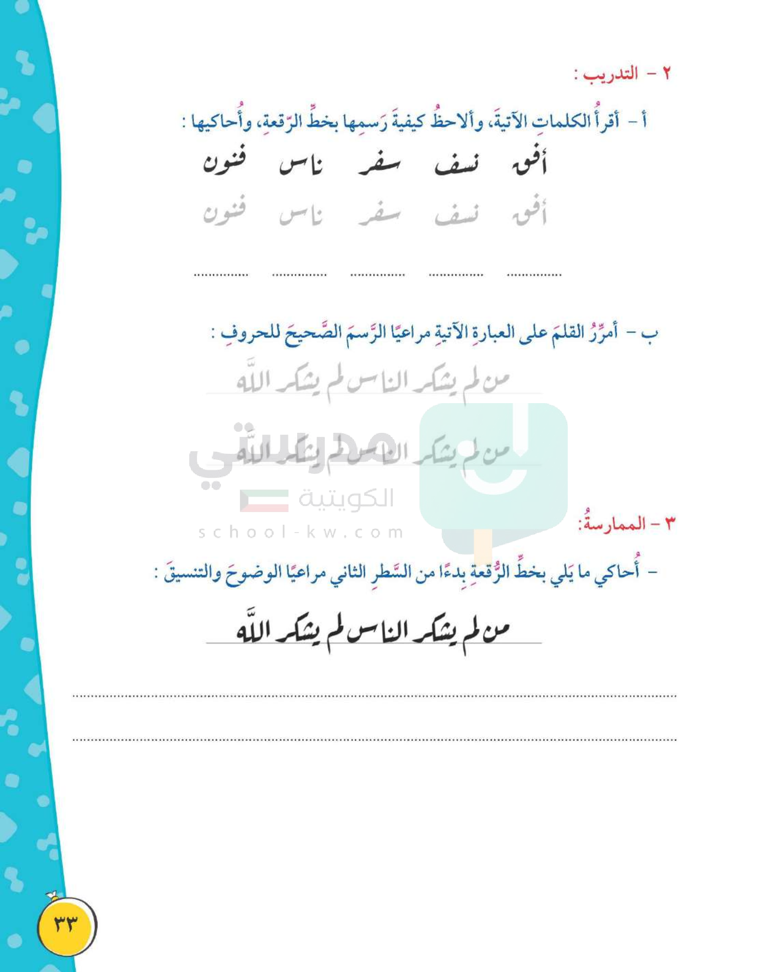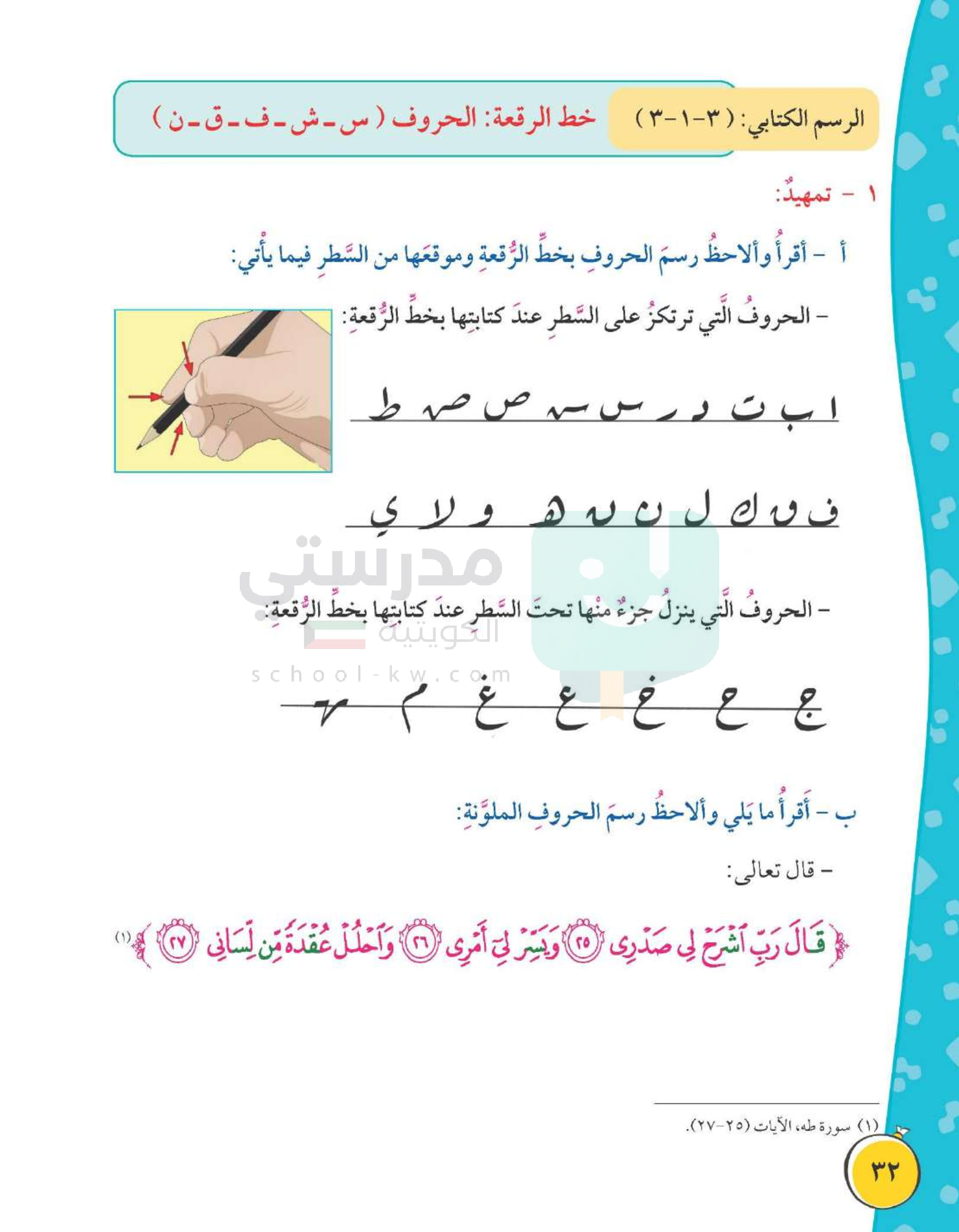 خط الرقعة: الحروف (س - ش - ف - ق - ن)
