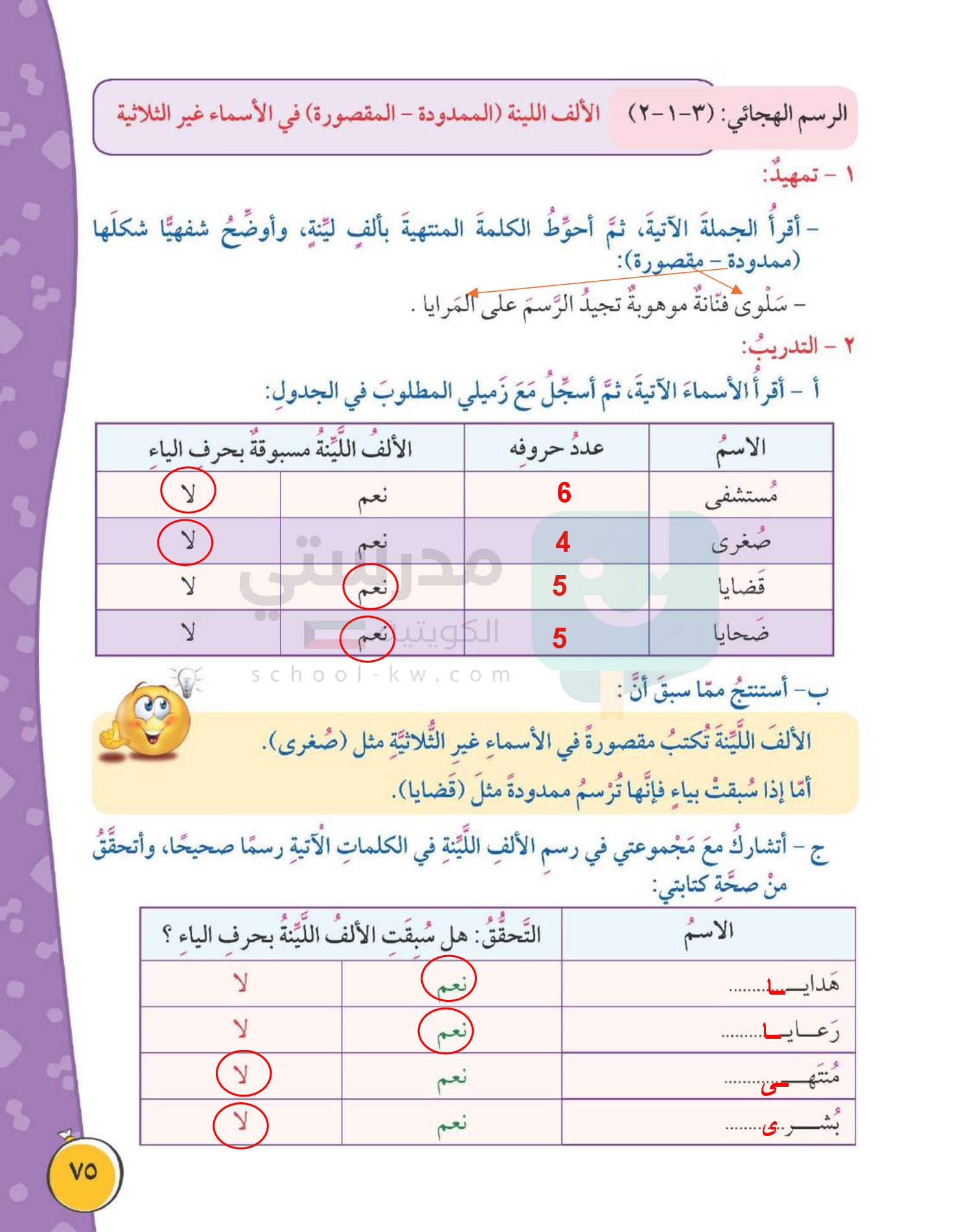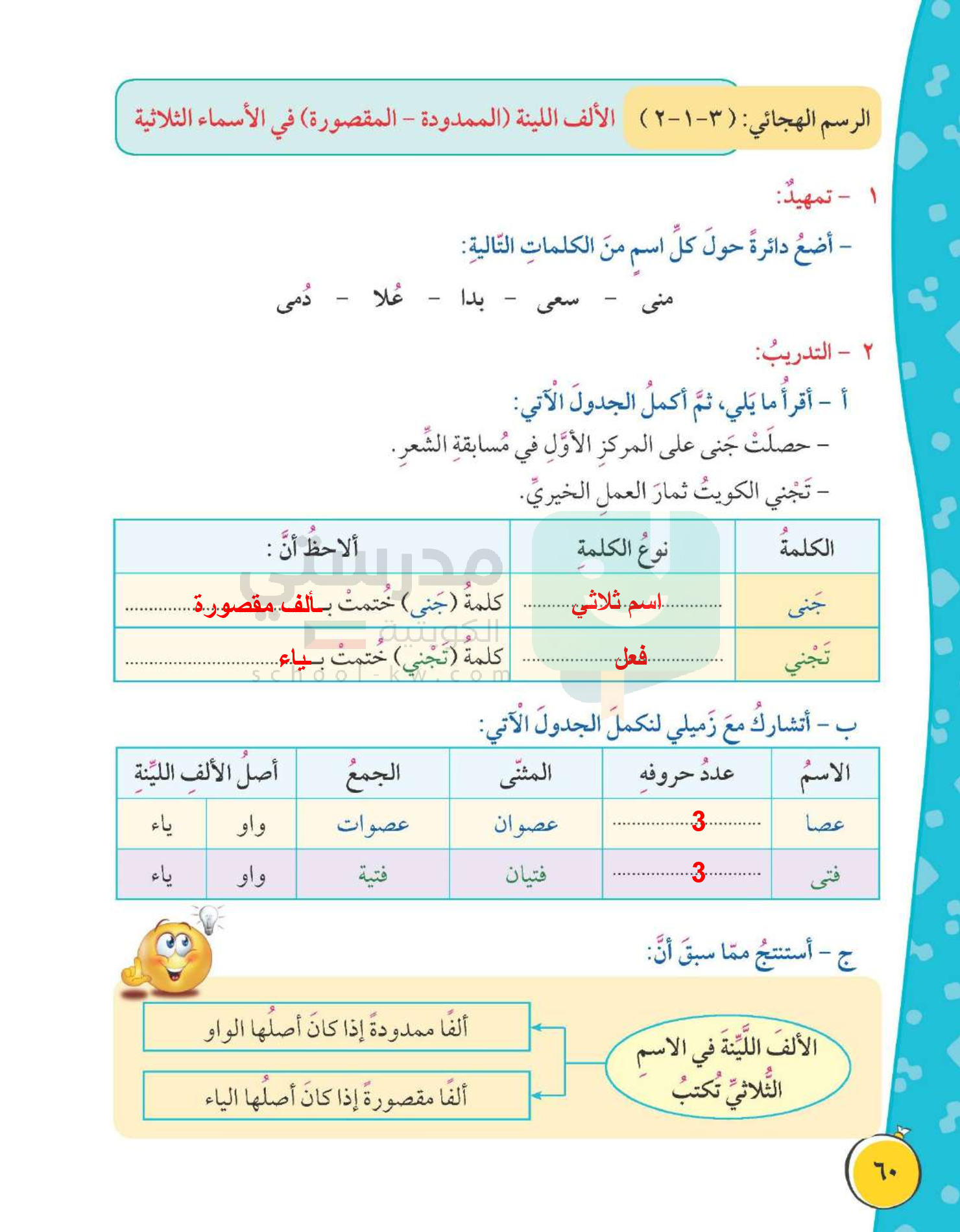 الألف اللينة (الممدودة - المقصورة) في الأسماء الثلاثية