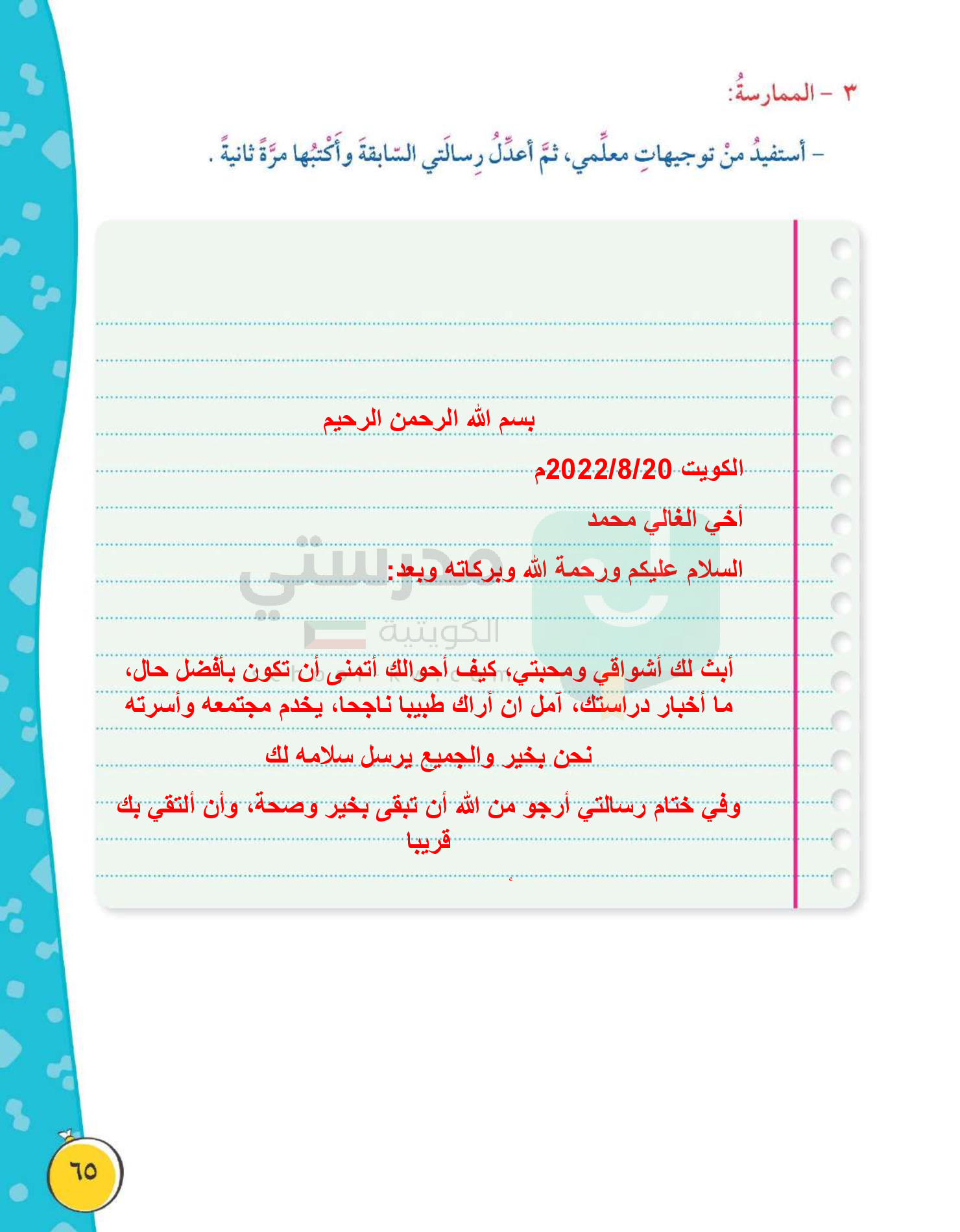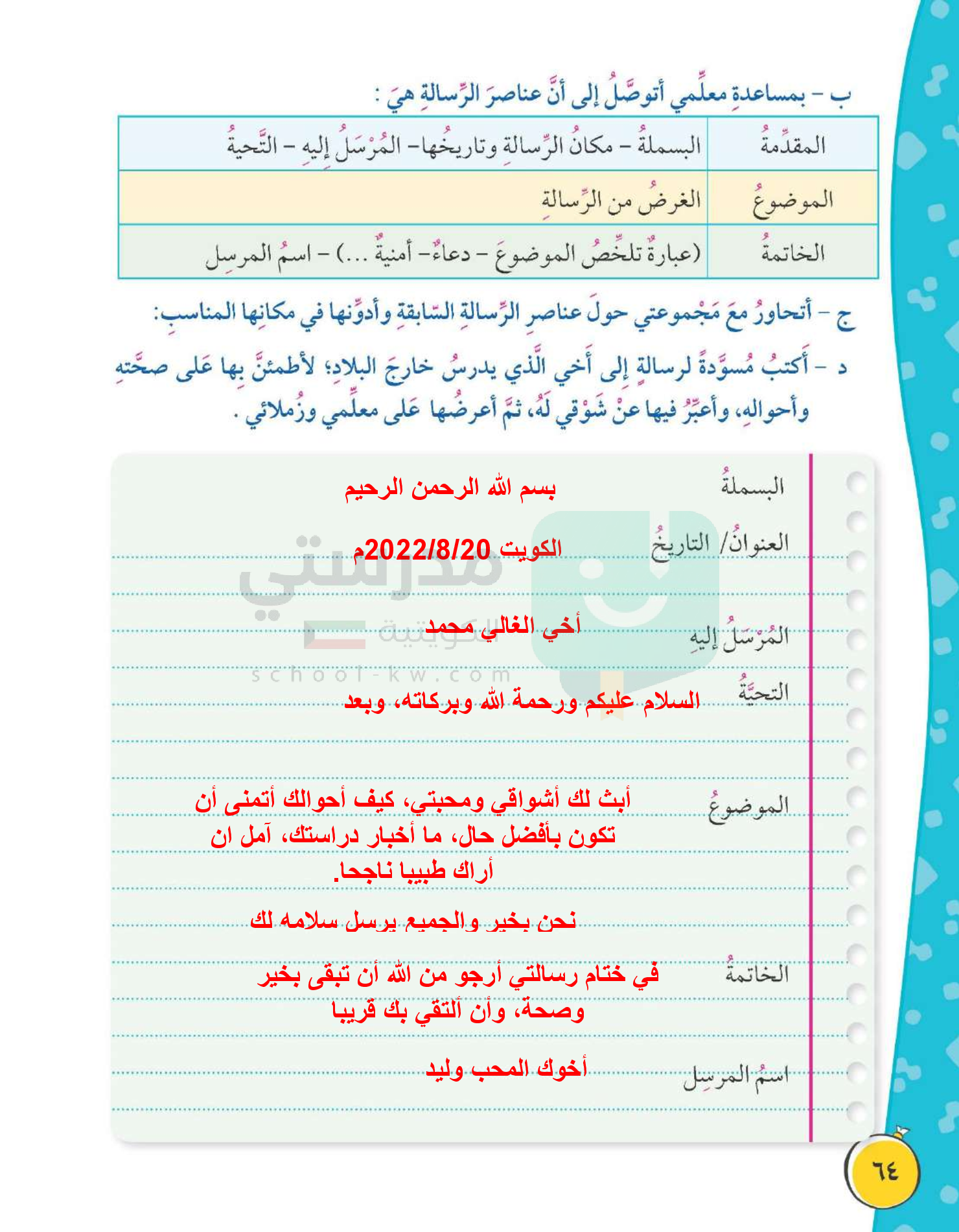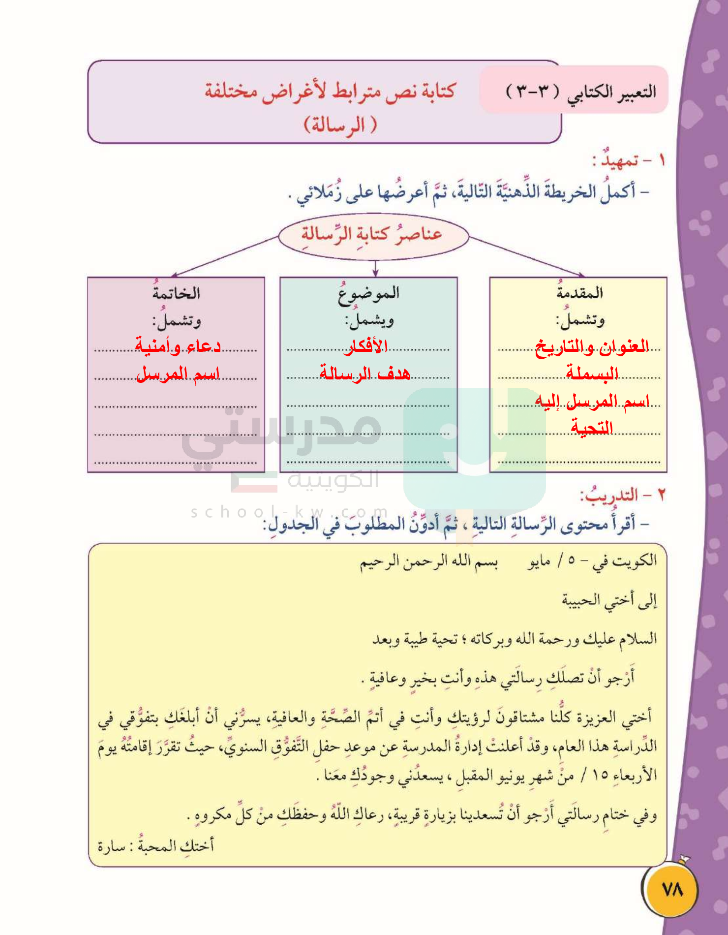 كتابة نص مترابط لأغراض مختلفة (الرسالة)