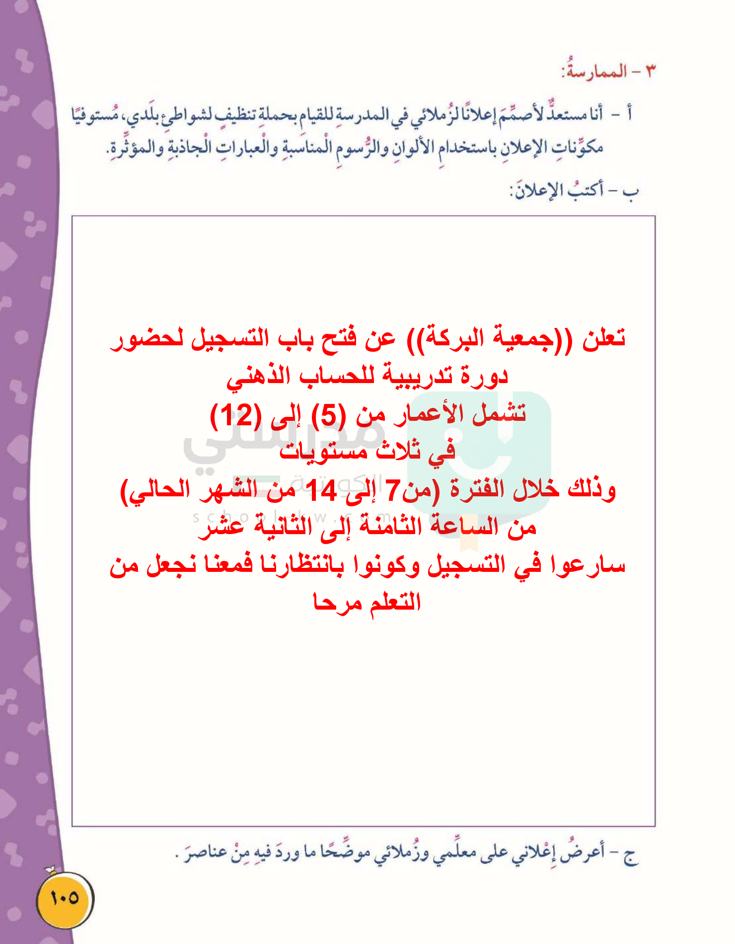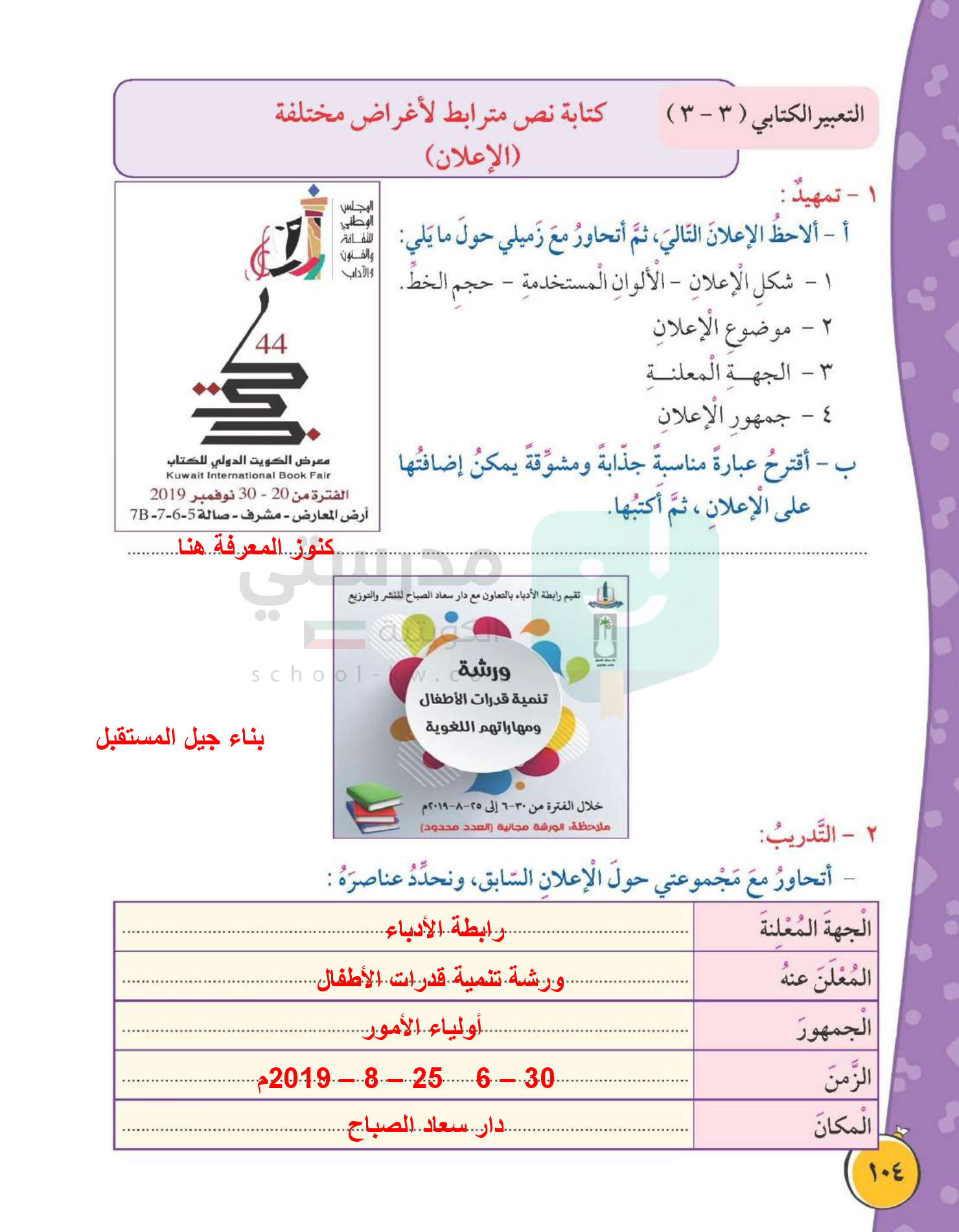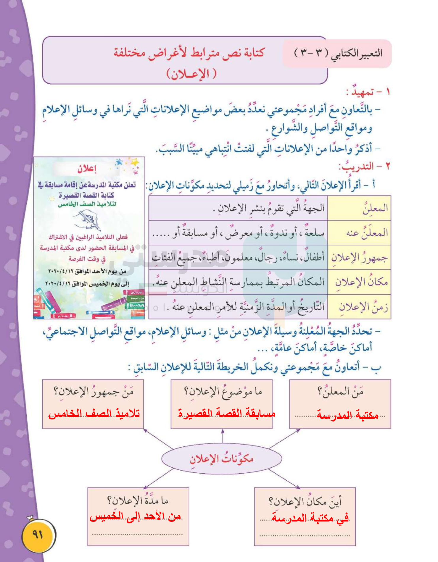 كتابة نص مترابط لأغراض مختلفة (الاعلان)