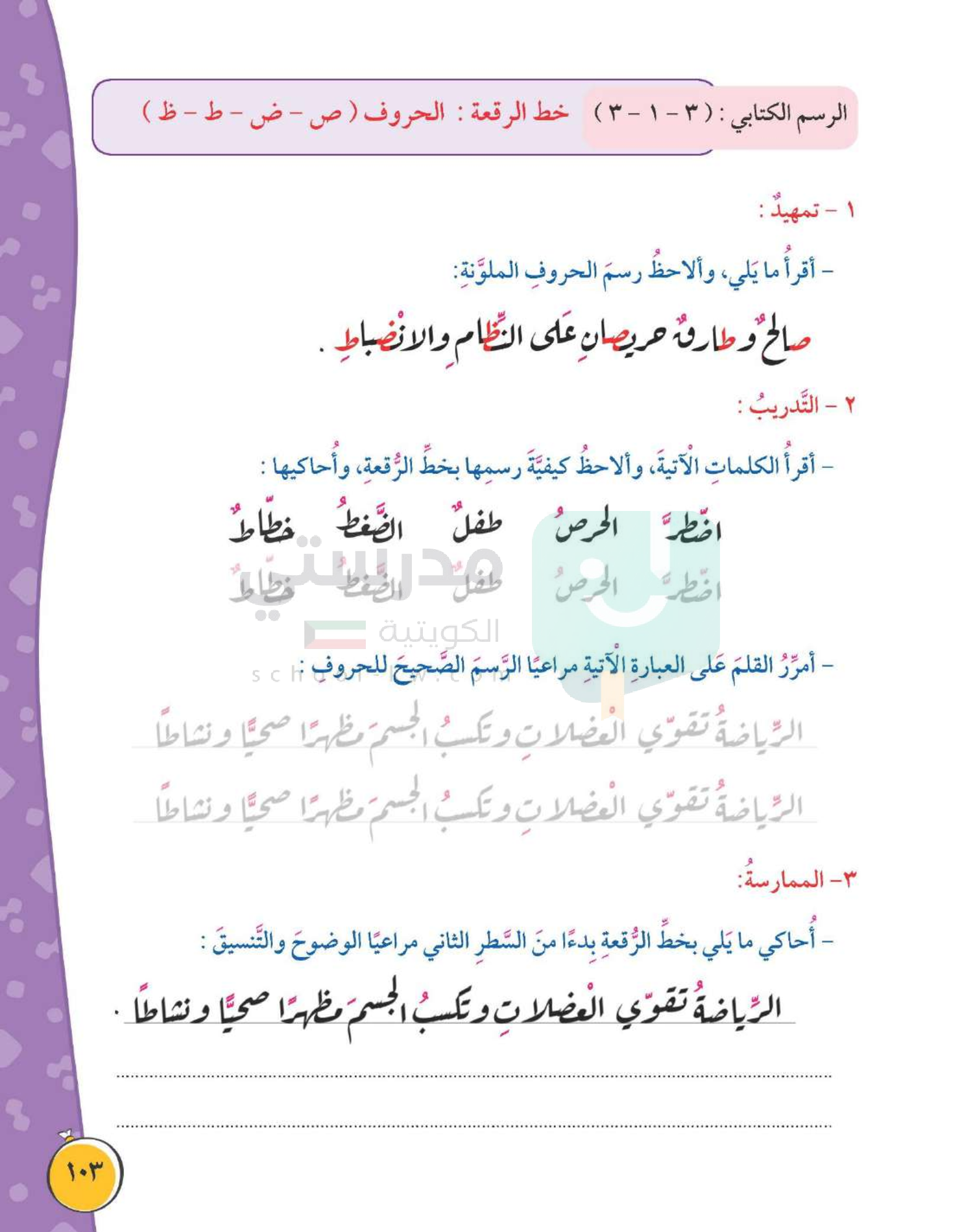 خط الرقعة: الحروف (ص ض - ط - ظ)