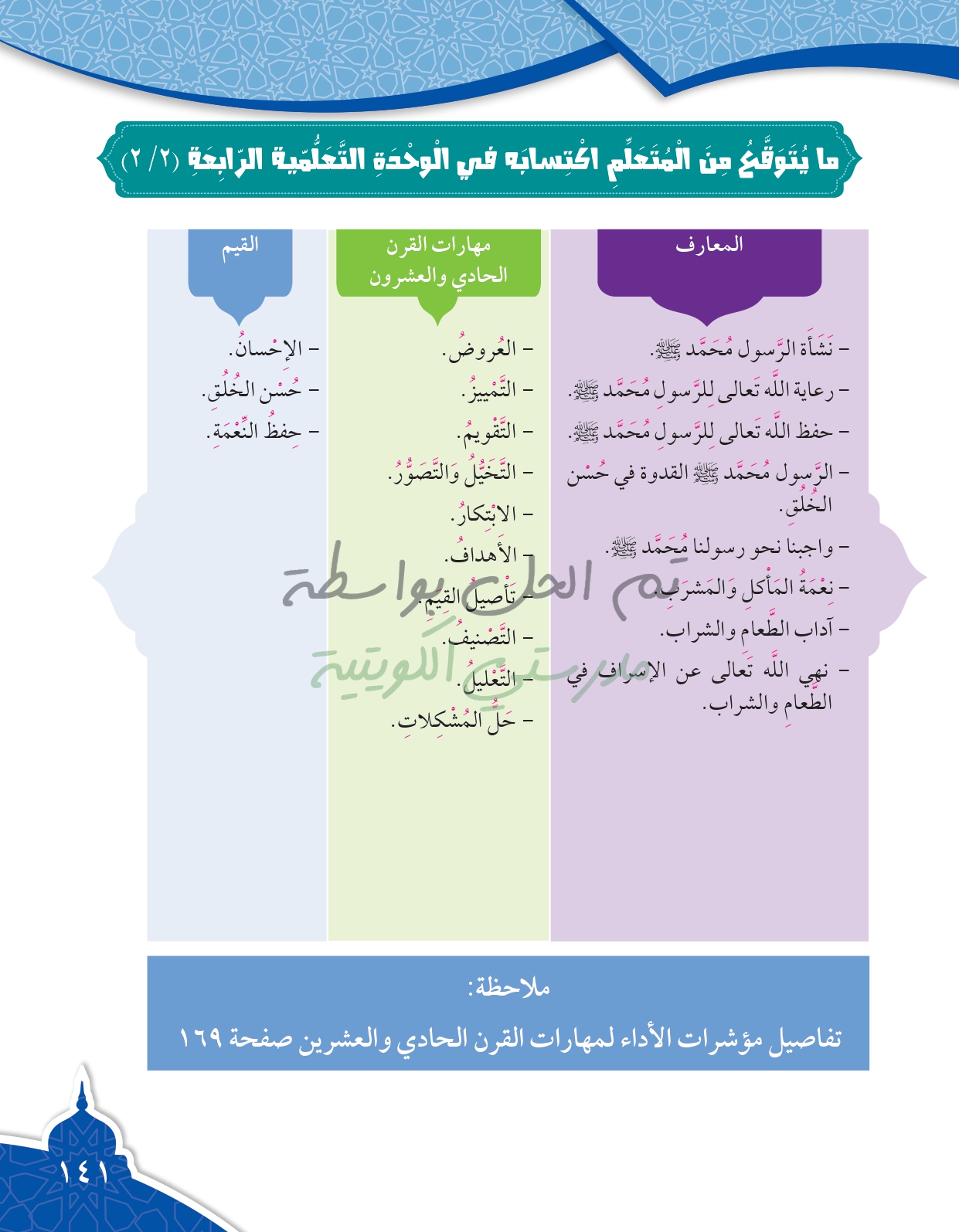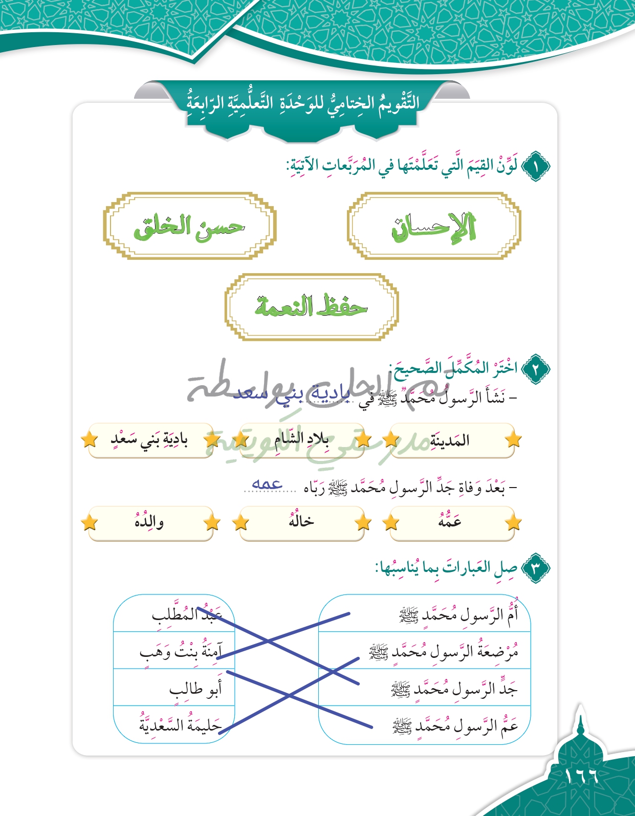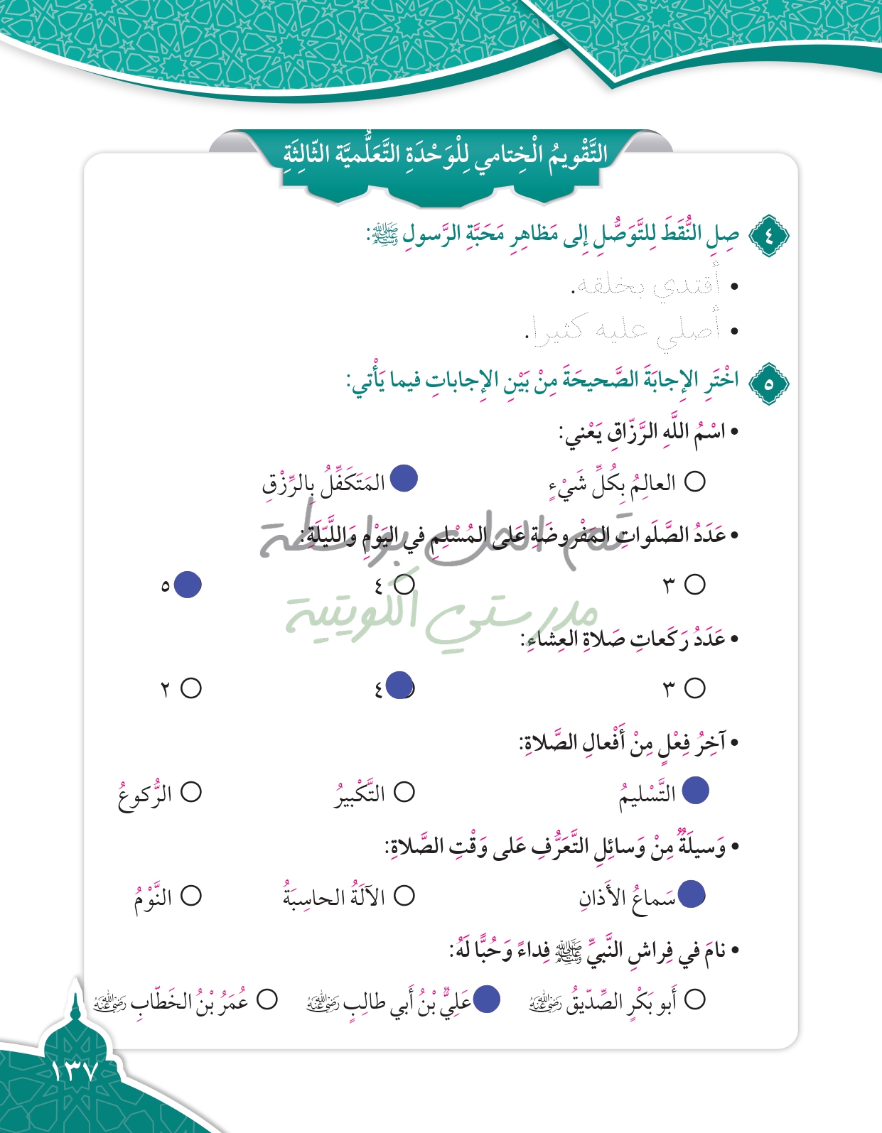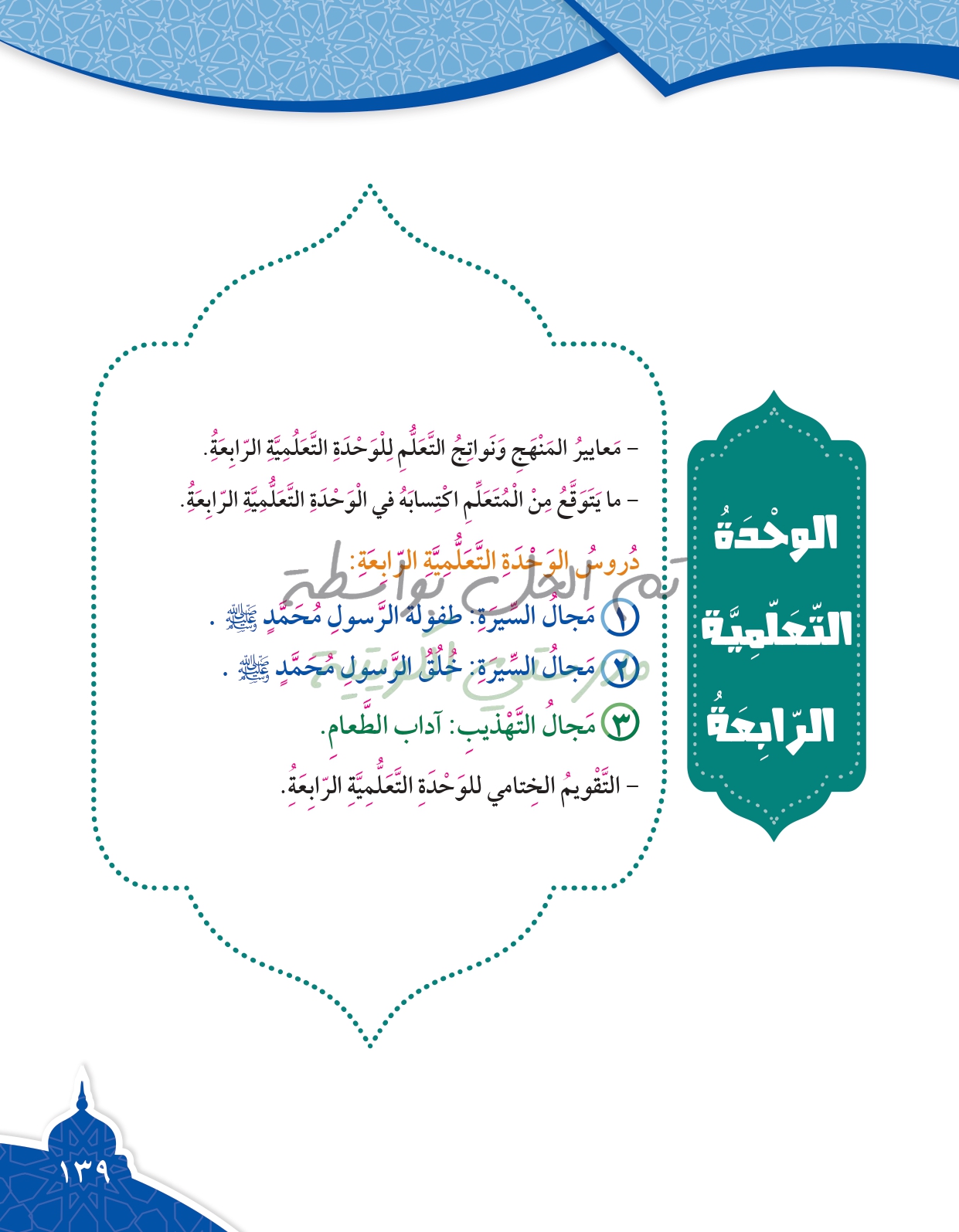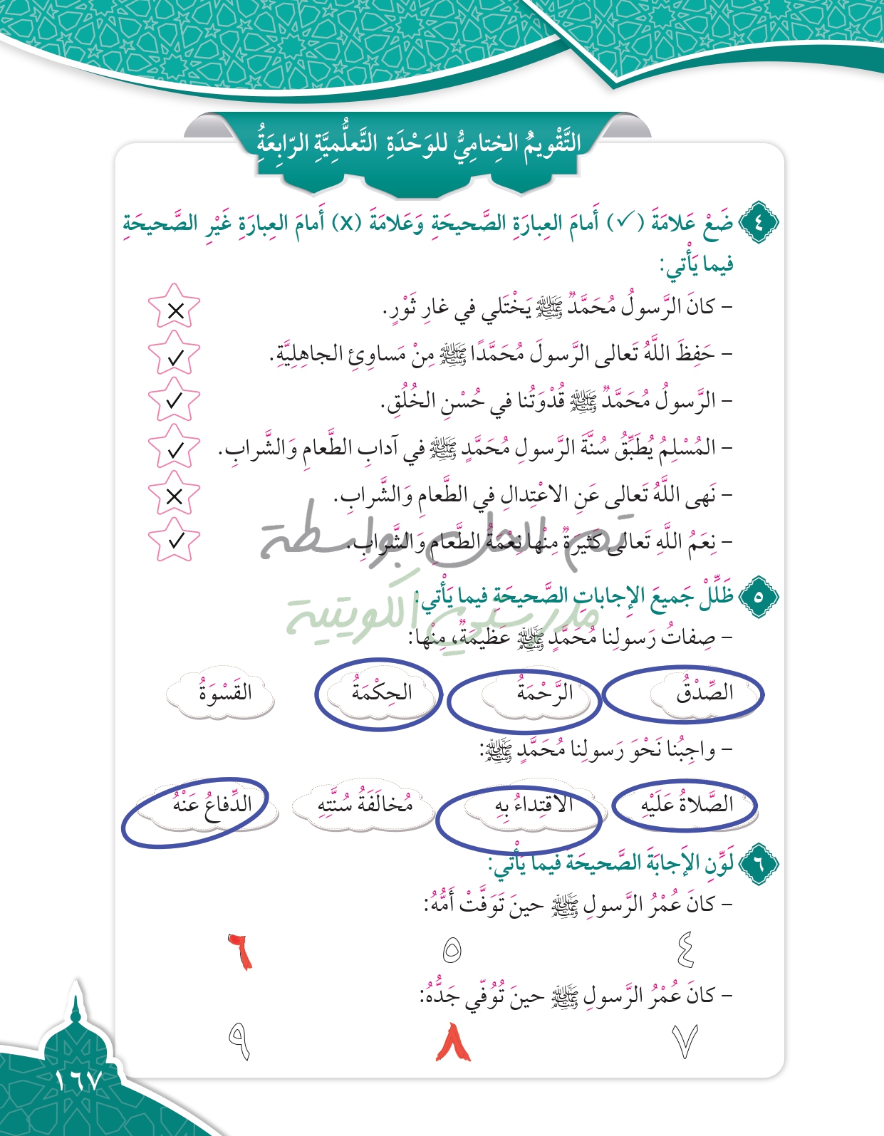 تقويم الوحدة الرابعة