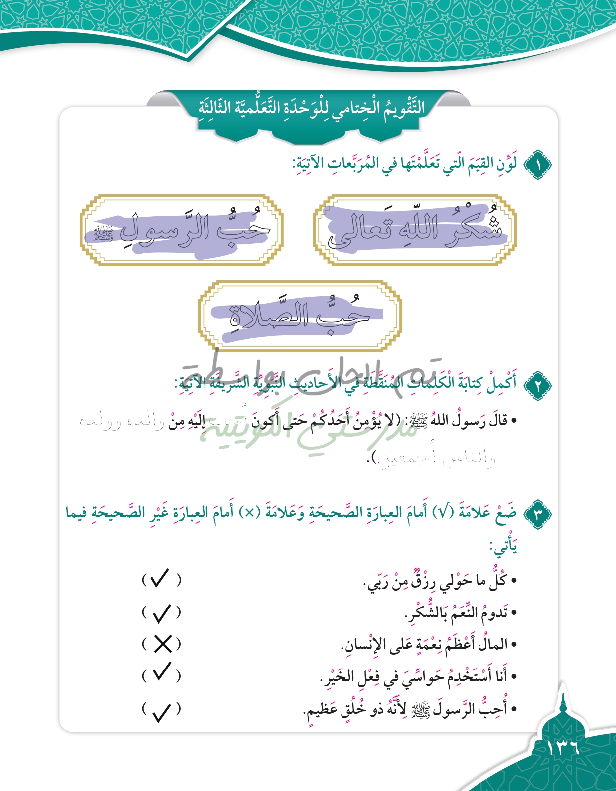 تقويم الوحدة الثالثة