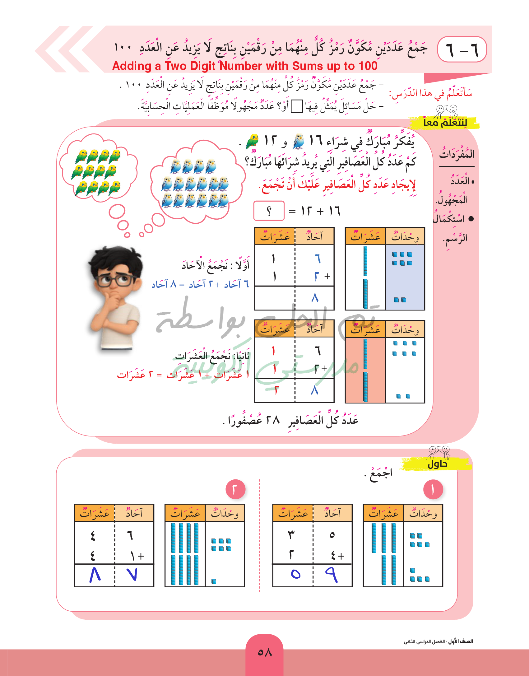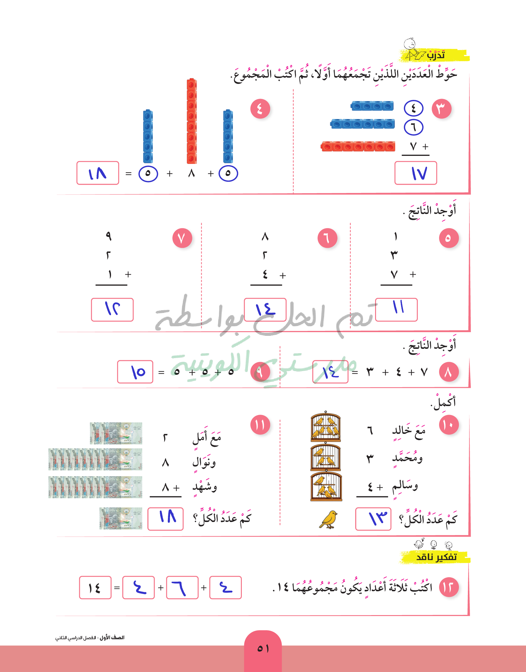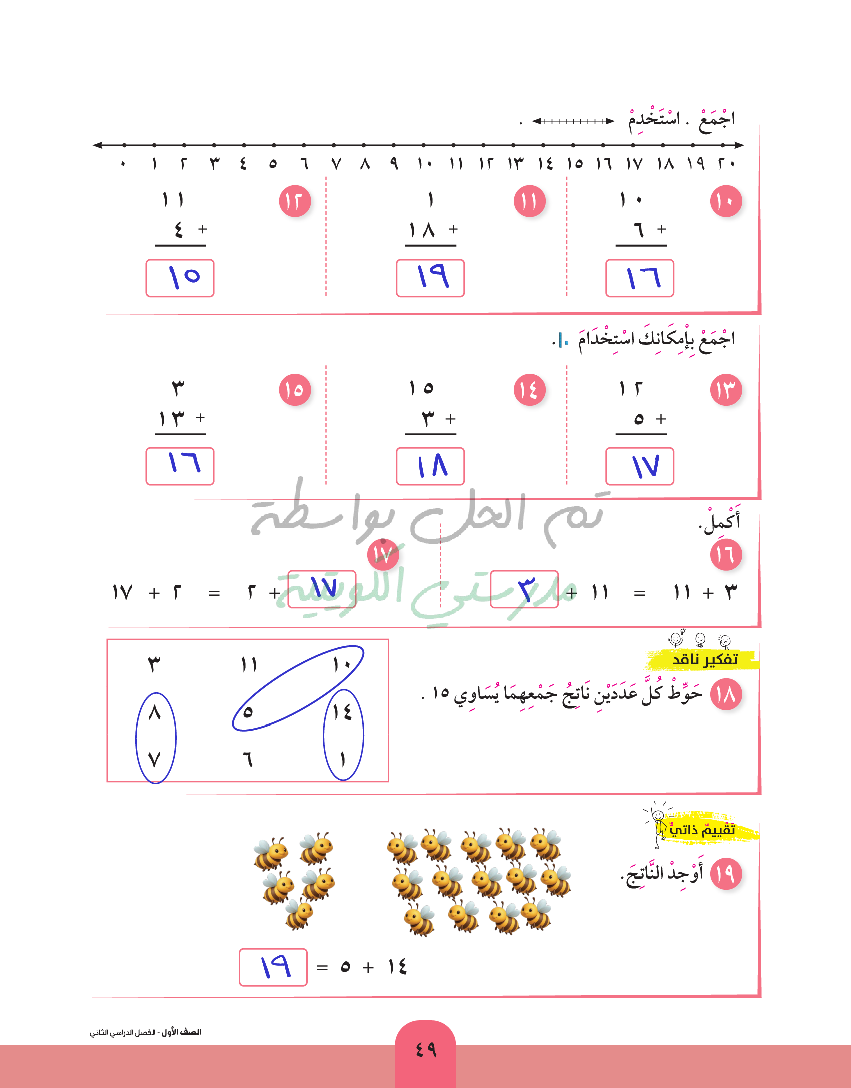 جمع عددين مكون رمز كل منهما من رقمين بناتج لا يزيد عن العدد 100