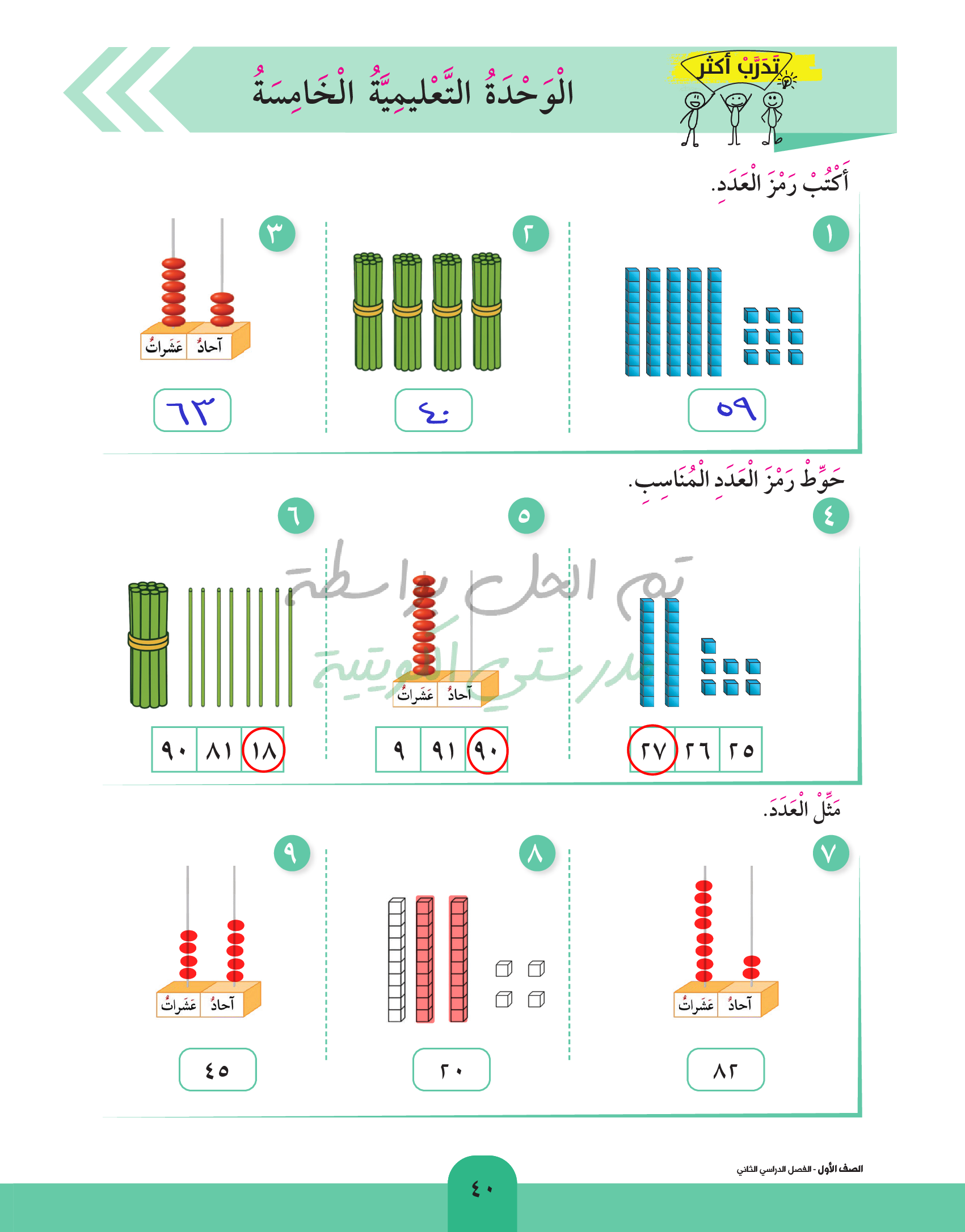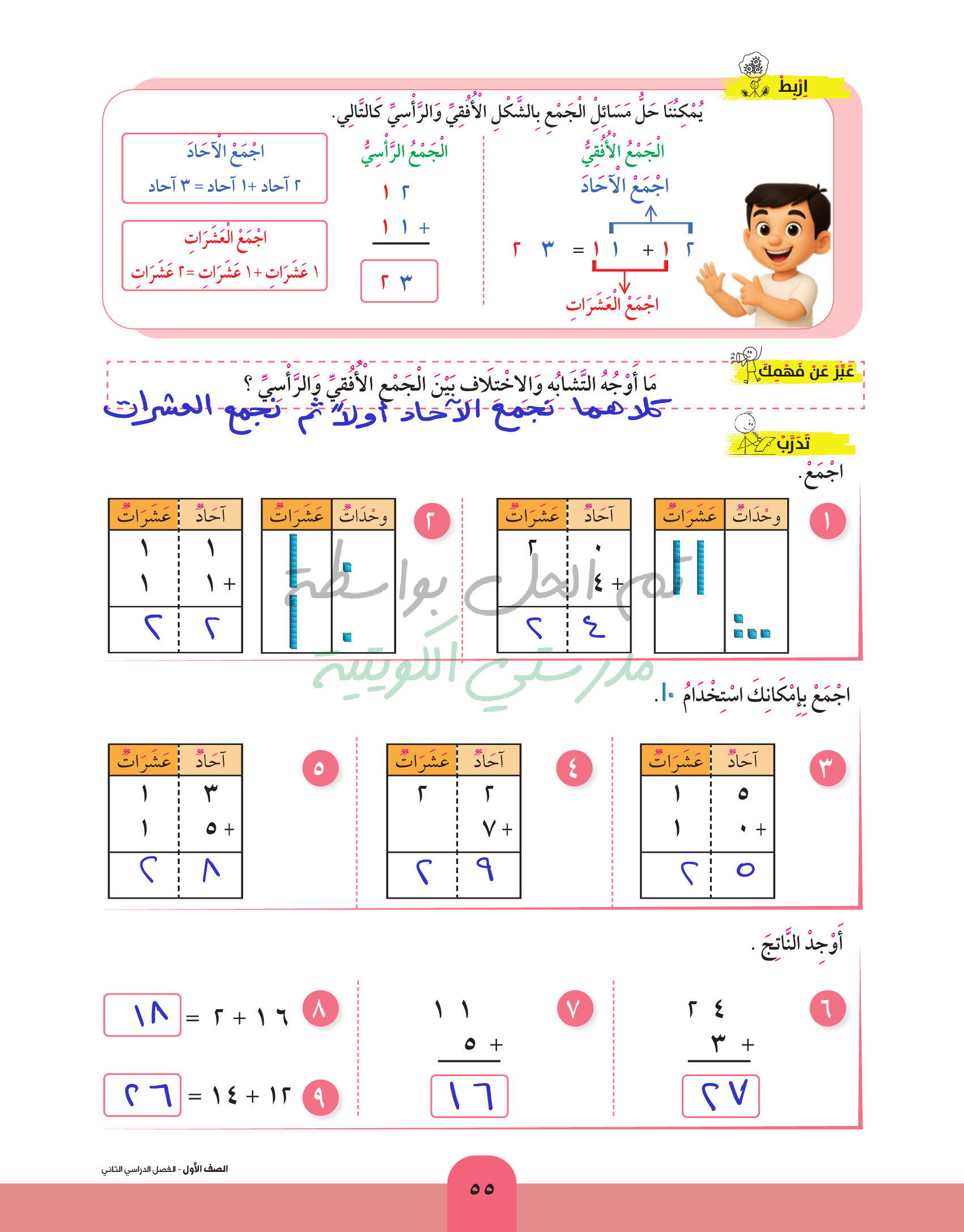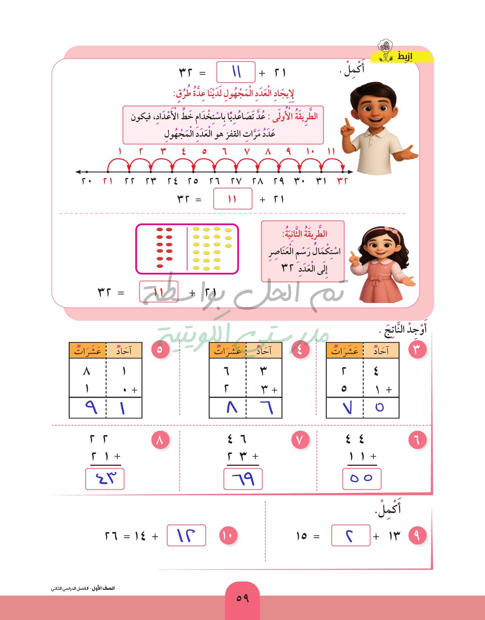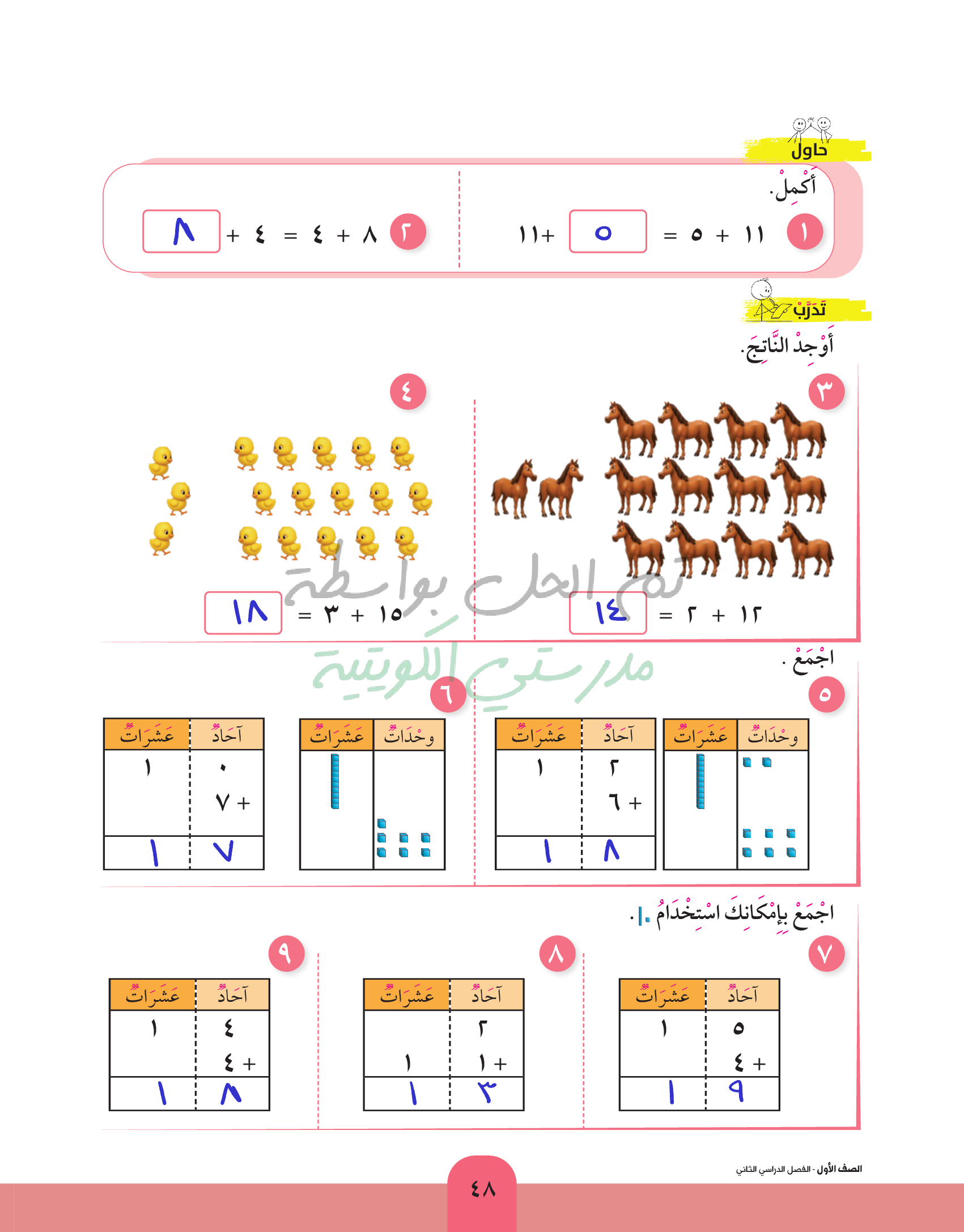 جمع عددين مكون رمز كل منهما من رقمين بناتج لا يزيد عن العدد 100