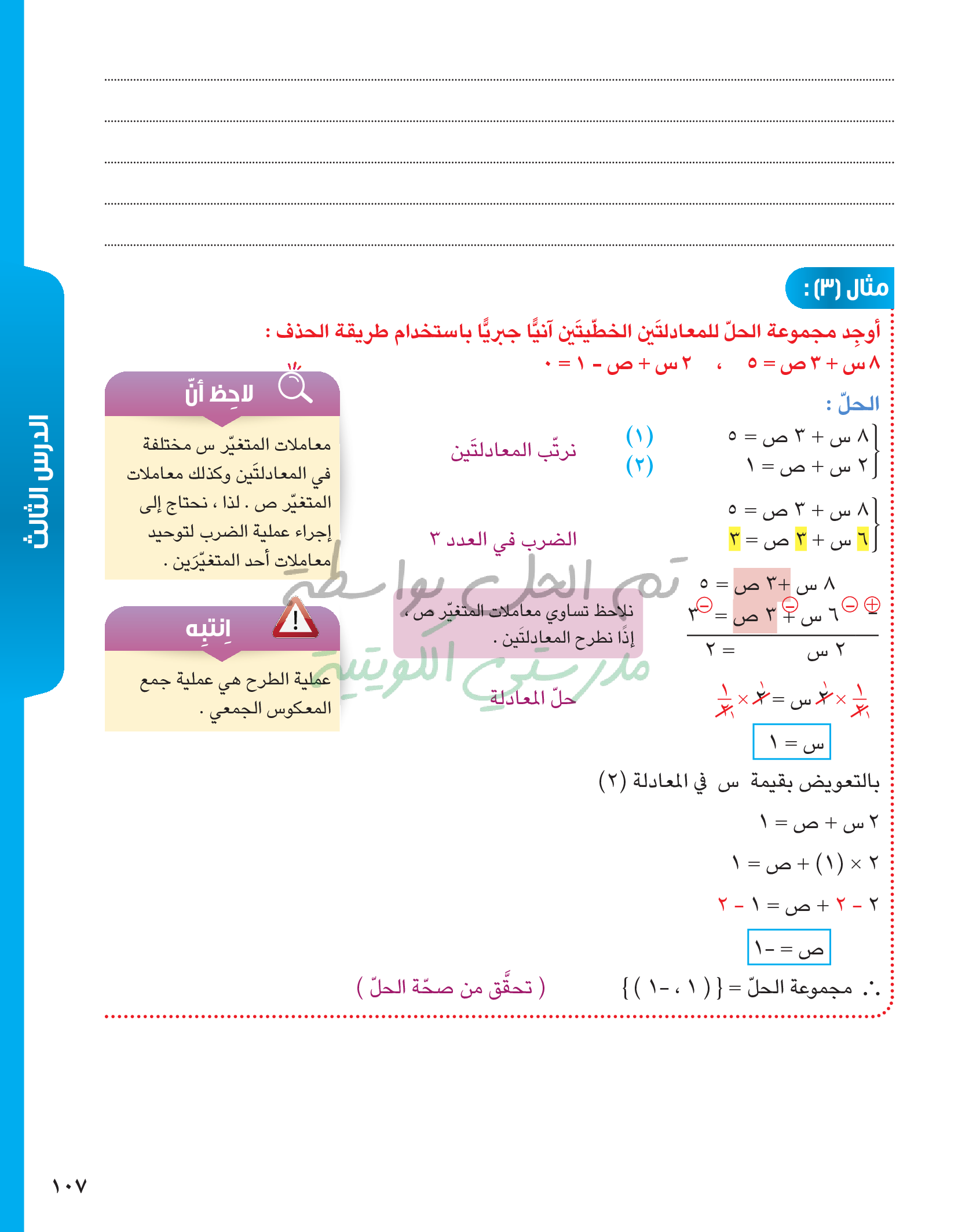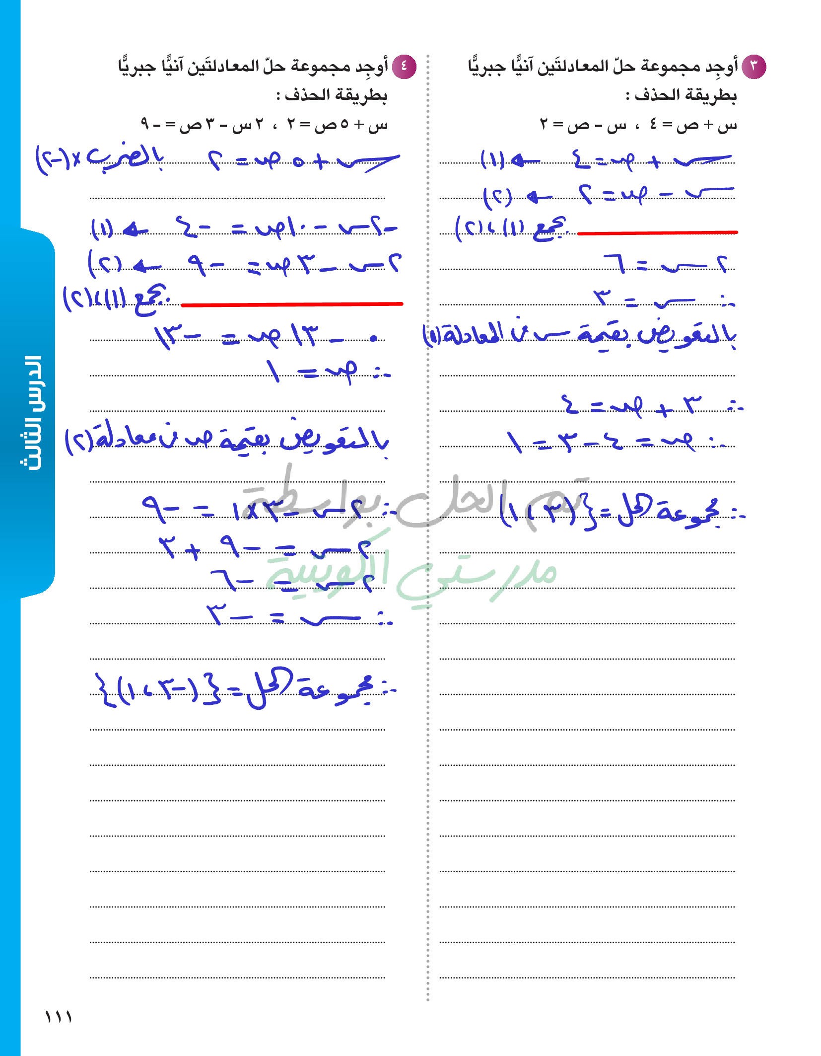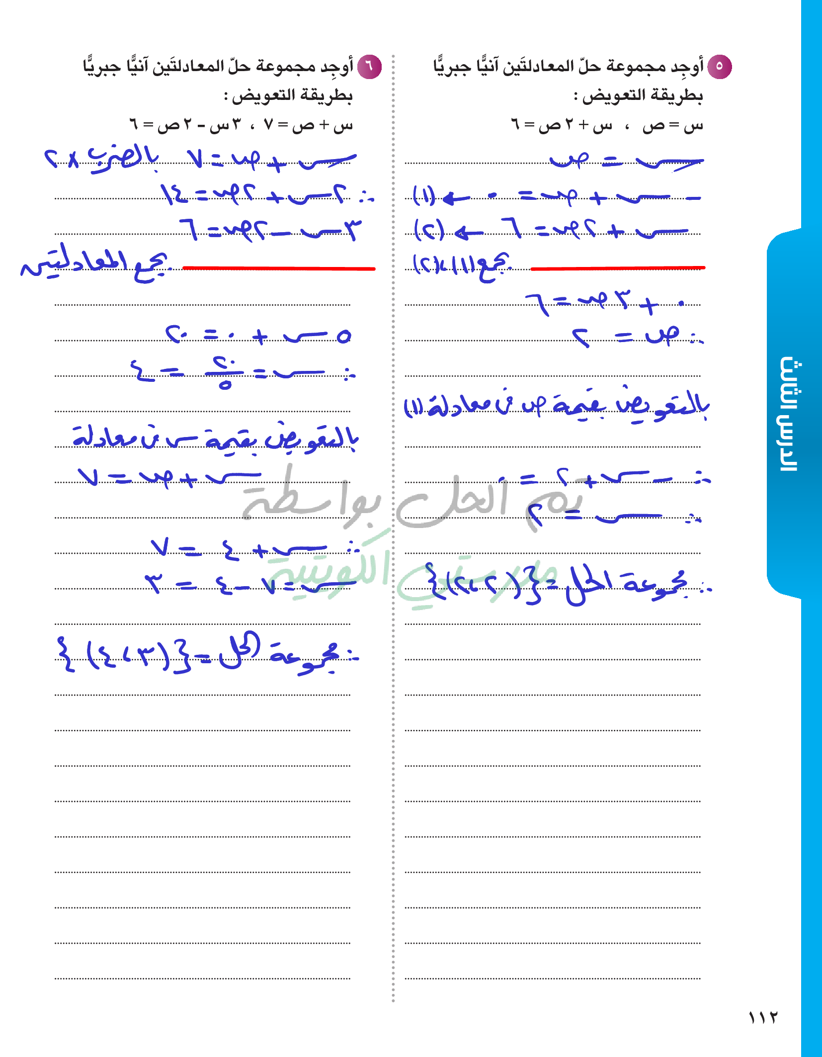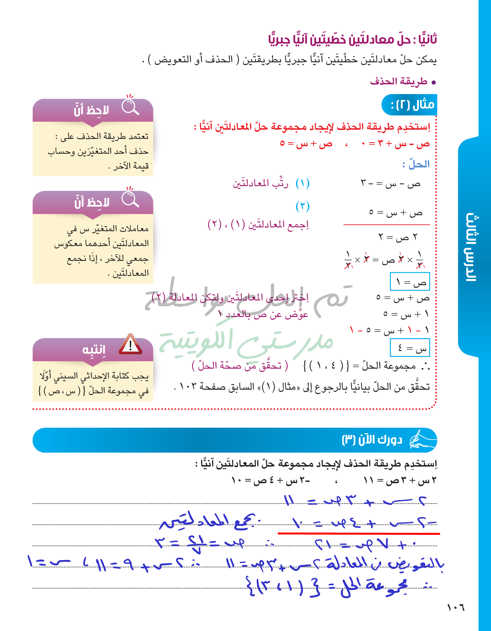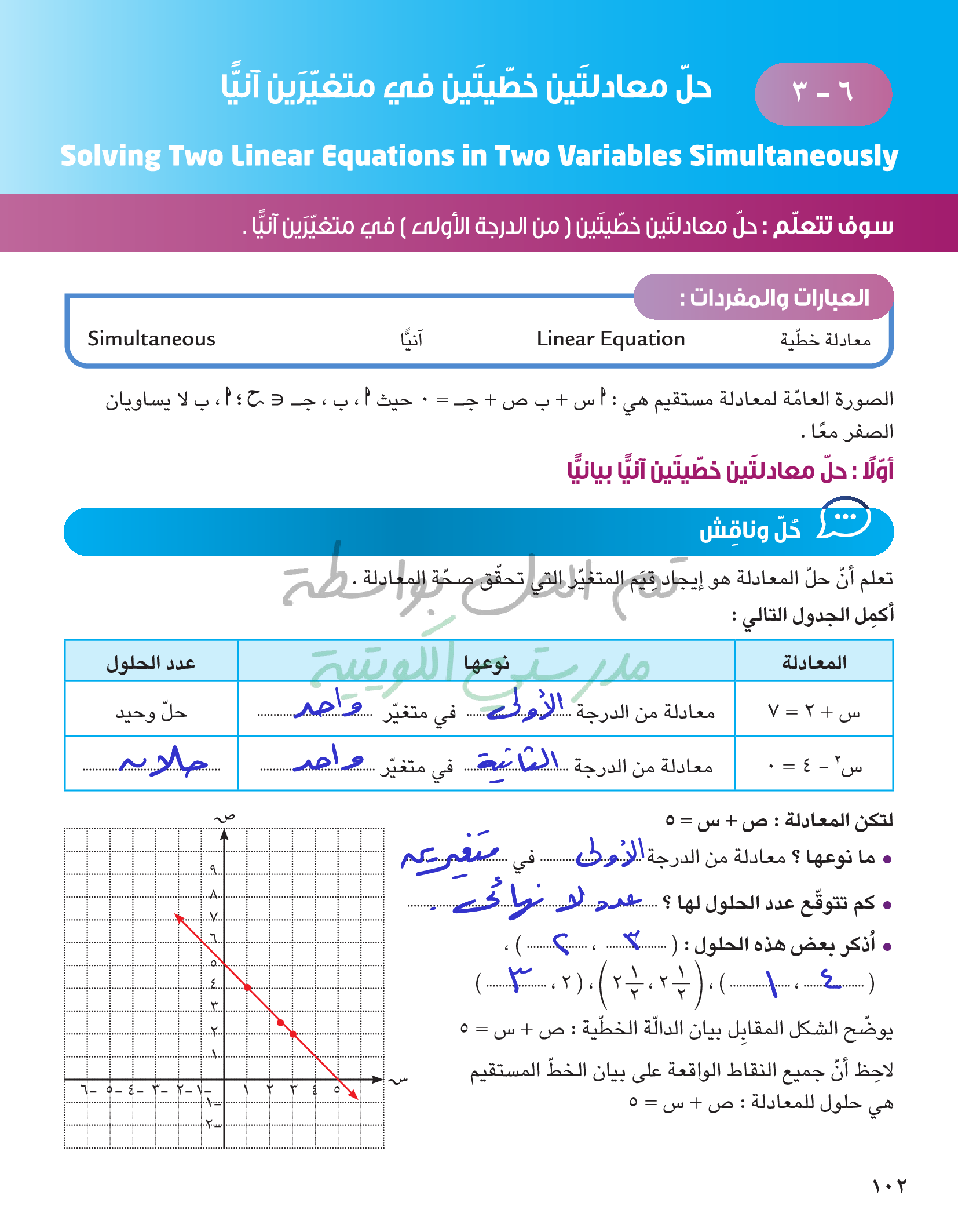 حل معادلتين خطيتين في متغيرين آنيا