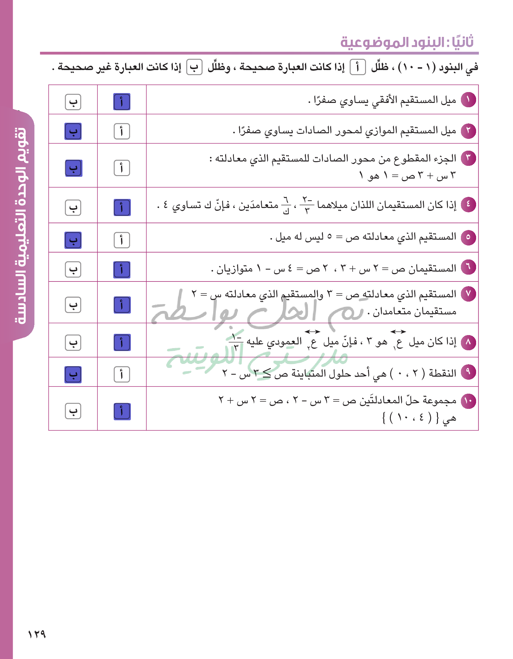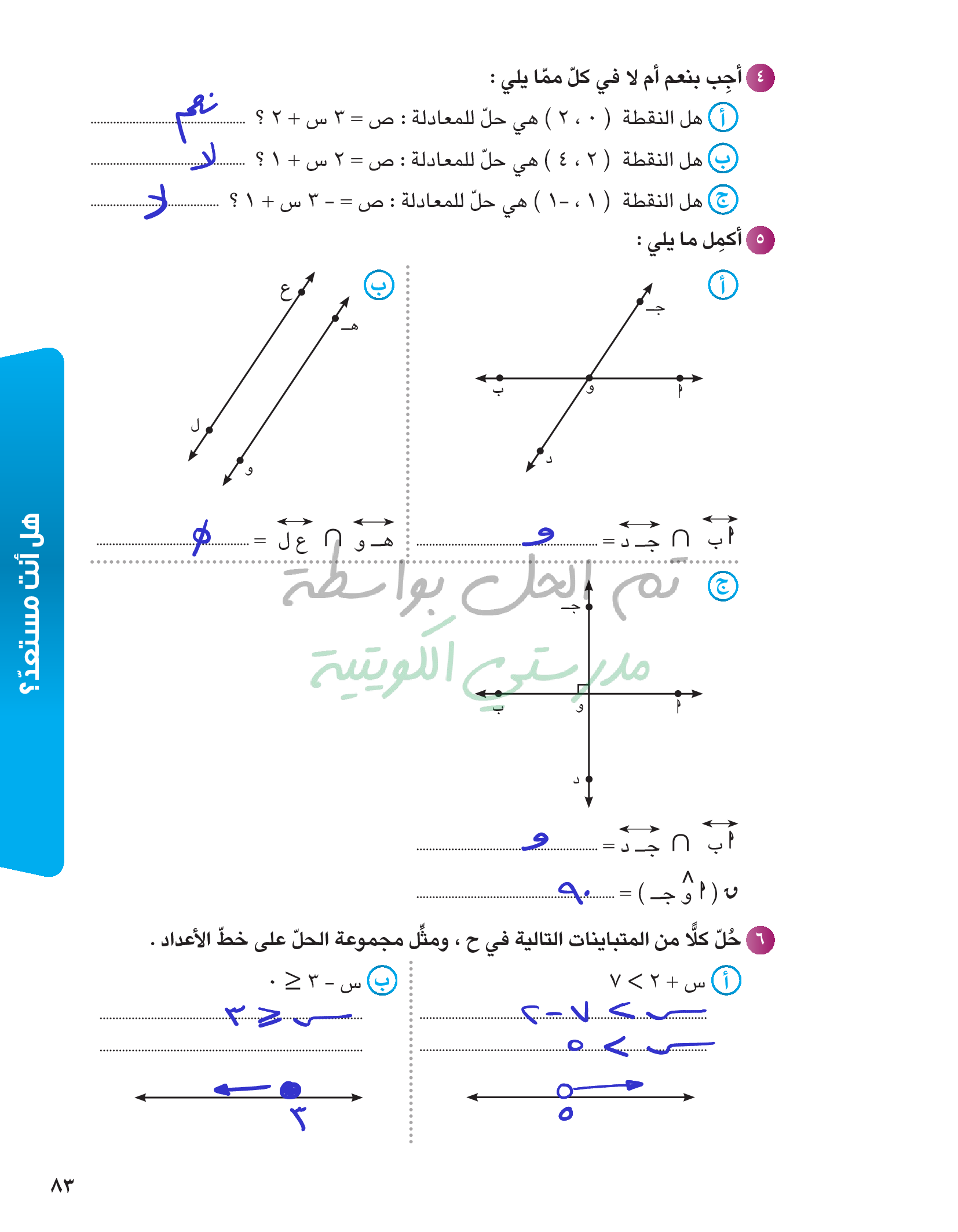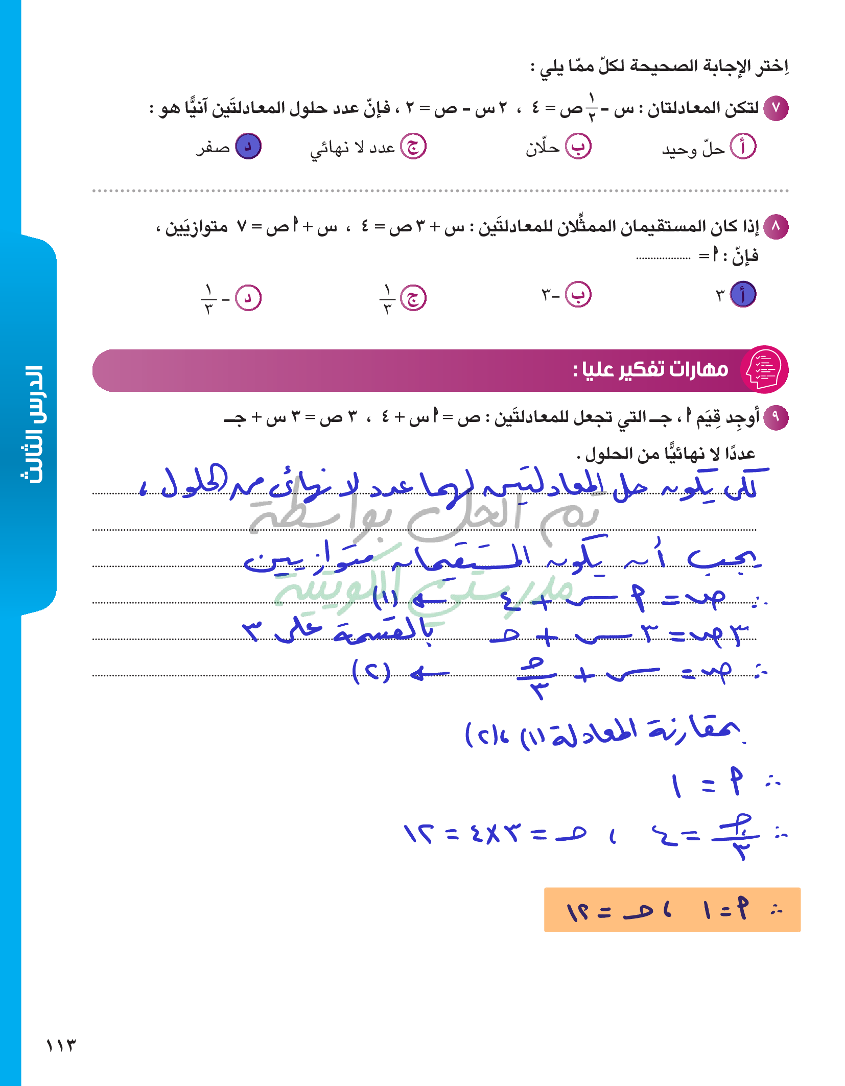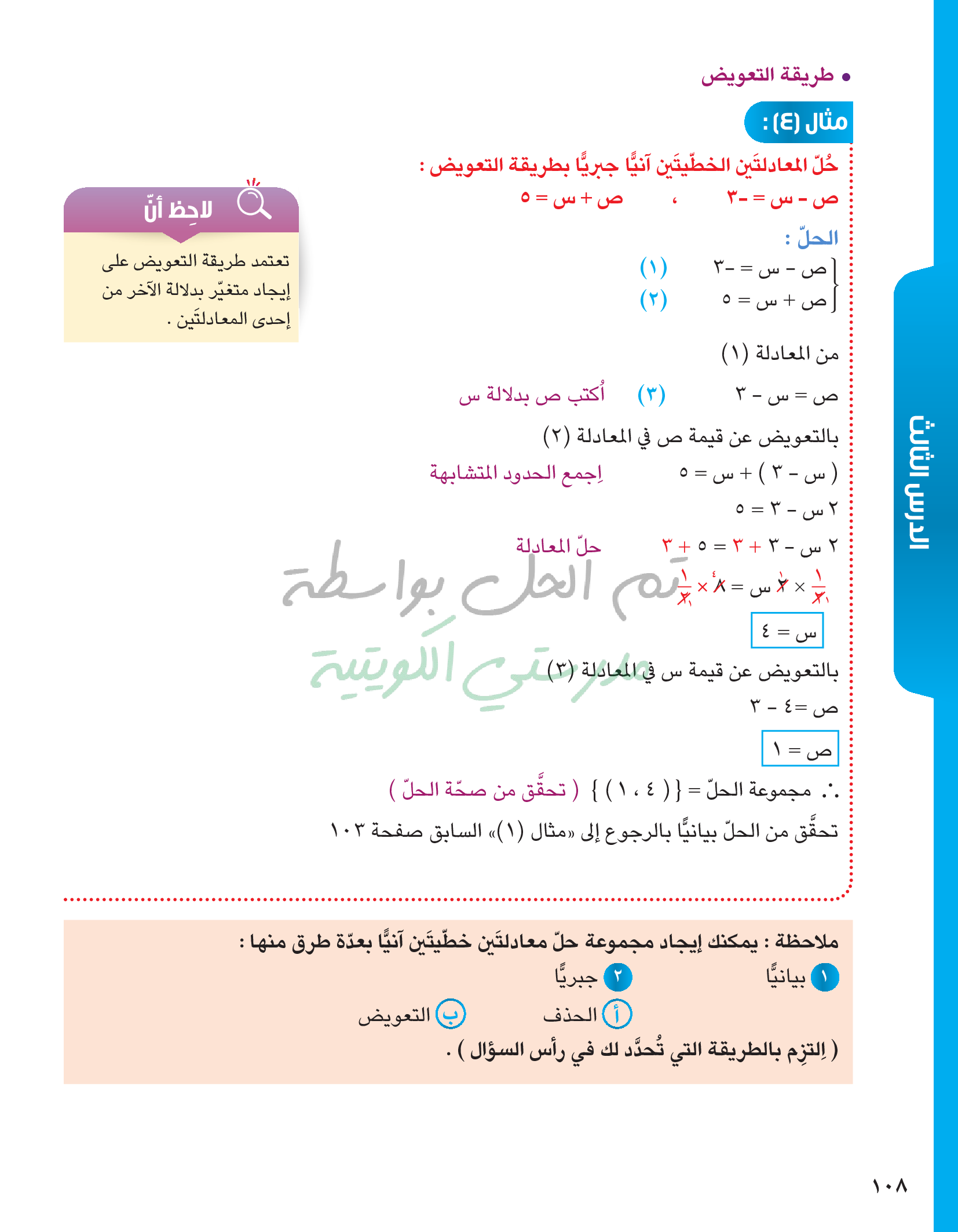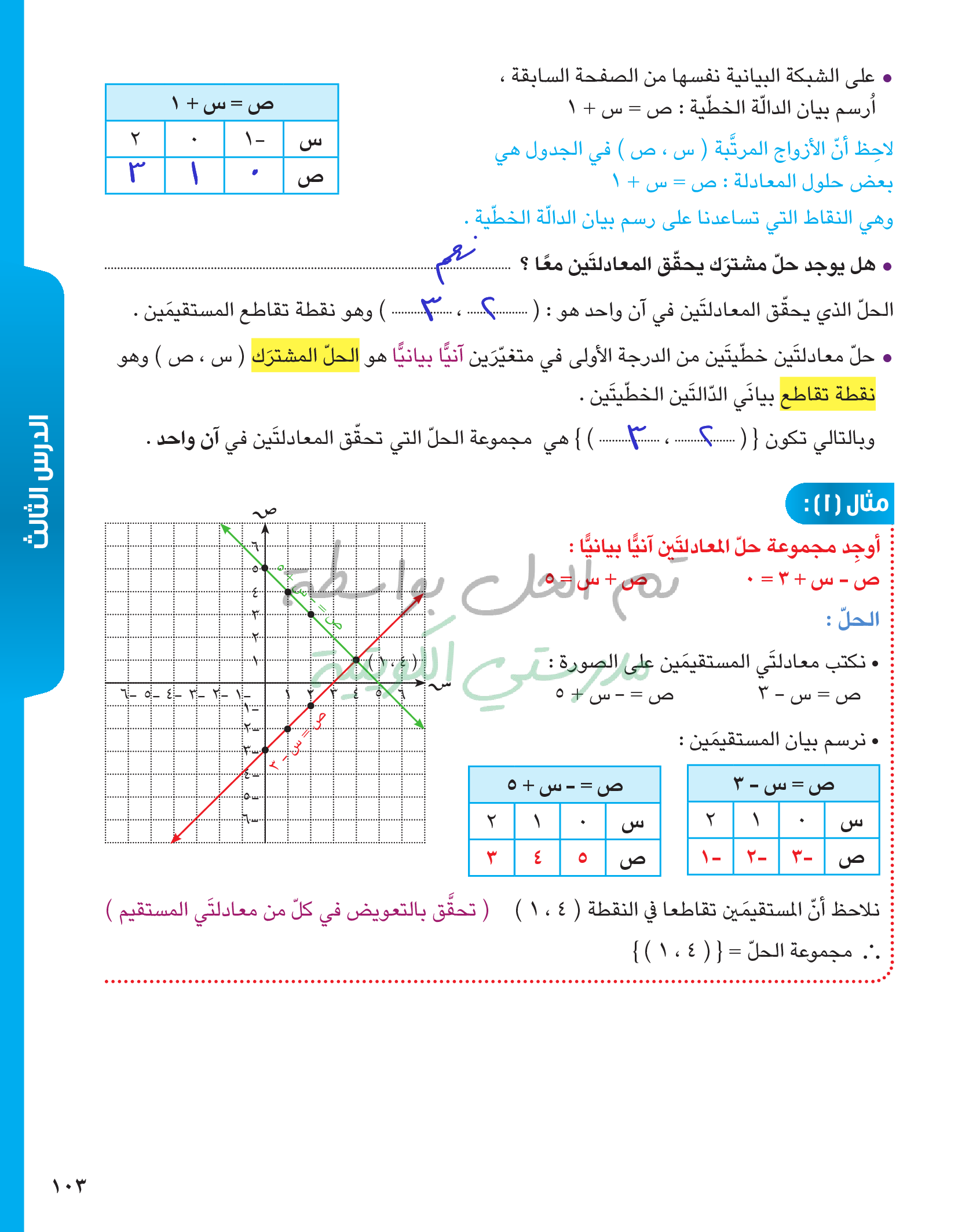 حل معادلتين خطيتين في متغيرين آنيا