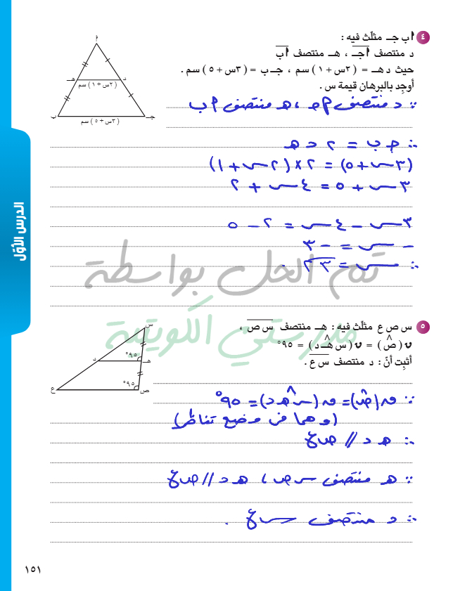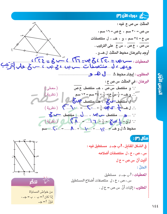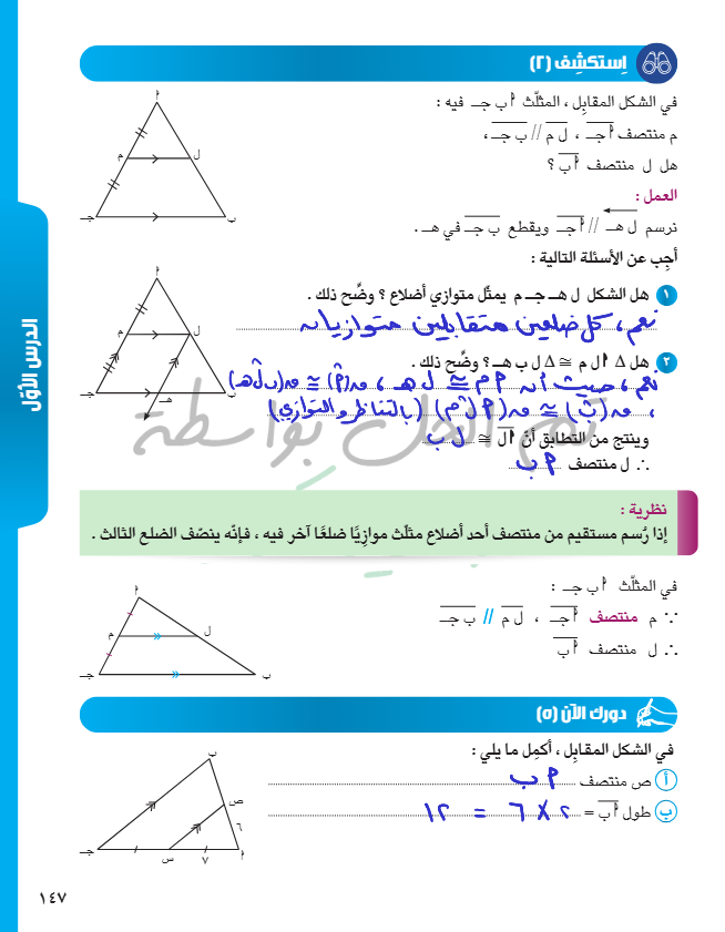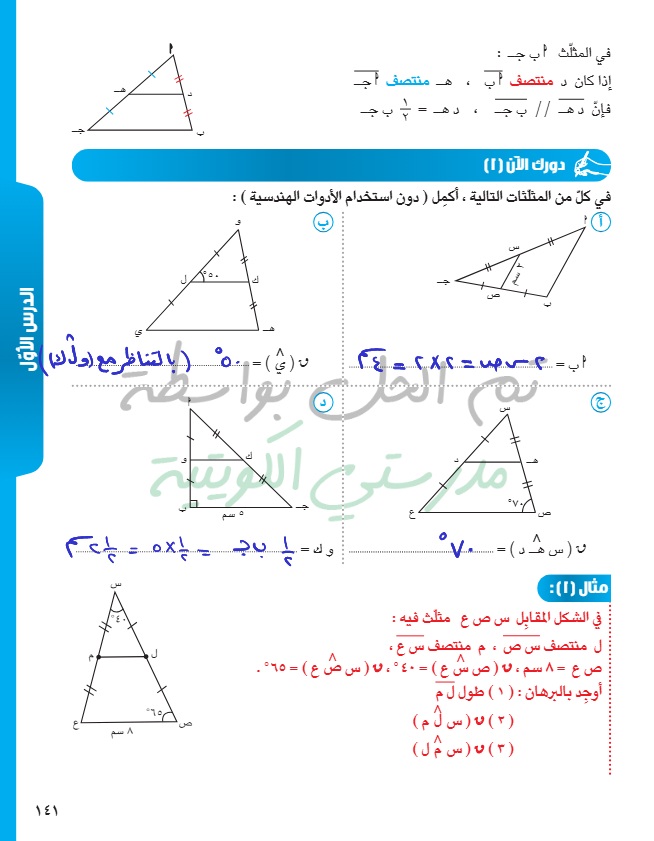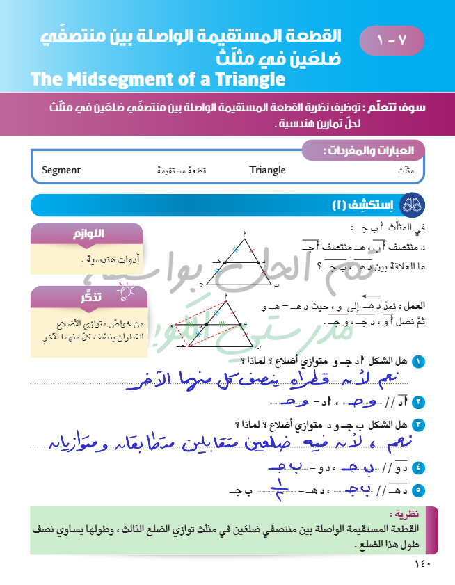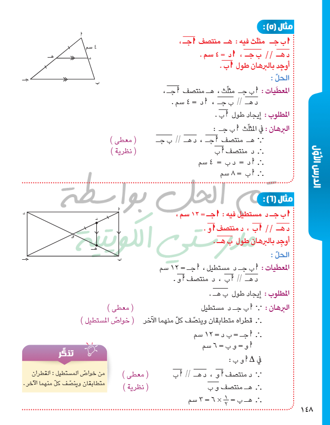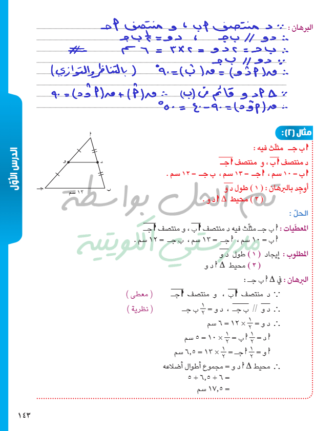 القطعة المستقيمة الواصلة بين منتصفي ضلعين في مثلث
