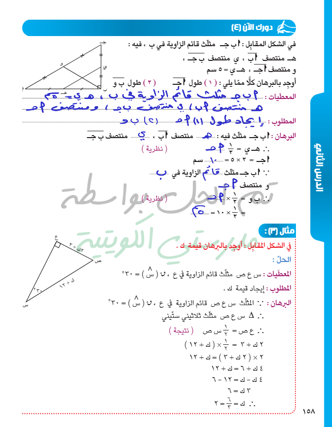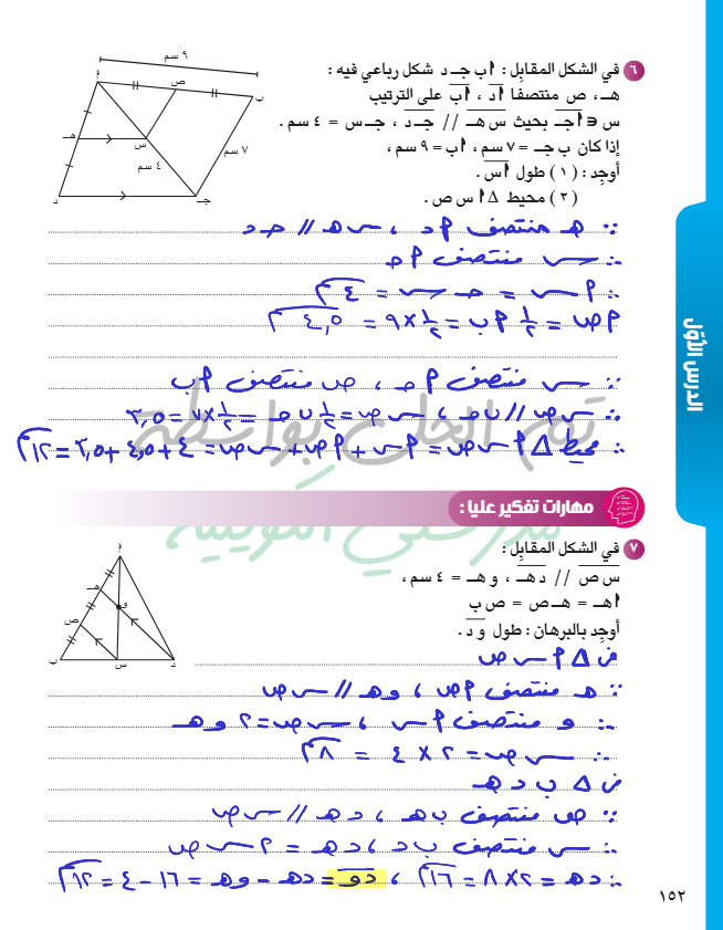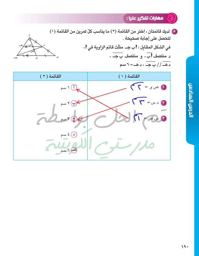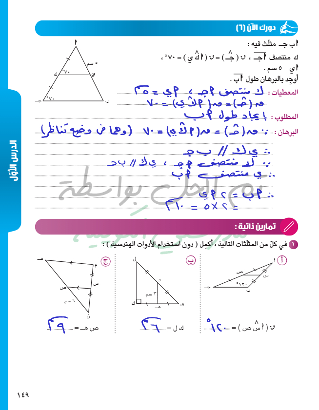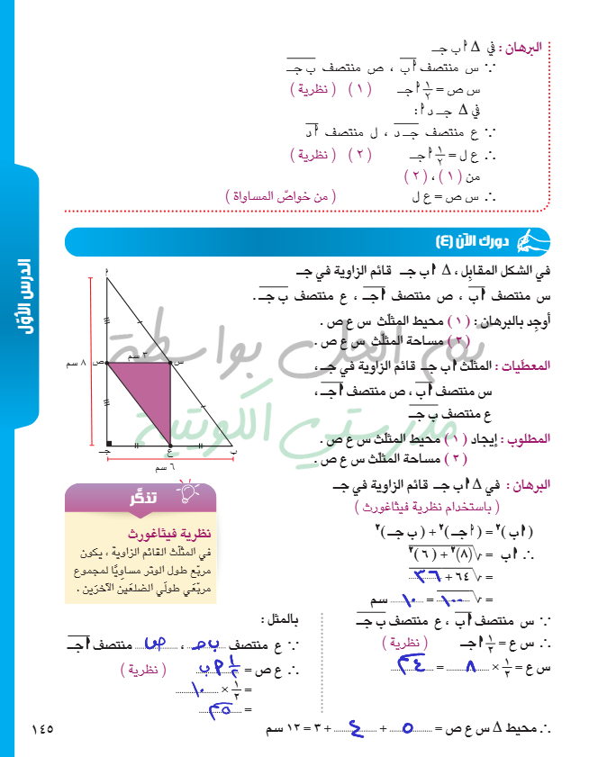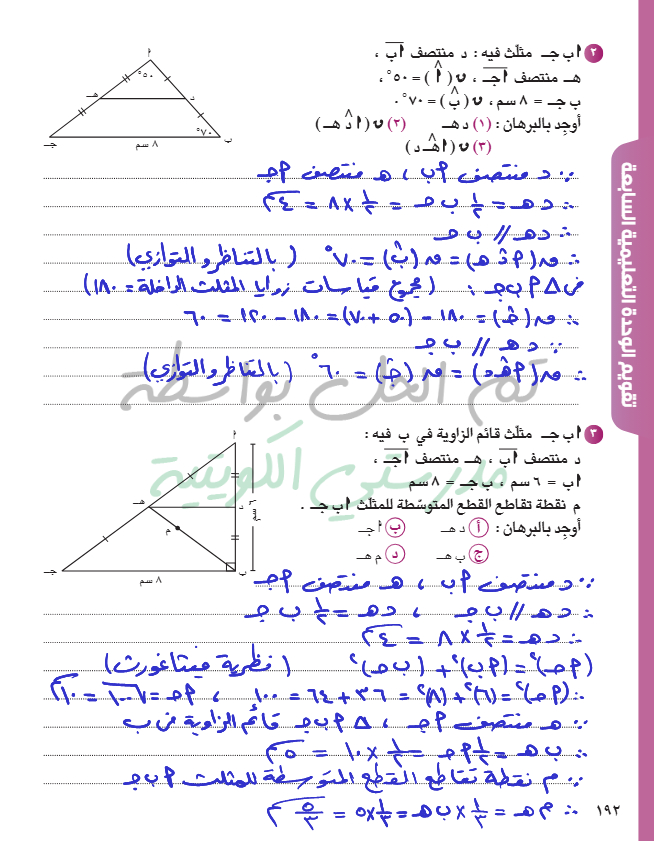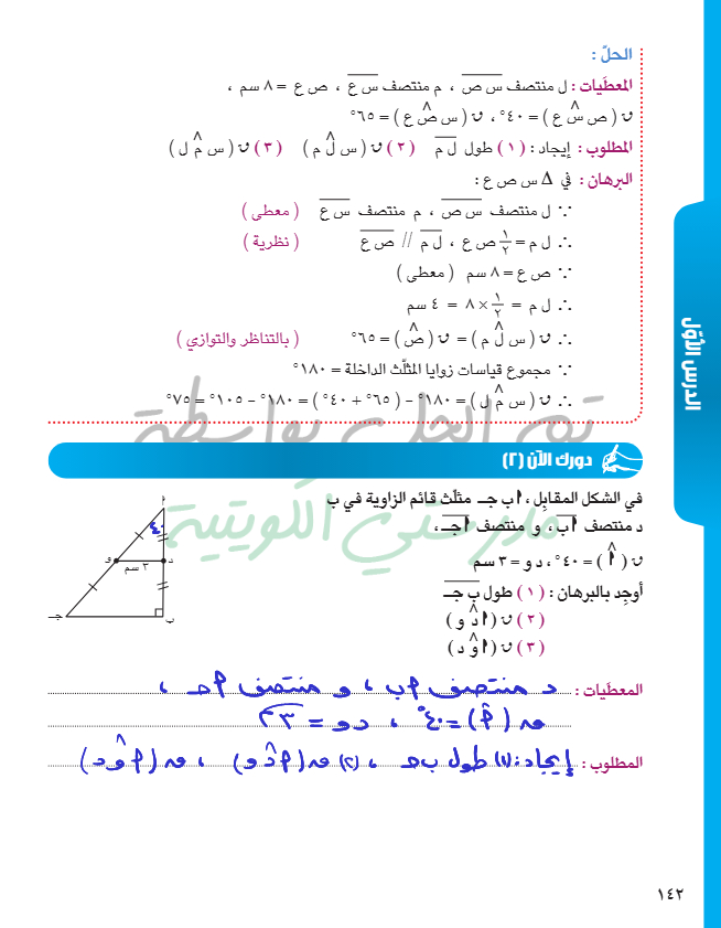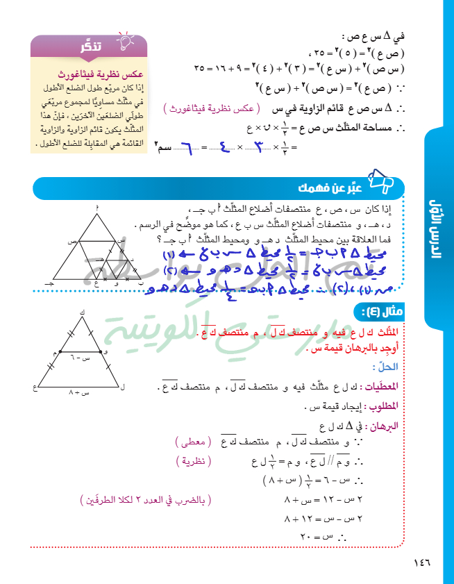 القطعة المستقيمة الواصلة بين منتصفي ضلعين في مثلث