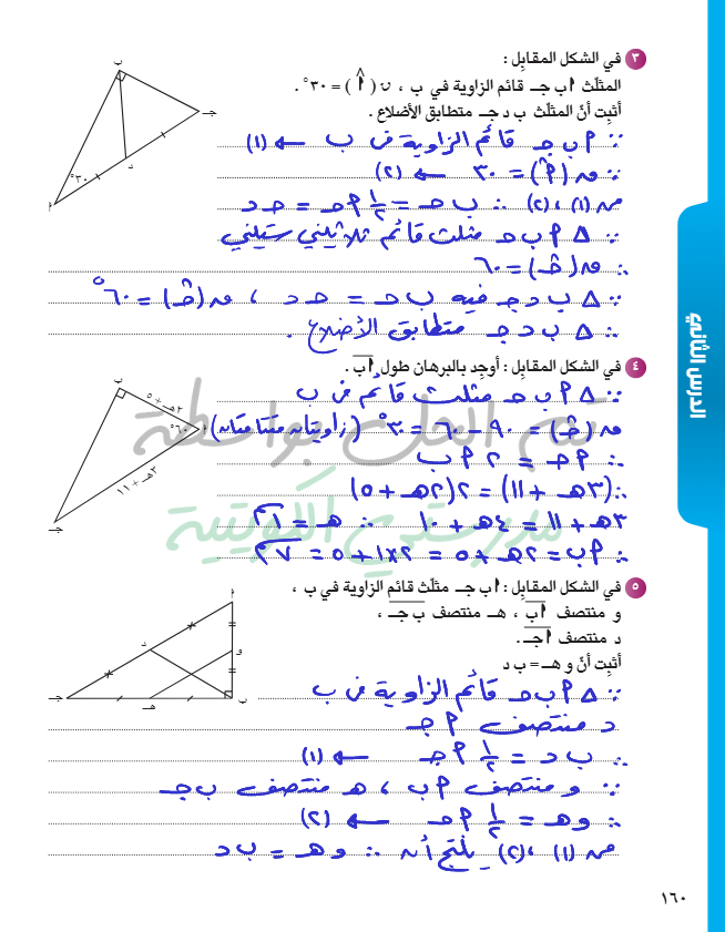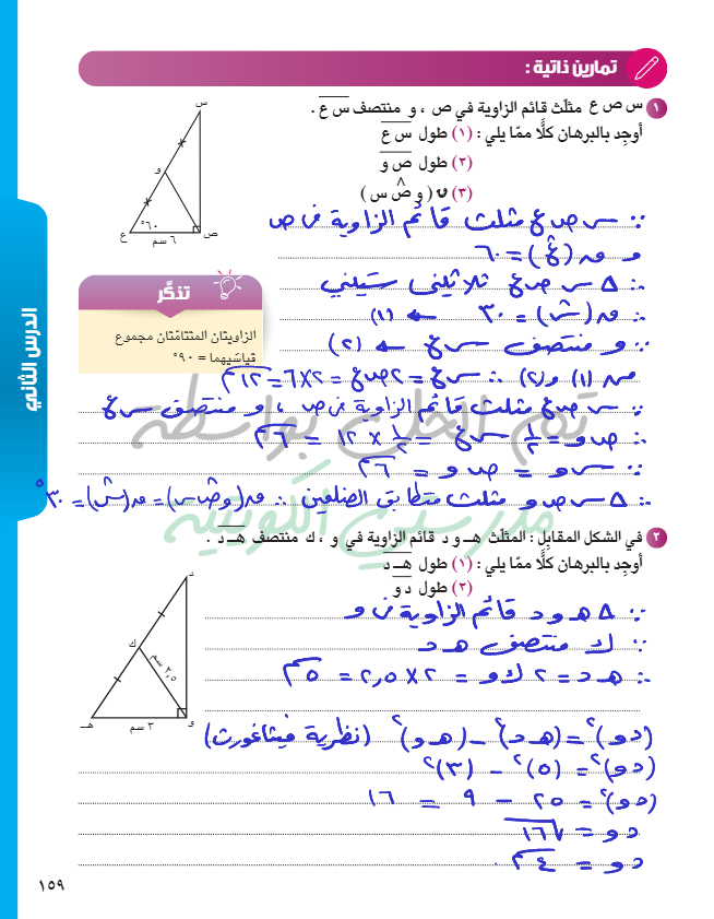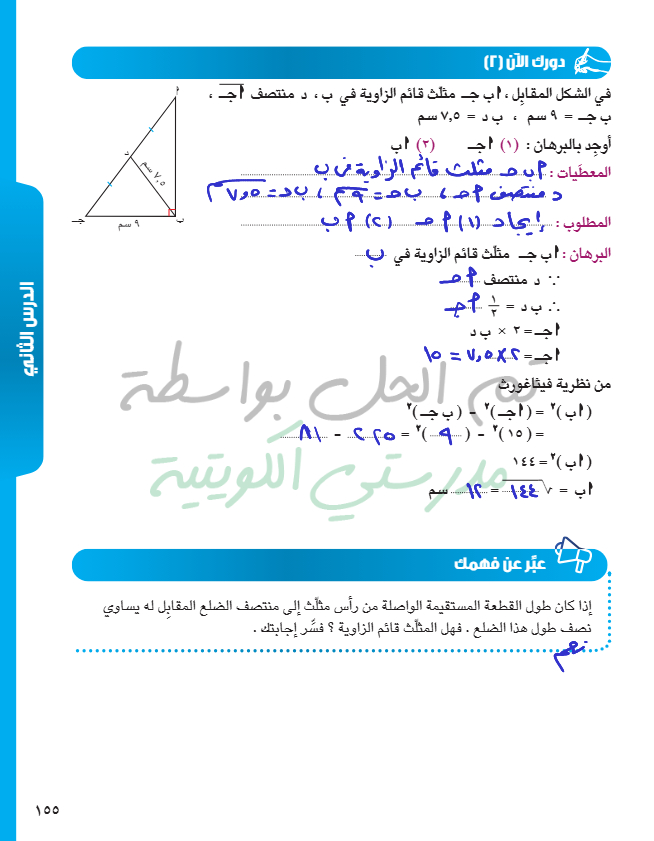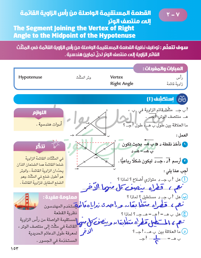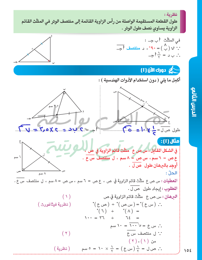 القطعة المستقيمة الواصلة من رأس الزاوية القائمة إلى منتصف الوتر
