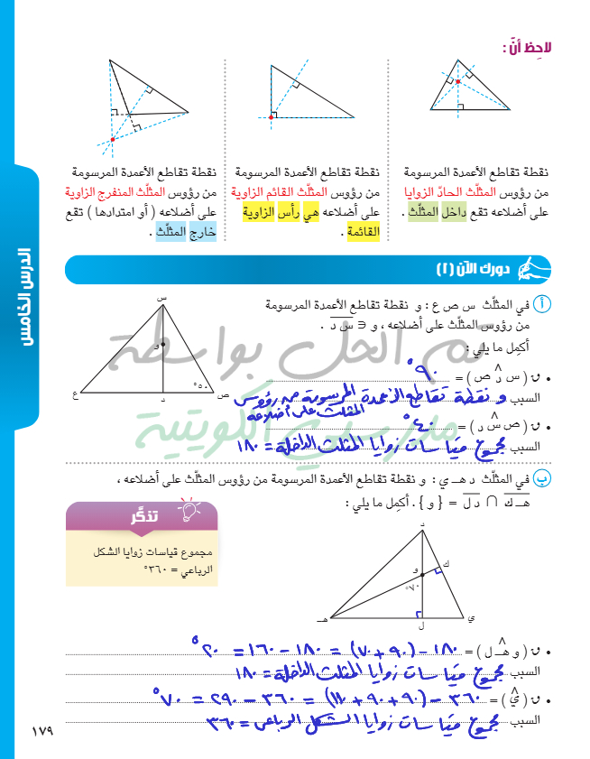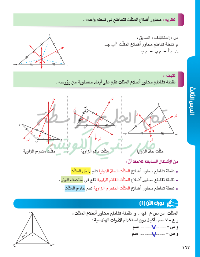 محاور أضلاع المثلث