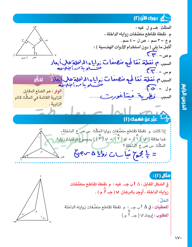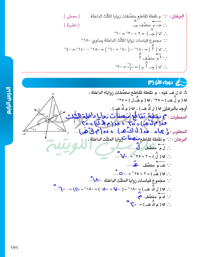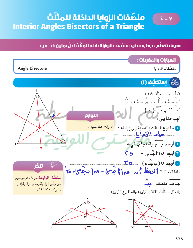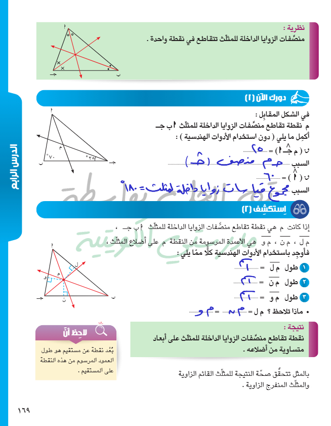 منصفات الزوايا الداخلة للمثلث