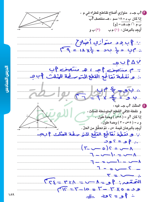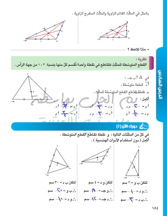 القطع المتوسطة للمثلث
