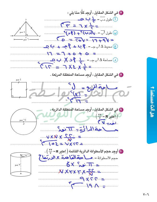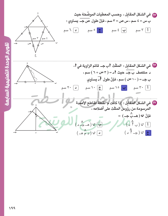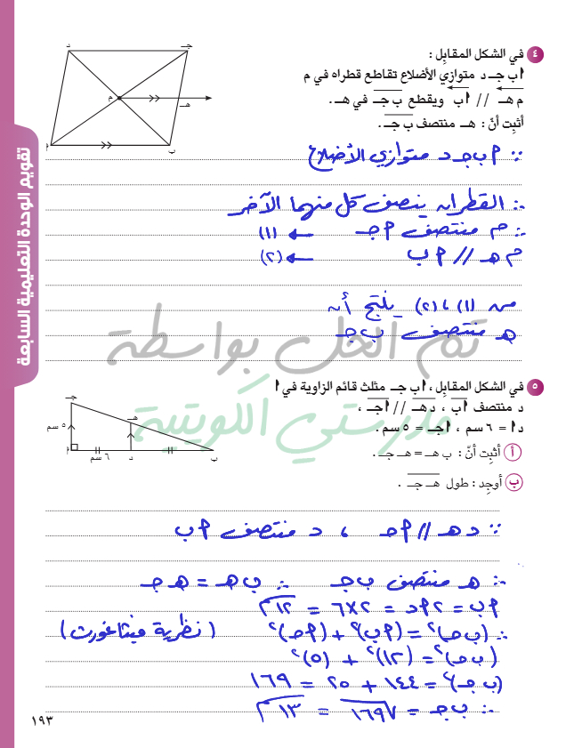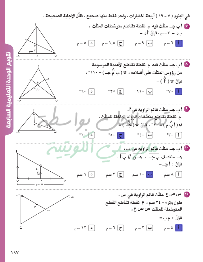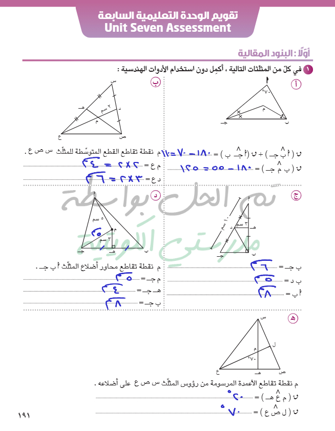 تقويم الوحدة السابعة
