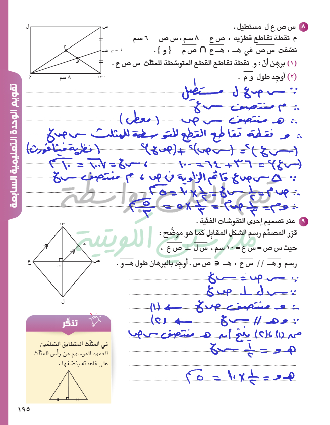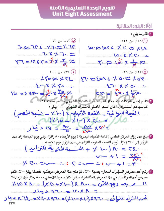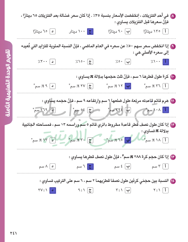 تقويم الوحدة الثامنة