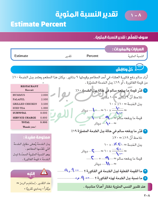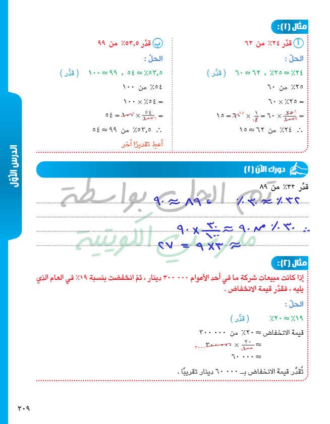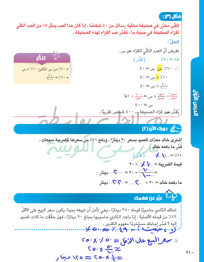 تقدير النسبة المئوية