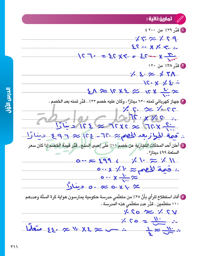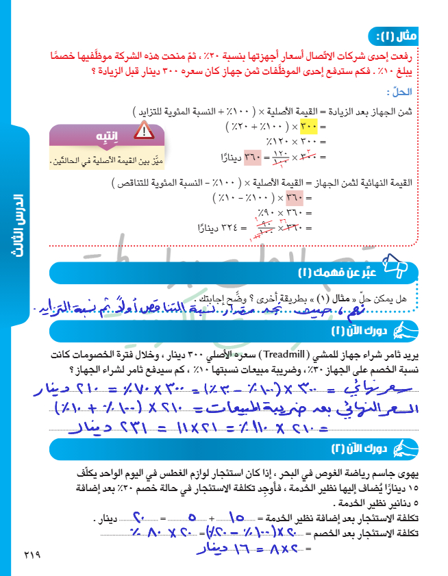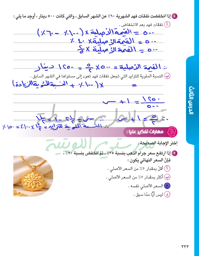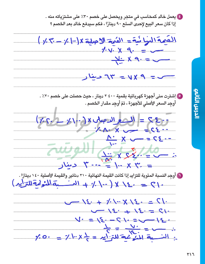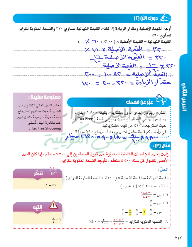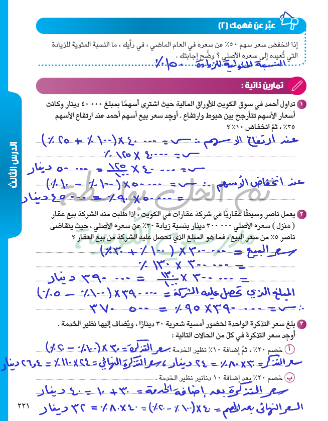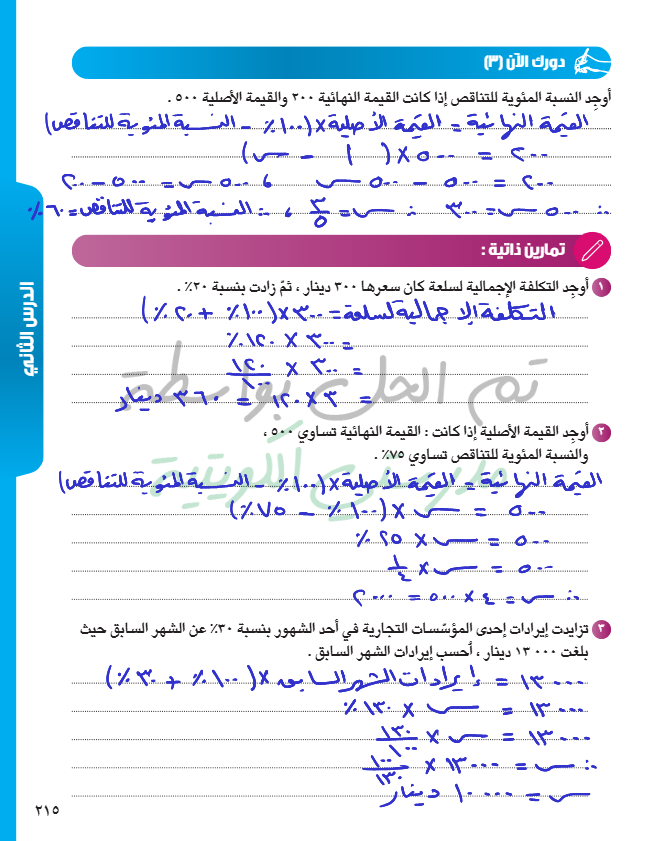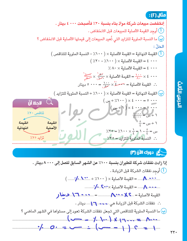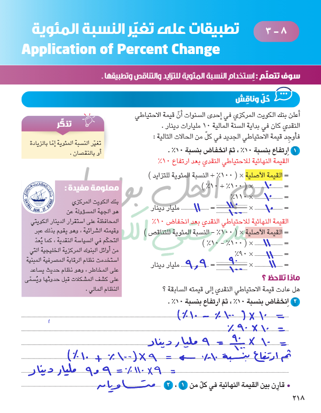 تطبيقات على تغير النسبة المئوية