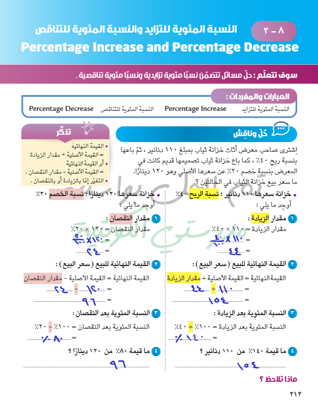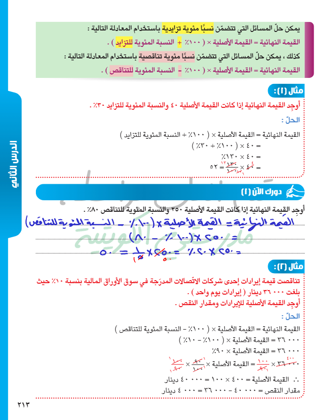 النسبة المئوية للتزايد والنسبة المئوية للتناقص