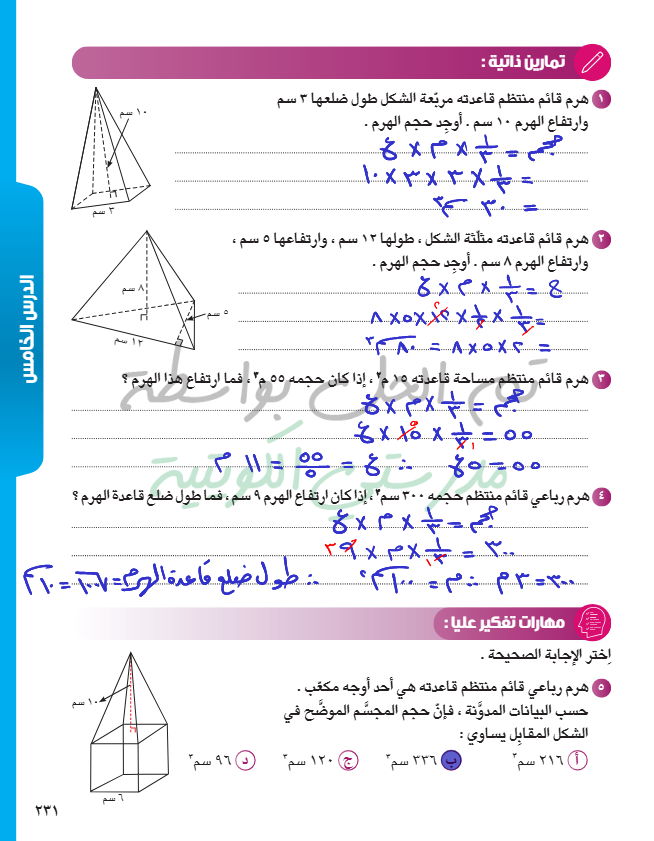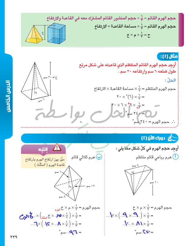 حجم الهرم القائم