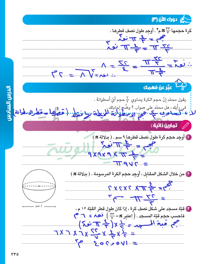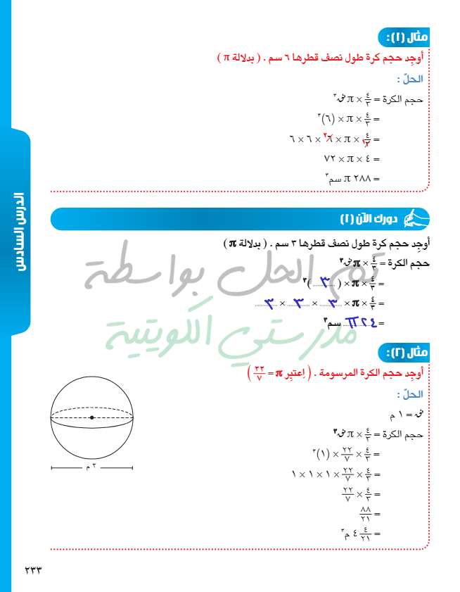 حجم الكرة