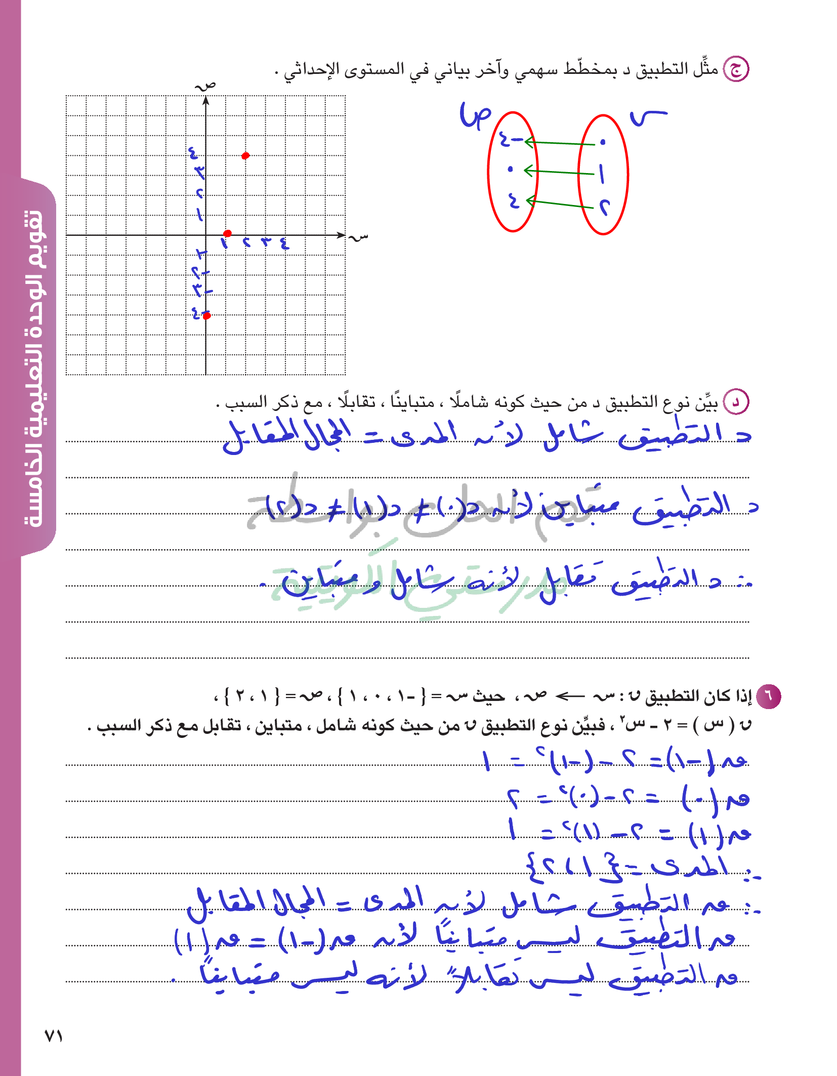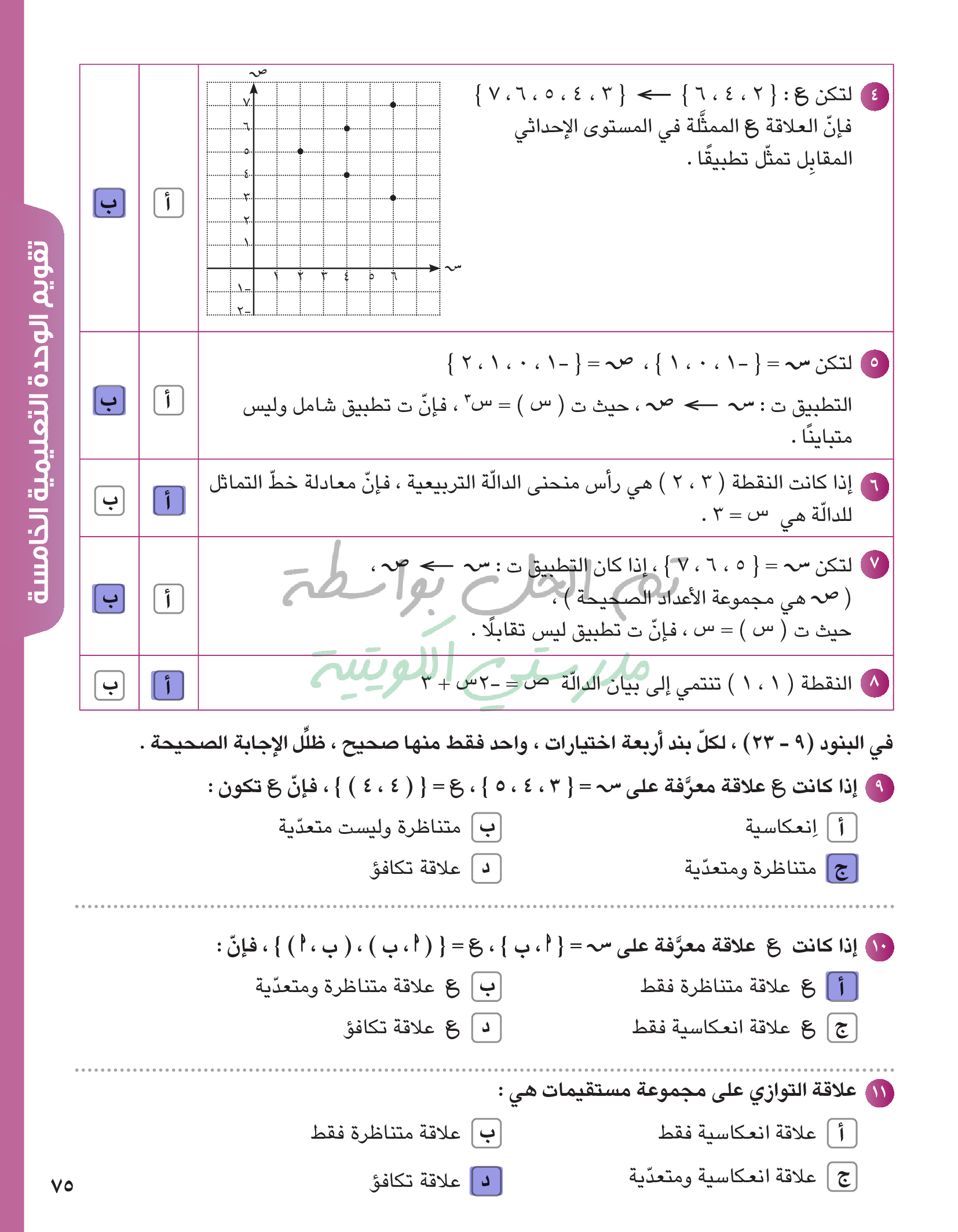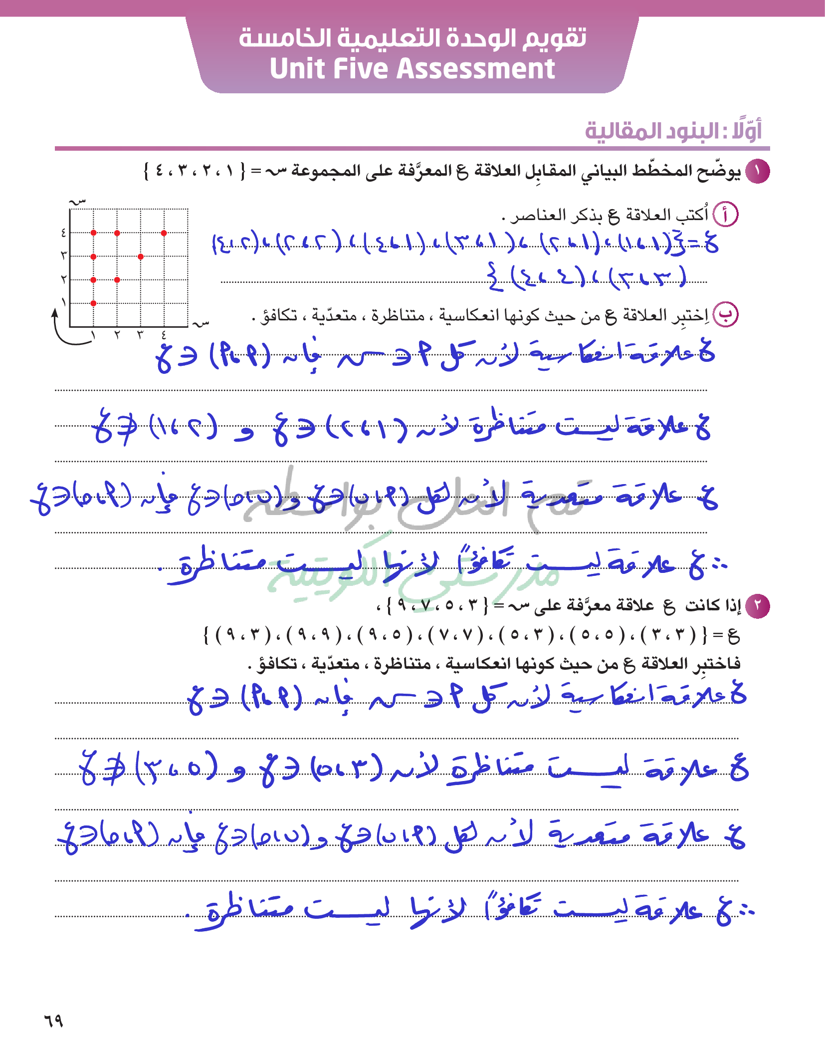 تقويم الوحدة الخامسة