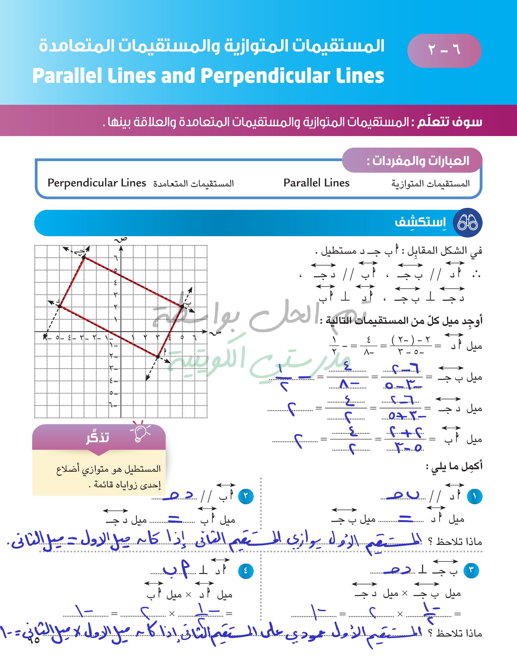 المستقيمات المتوازية والمستقيمات المتعامدة