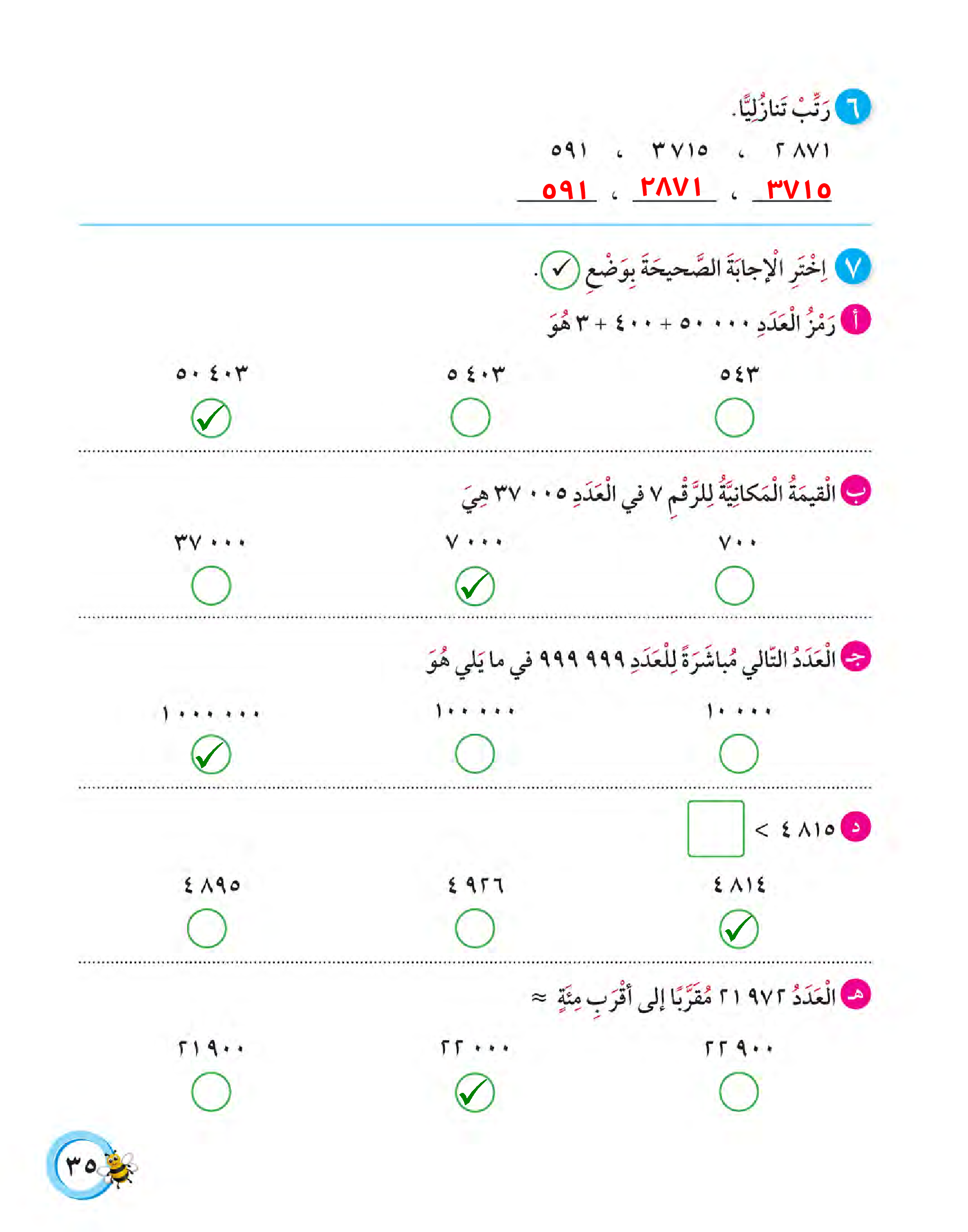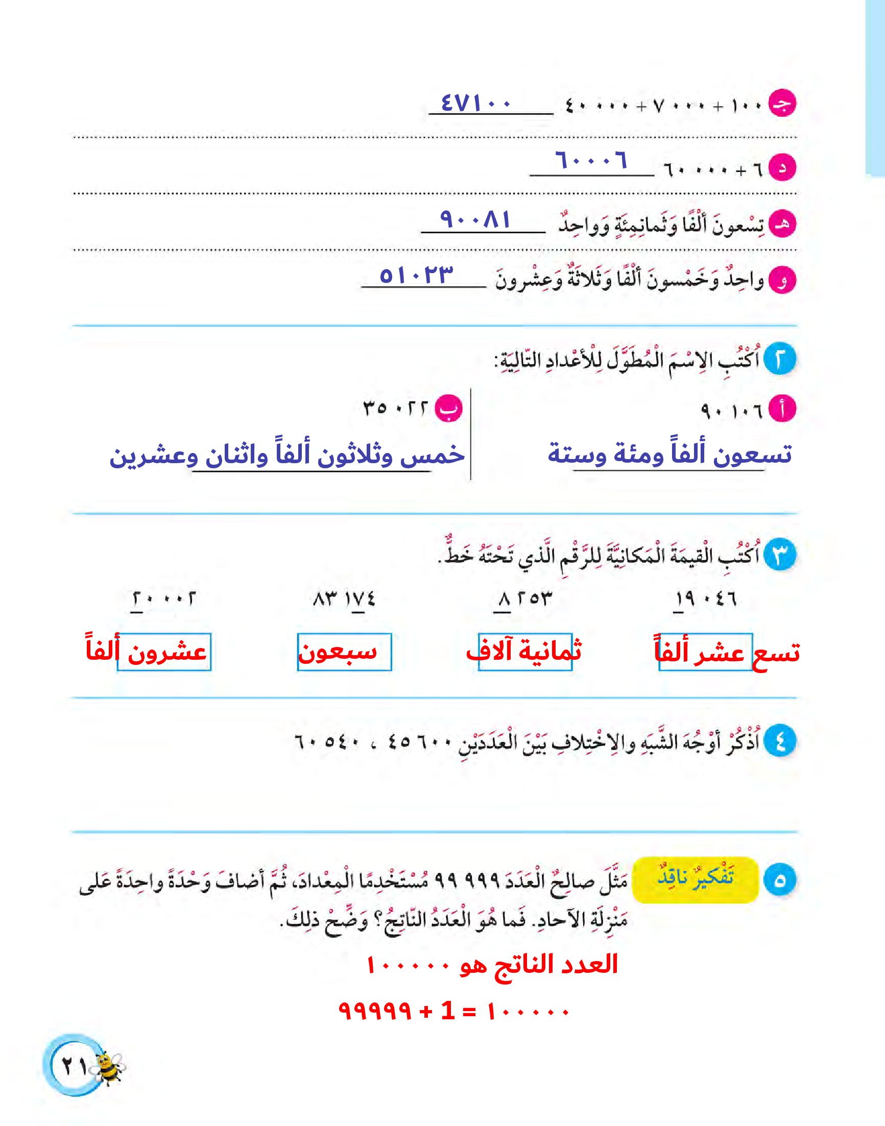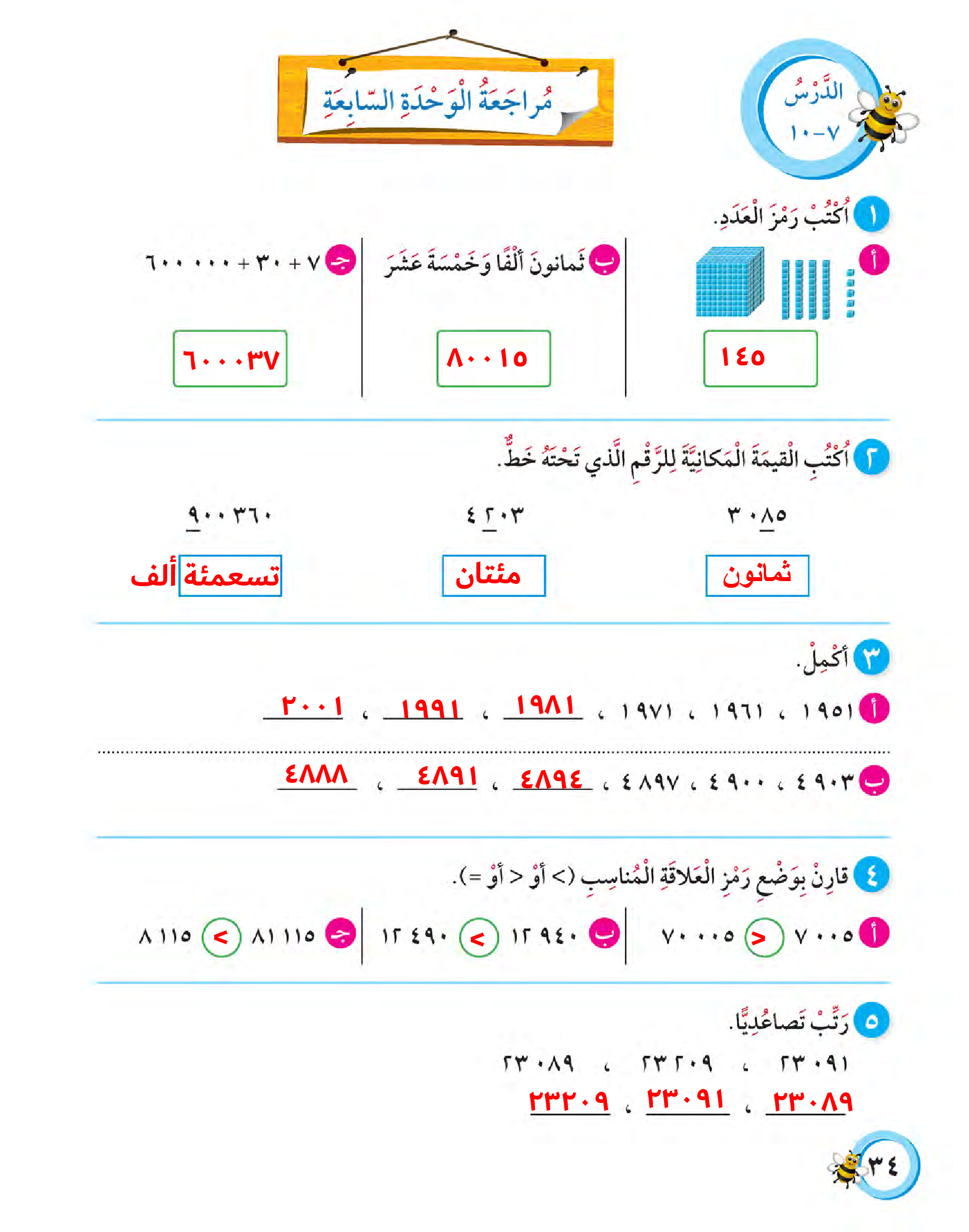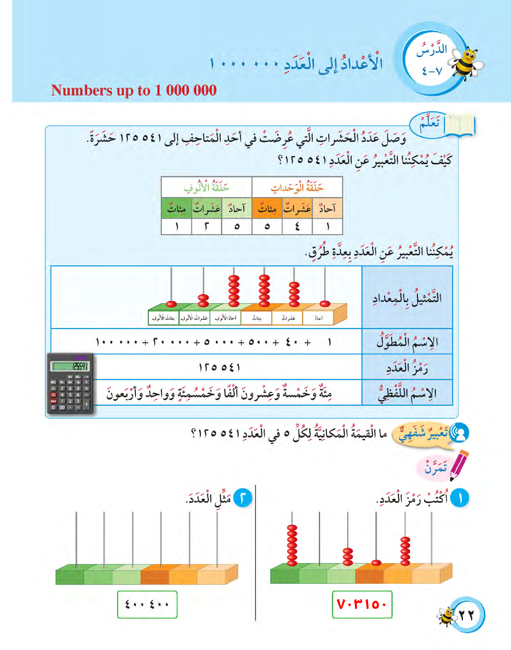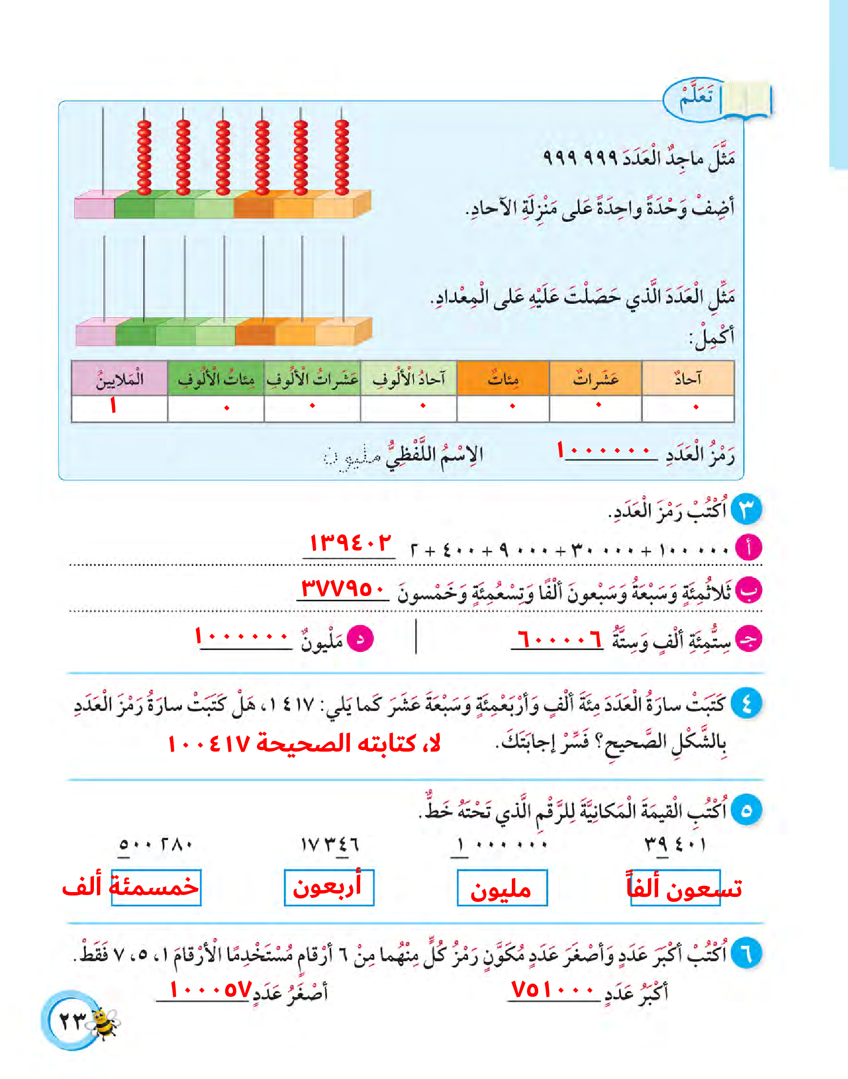 مراجعة وحدة الأعداد الكلية إلى العدد 1000000