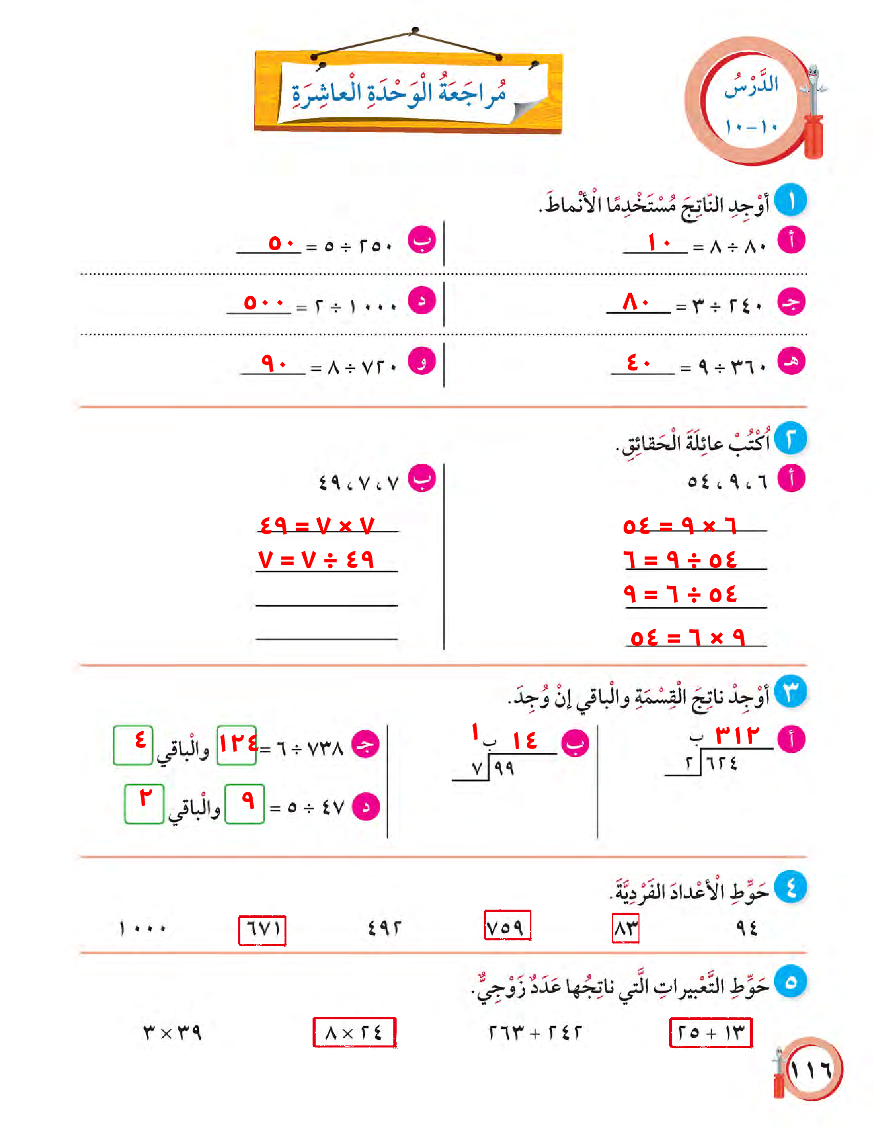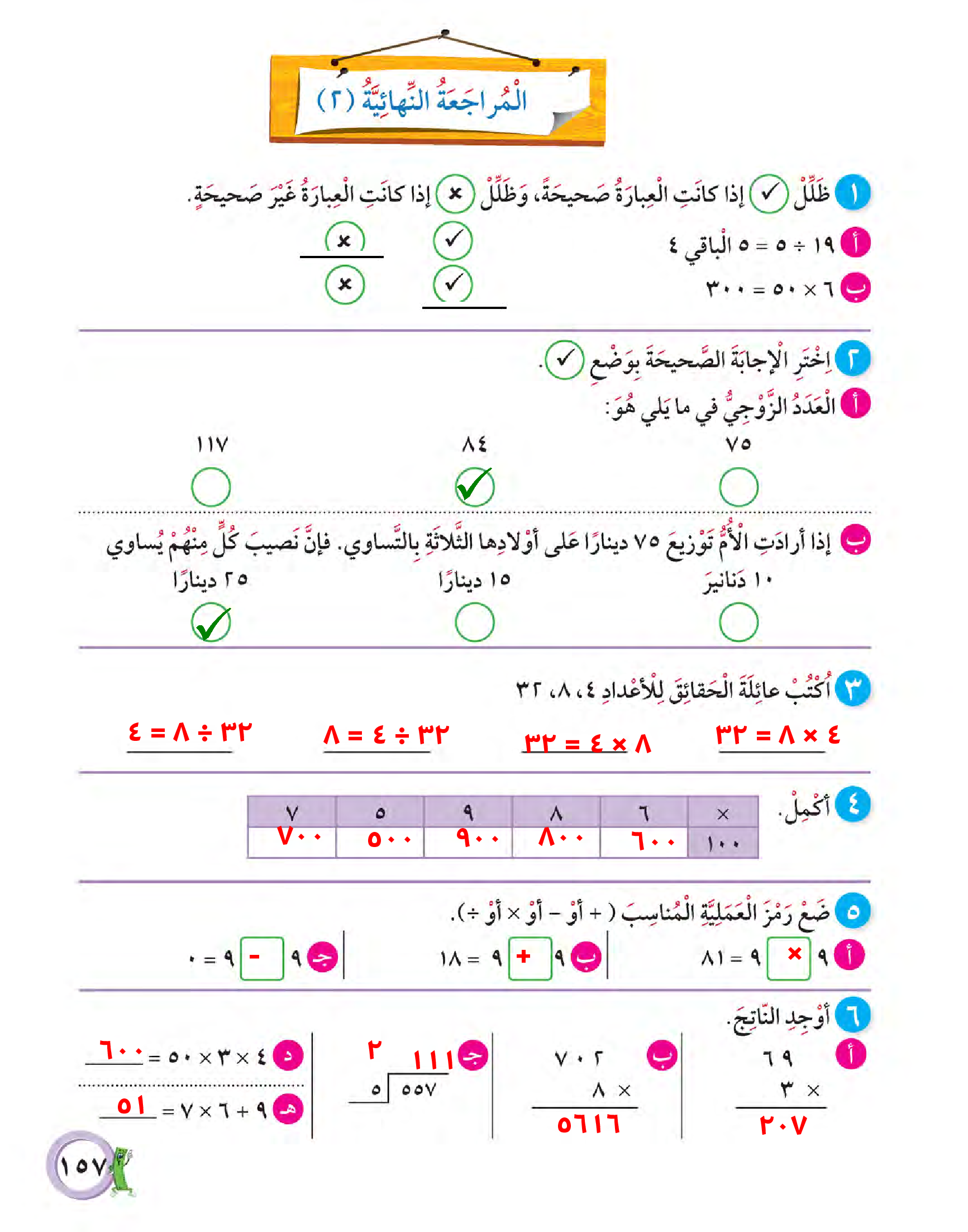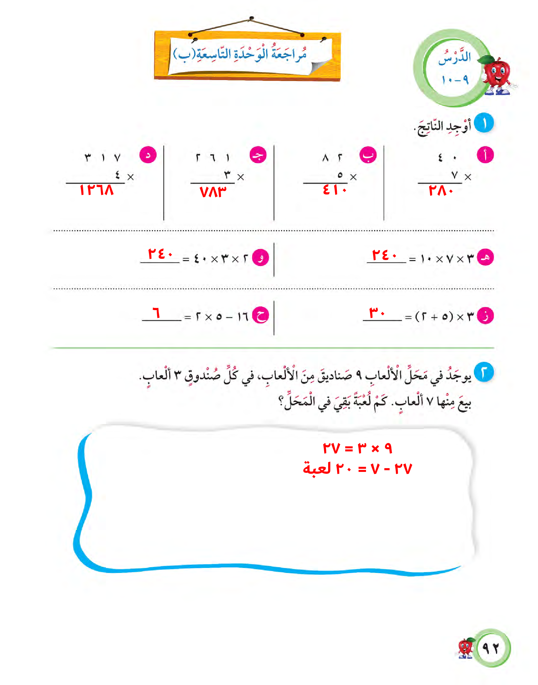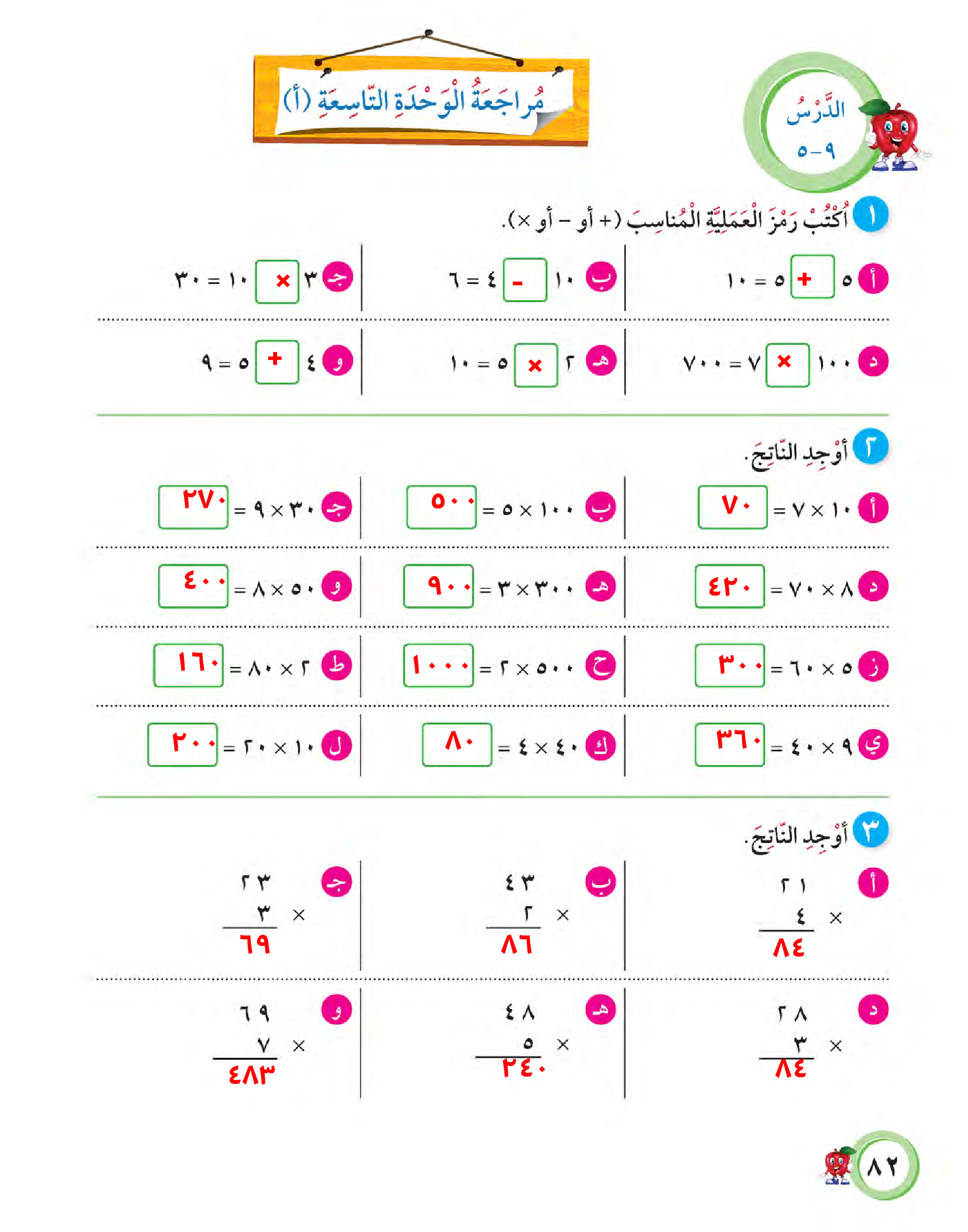 مراجعة (2) لوحدة ضرب الأعداد بناتج لا يزيد عن العدد 1000