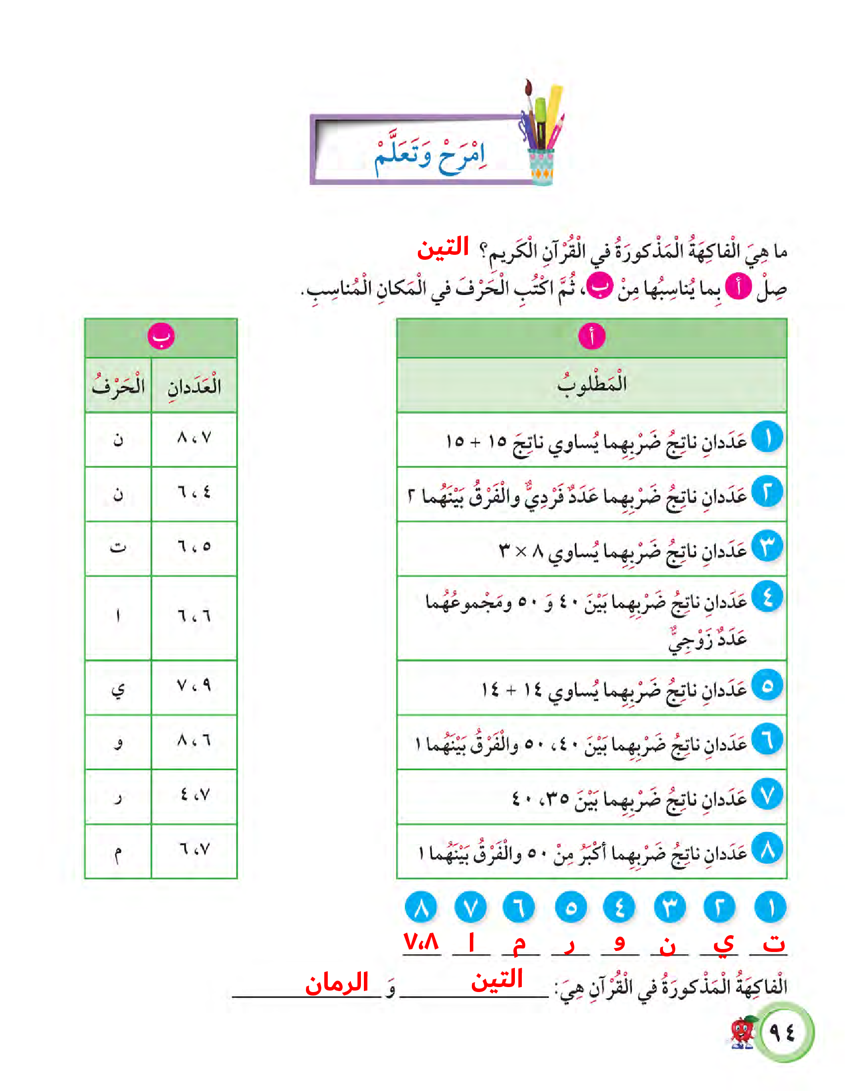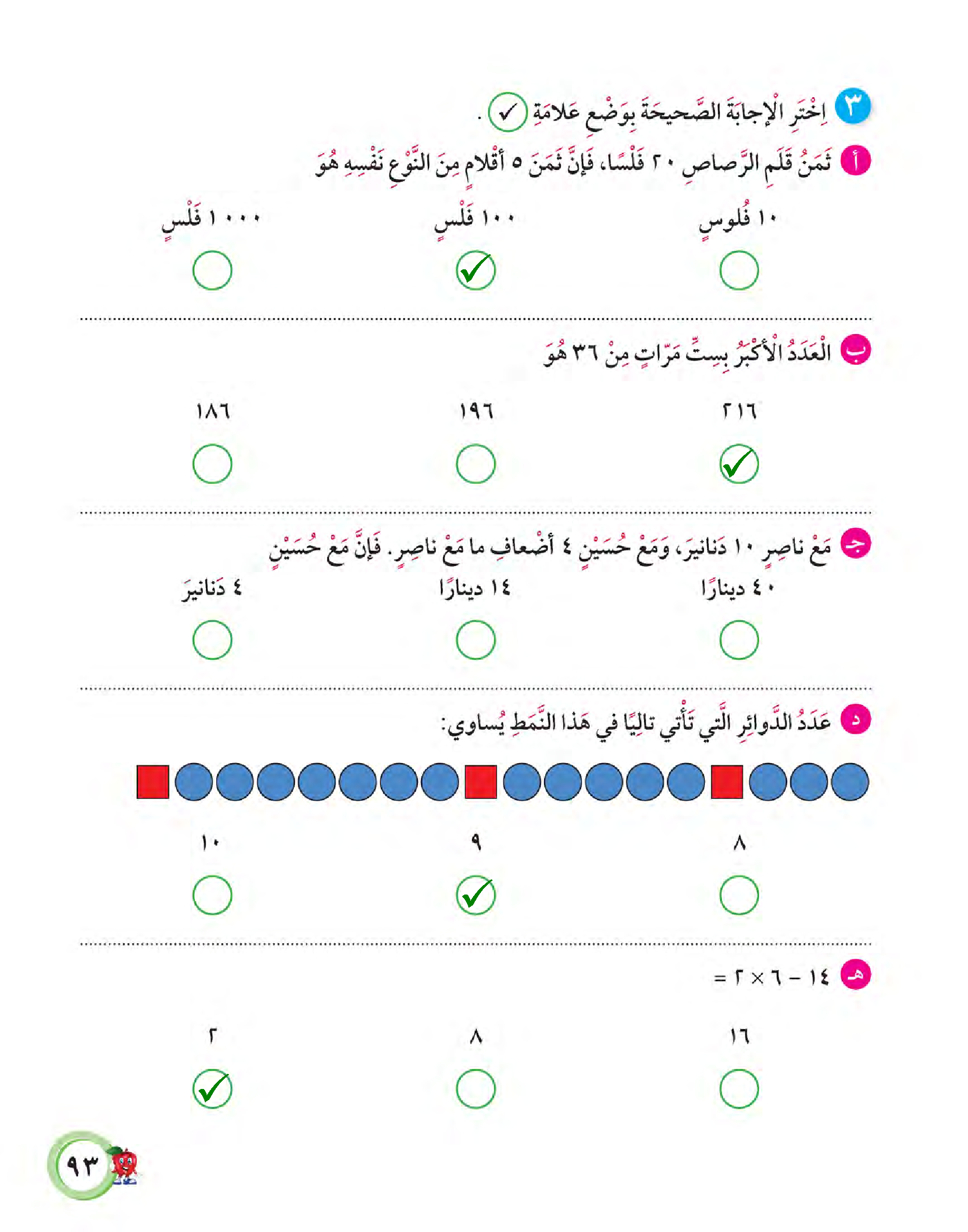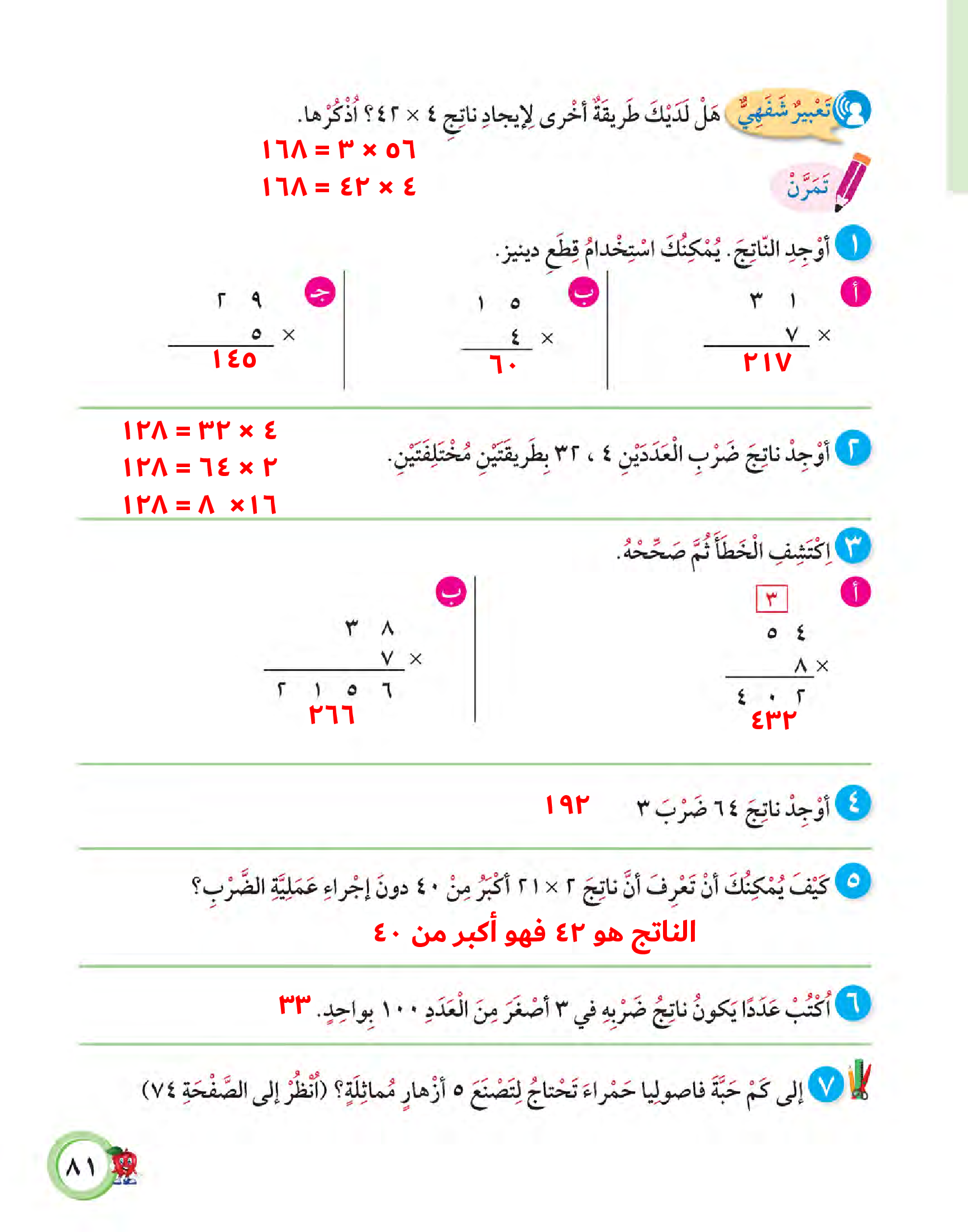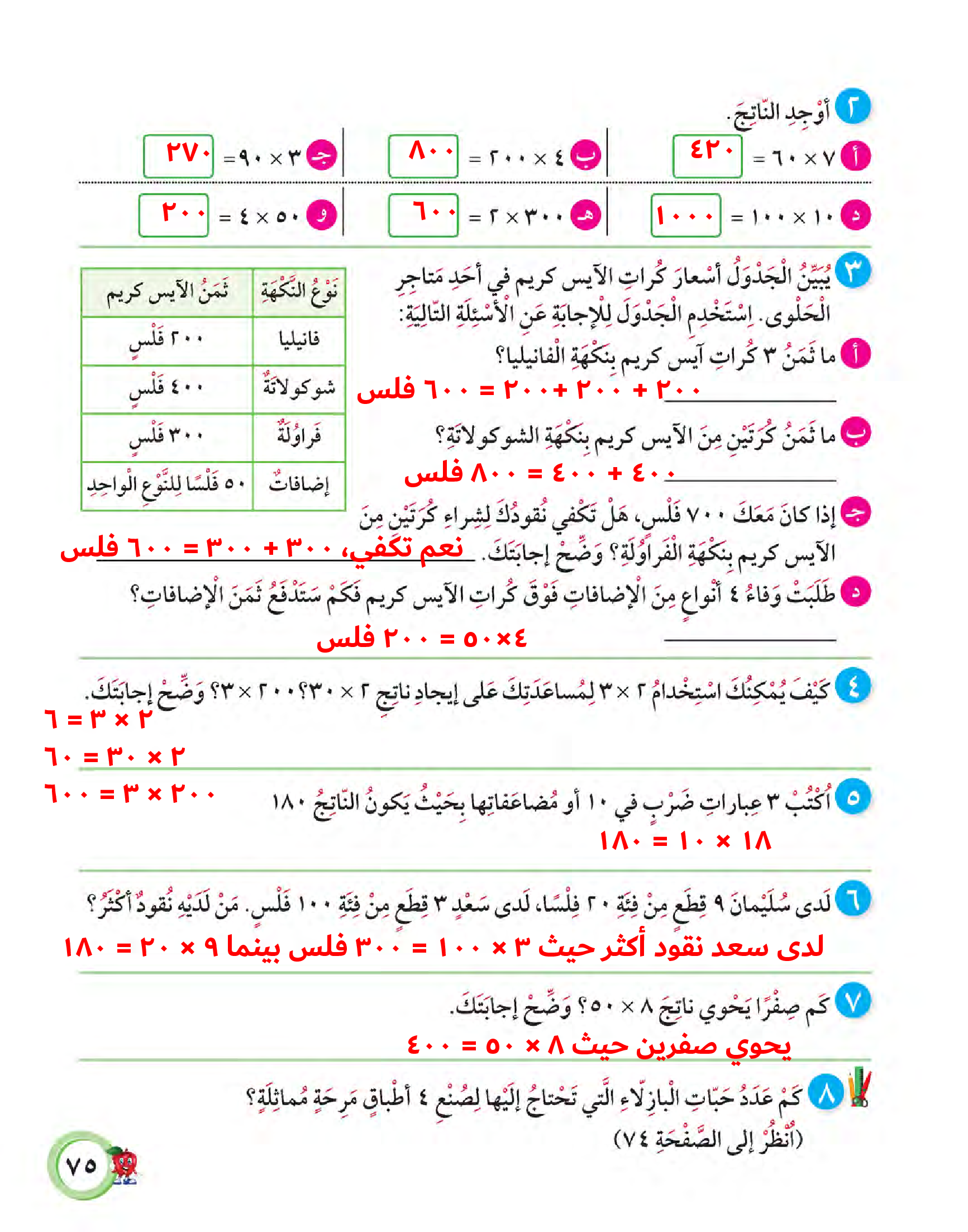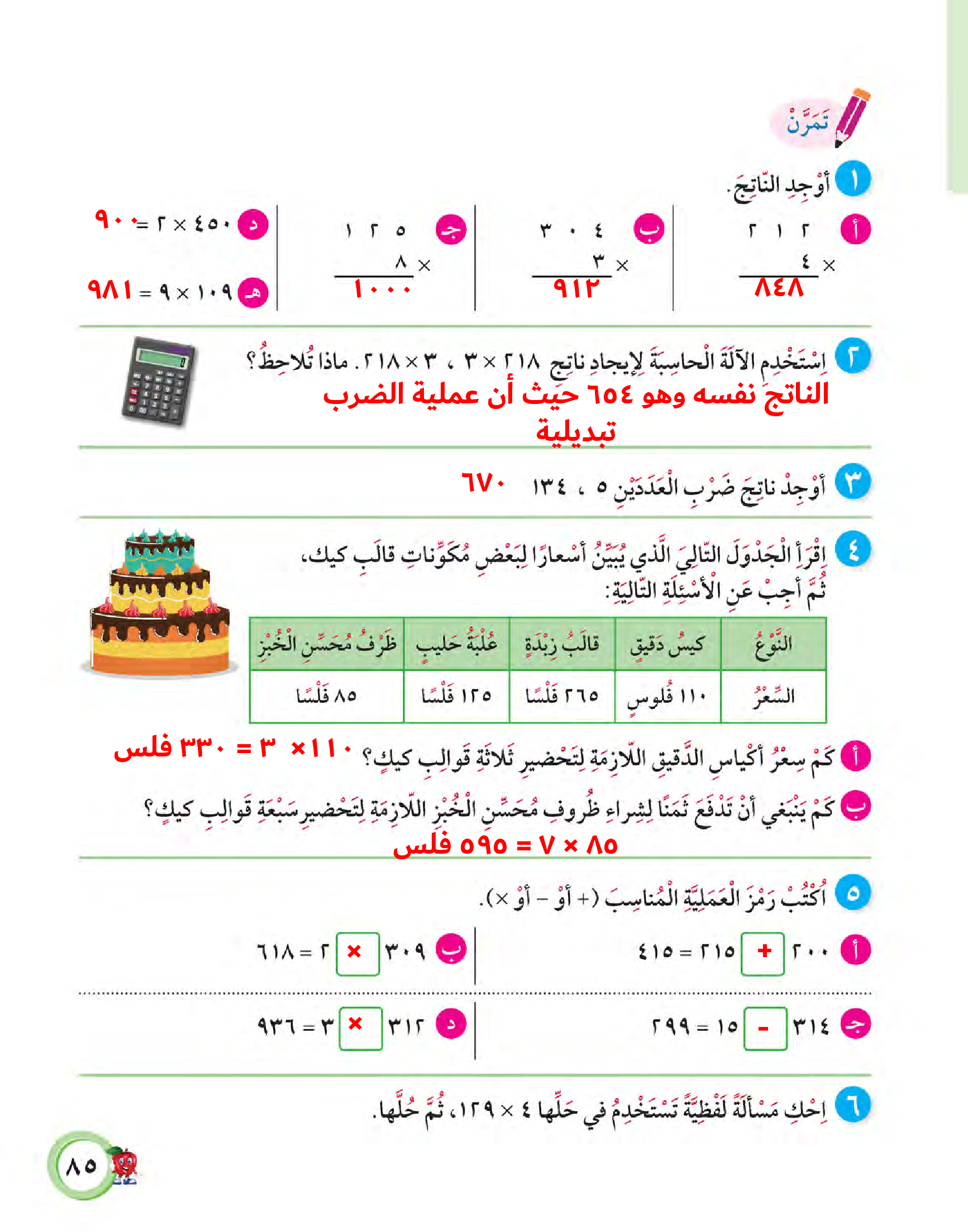 مراجعة (2) لوحدة ضرب الأعداد بناتج لا يزيد عن العدد 1000
