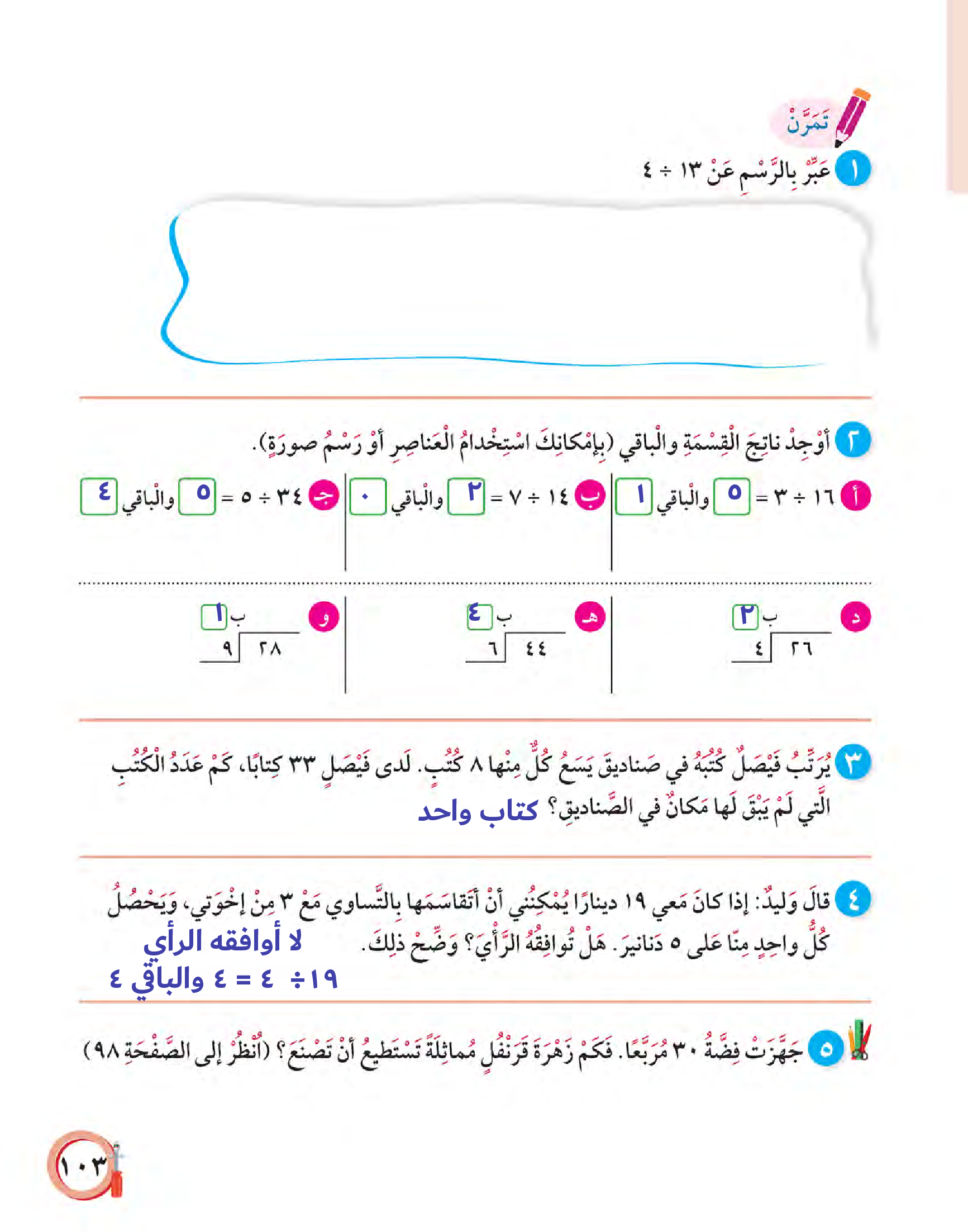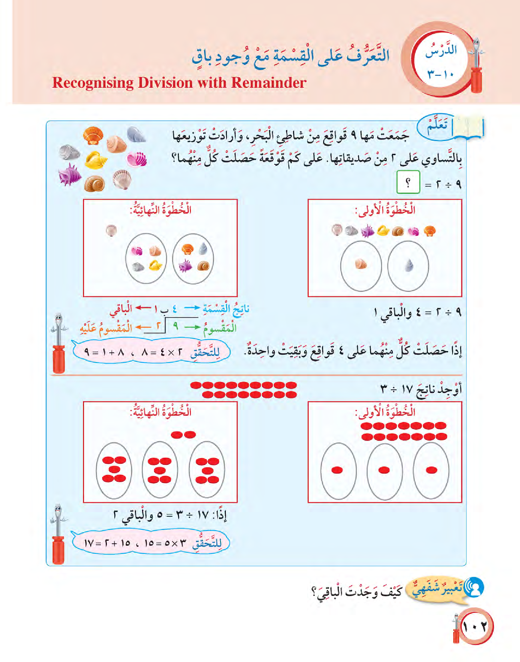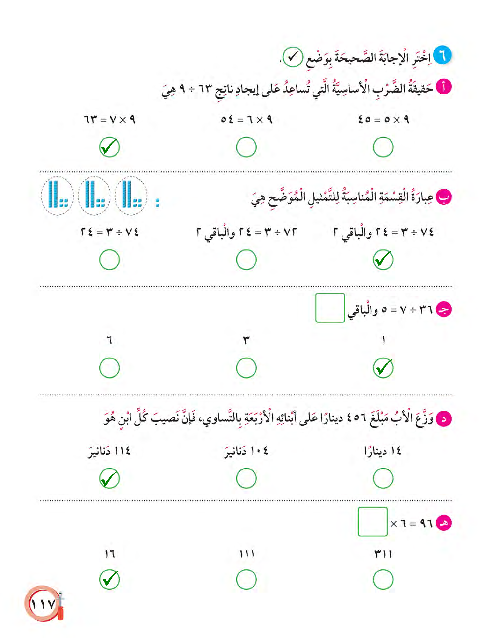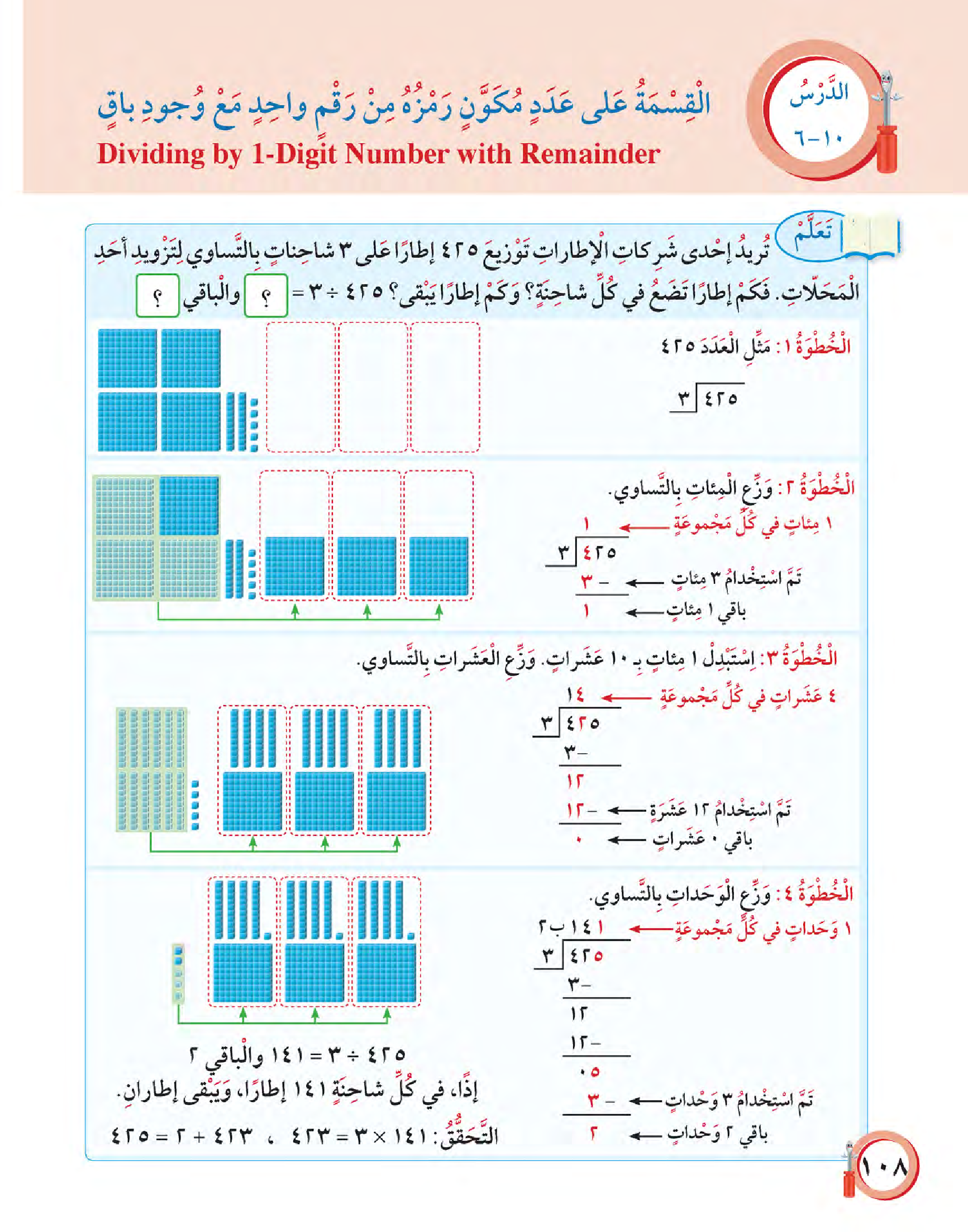 القسمة على عدد مكون رمزه من رقم واحد مع وجود باق