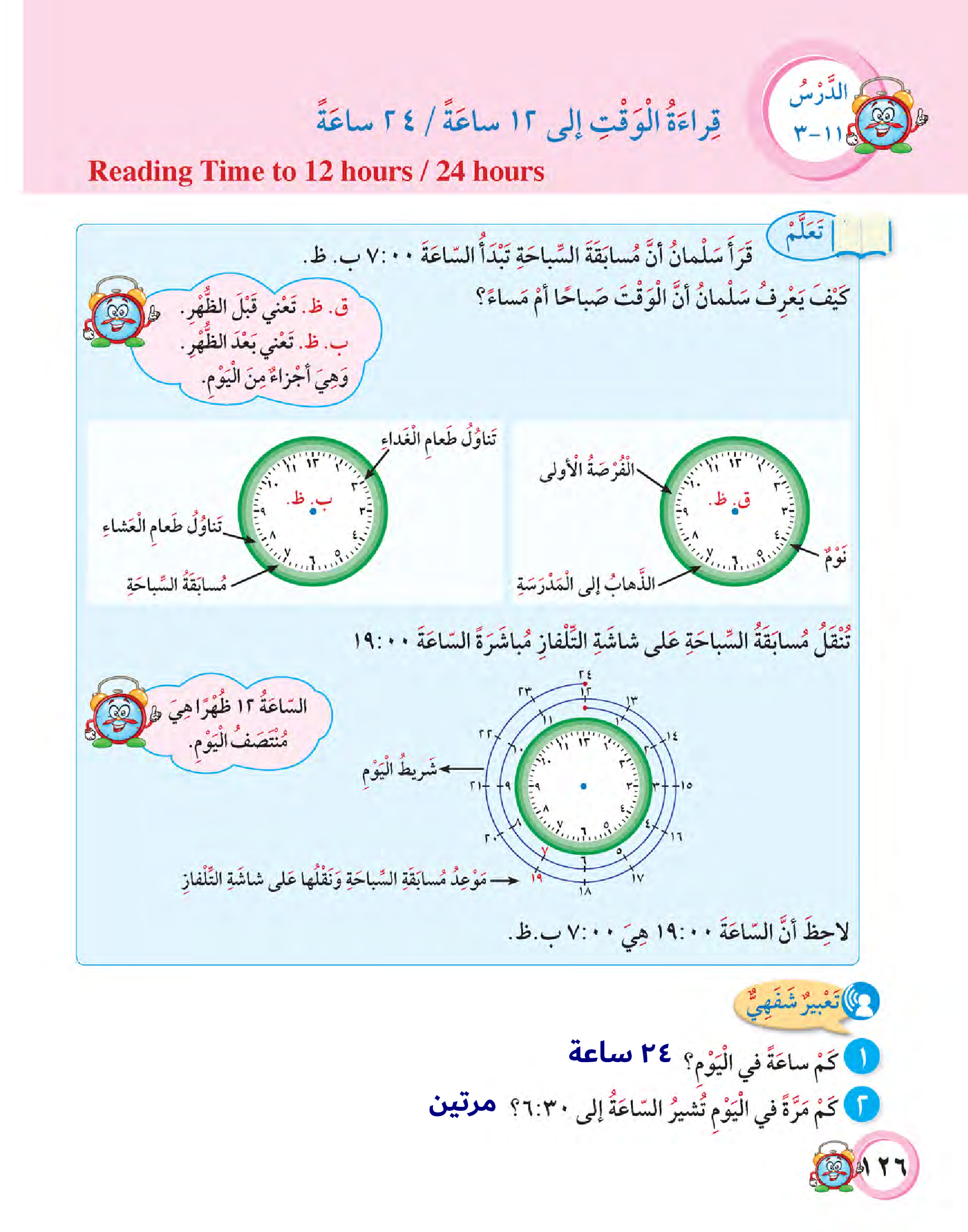 قراءة الوقت إلى 12 ساعة / 24 ساعة