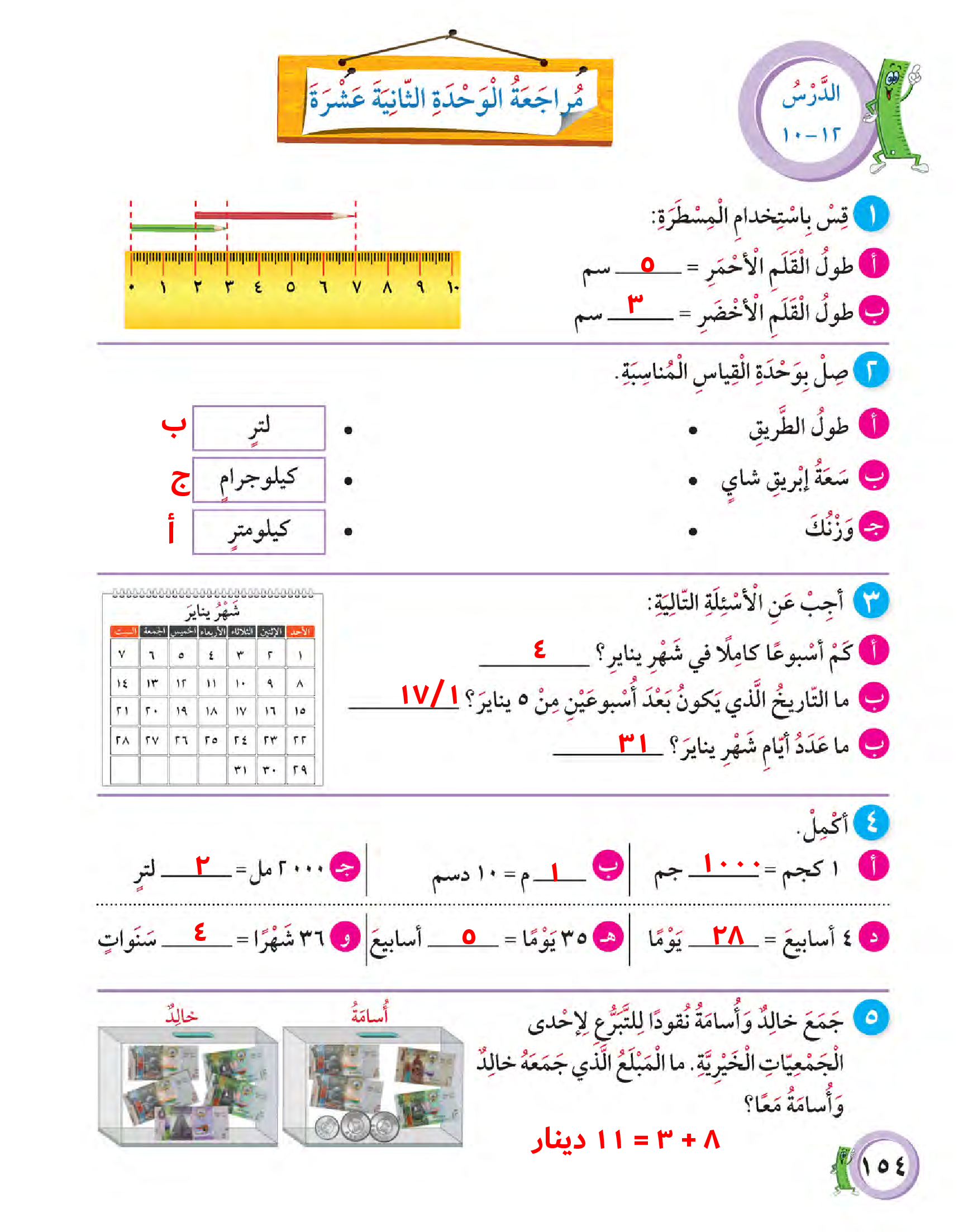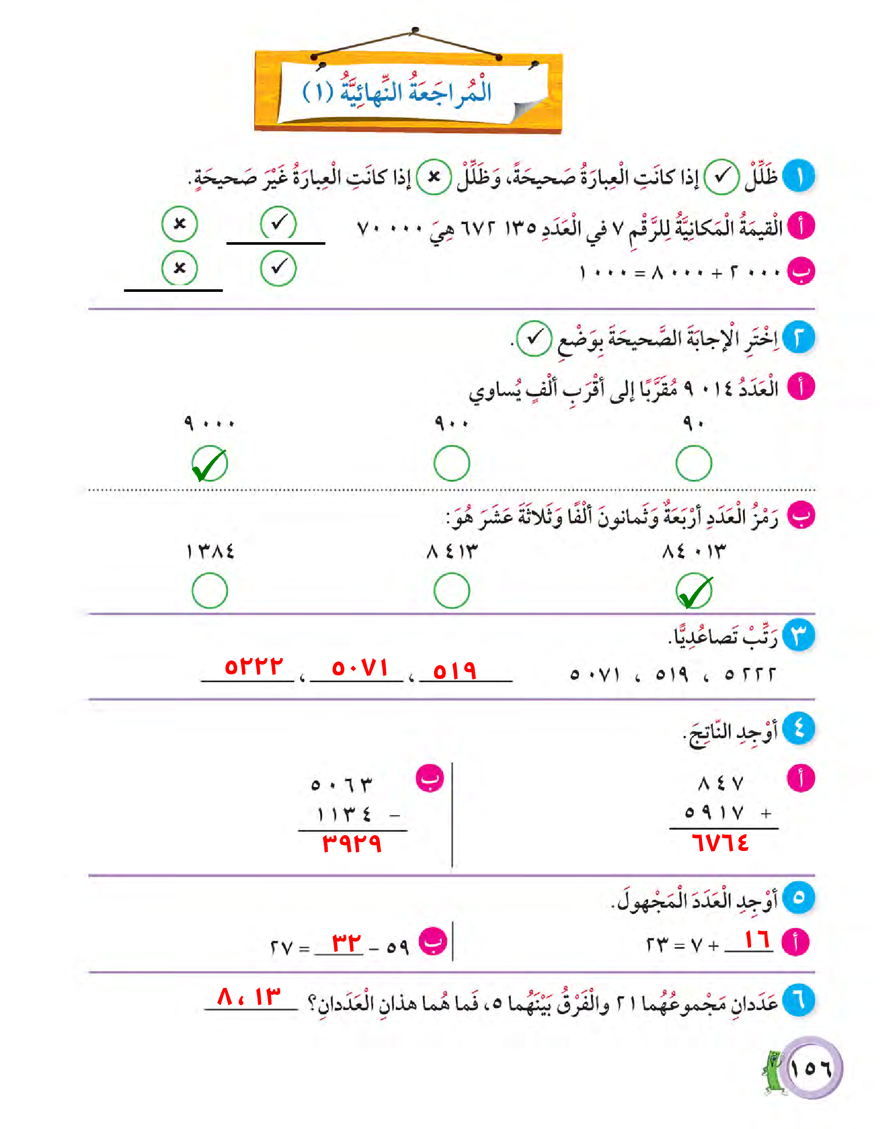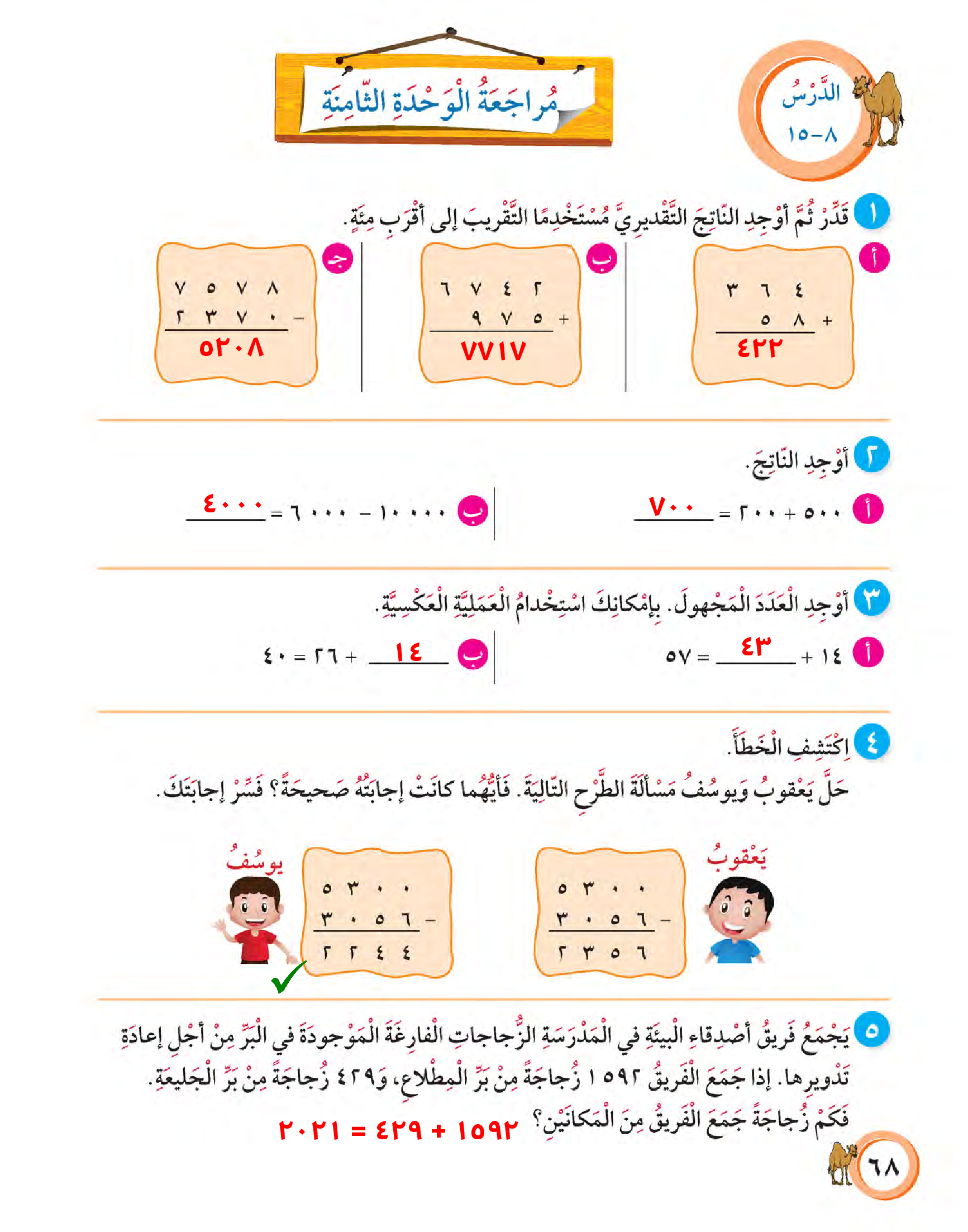 مراجعة وحدة جمع / طرح الأعداد الكلية