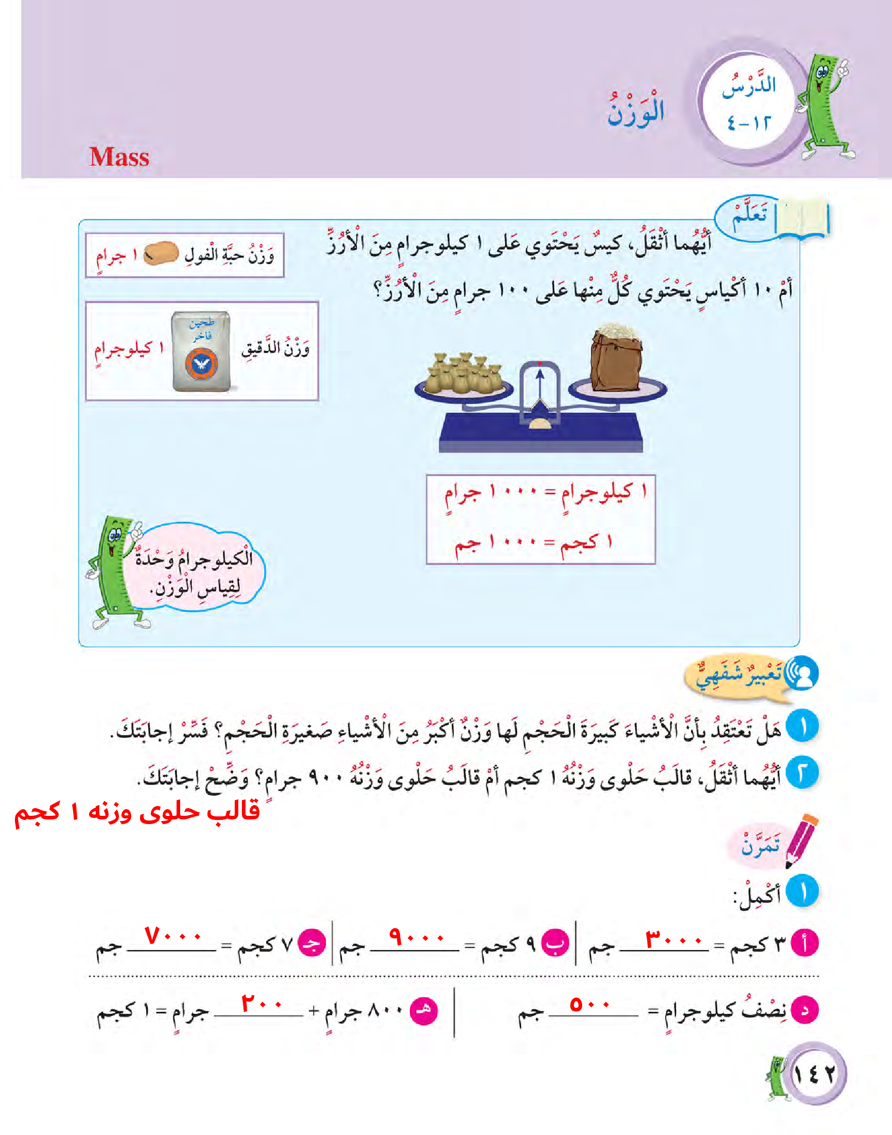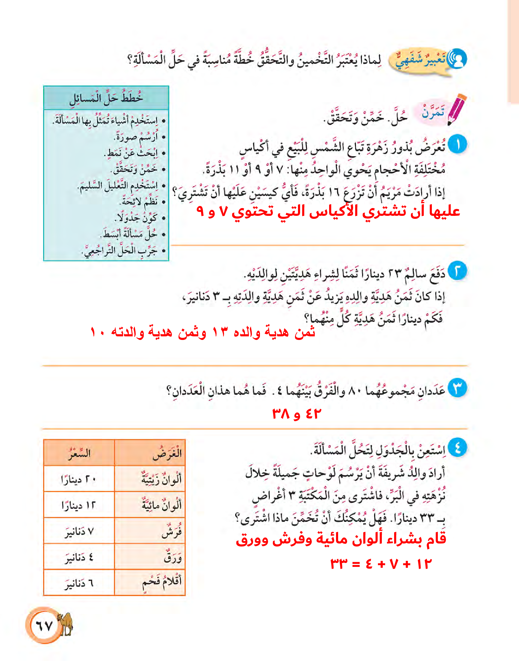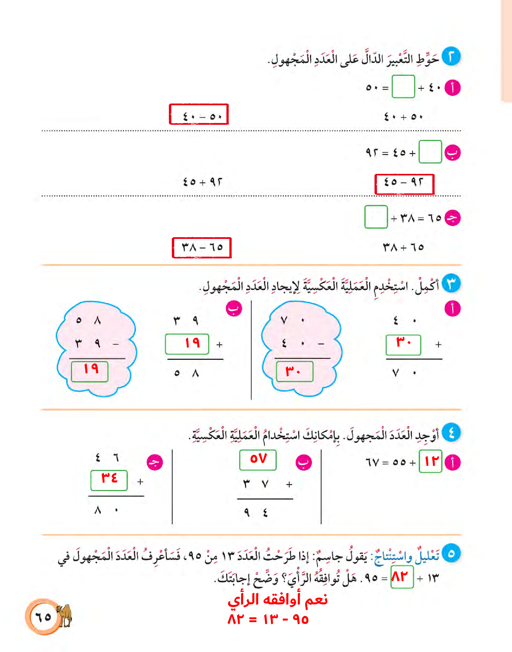 مراجعة وحدة جمع / طرح الأعداد الكلية