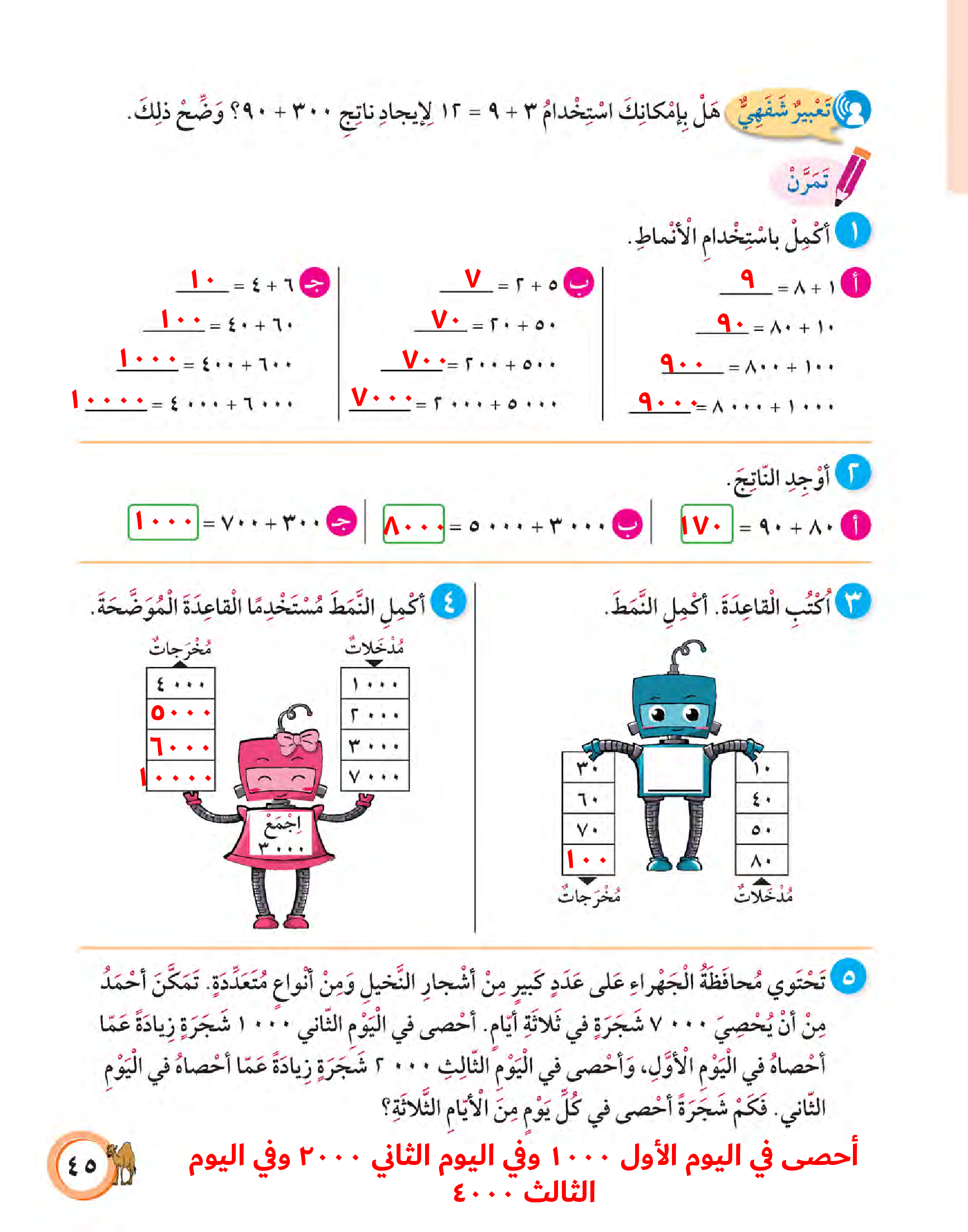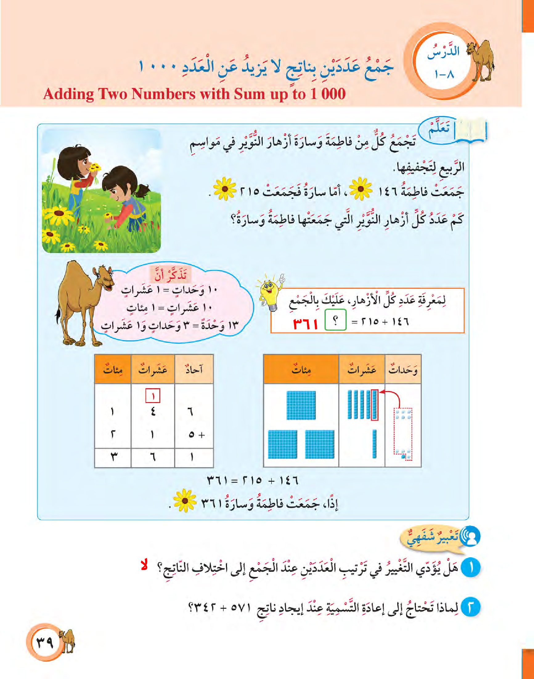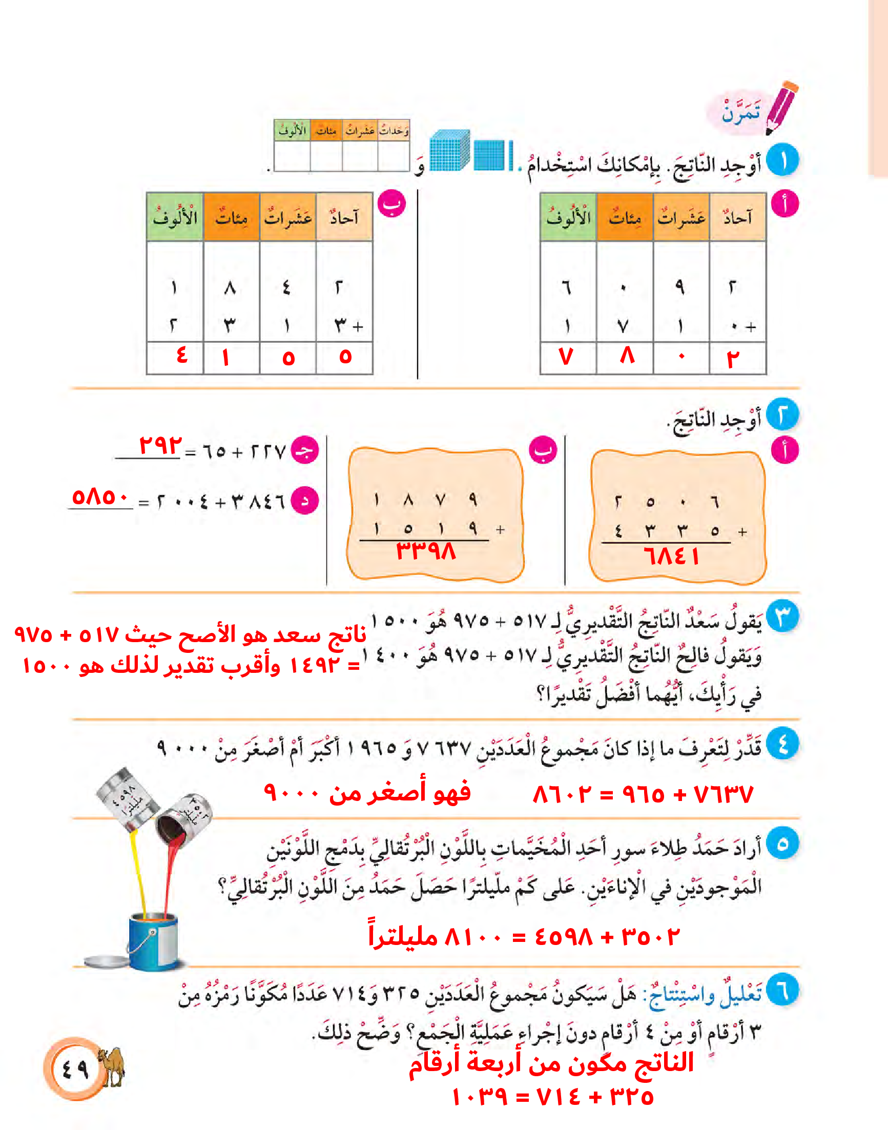 جمع عددين بناتج لا يزيد عن العدد 1000