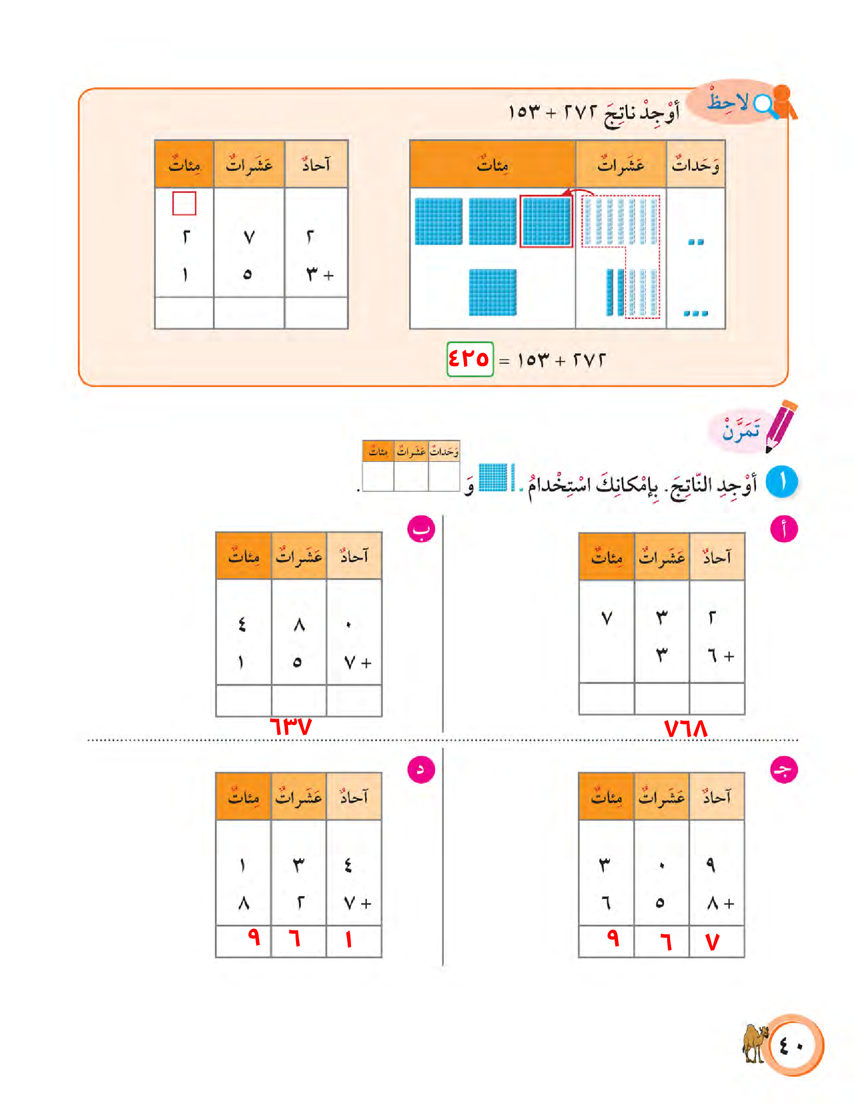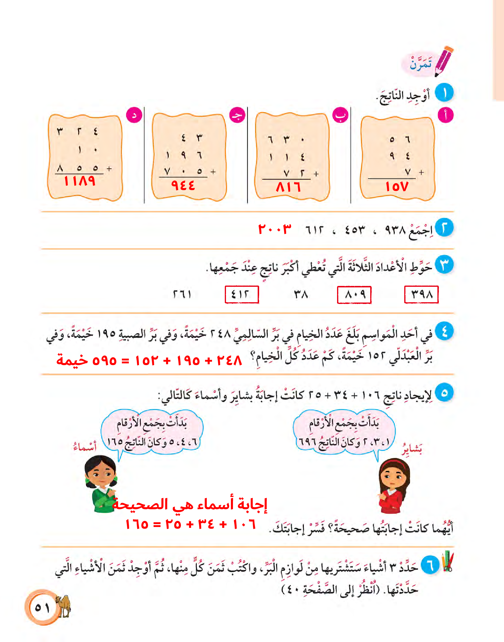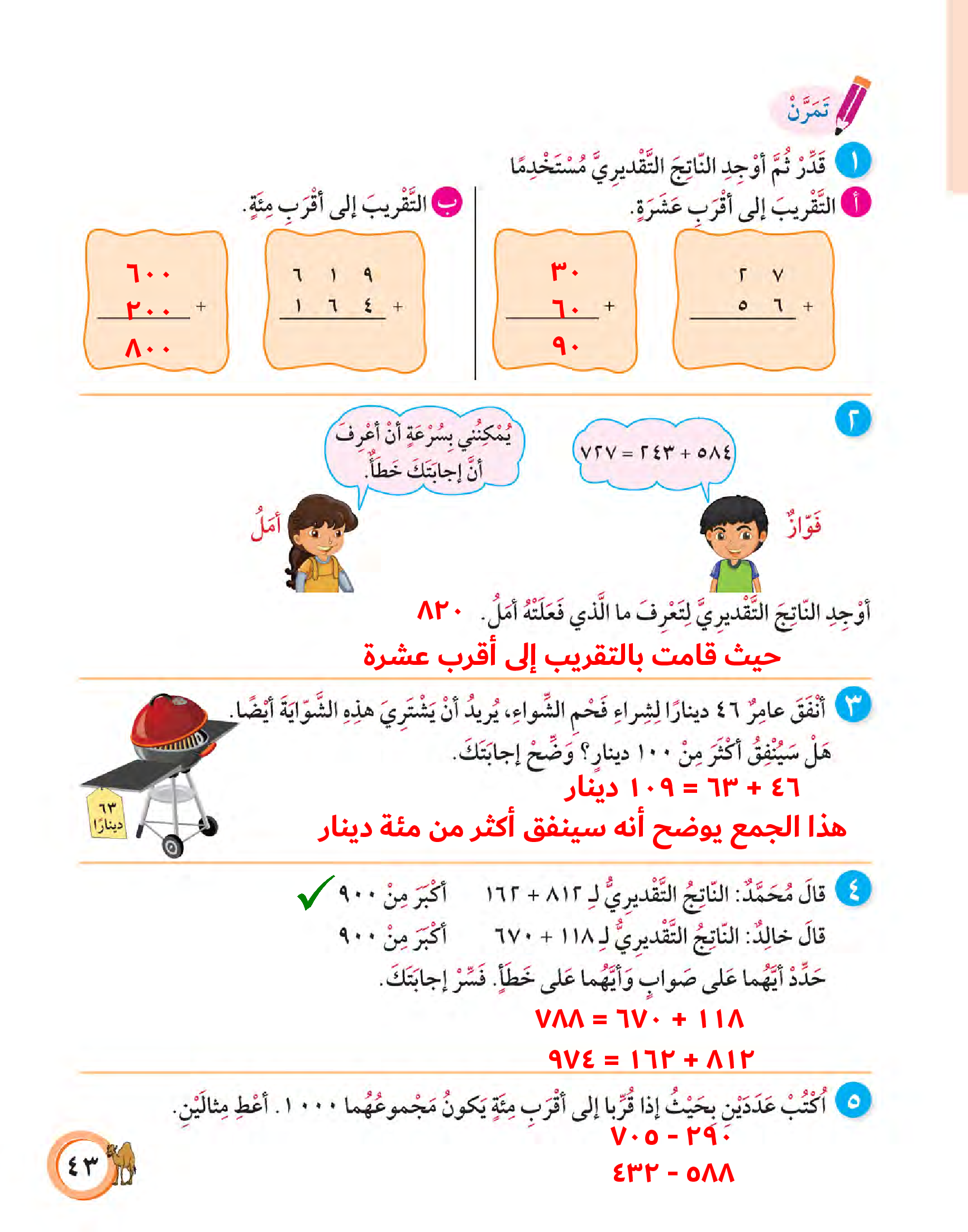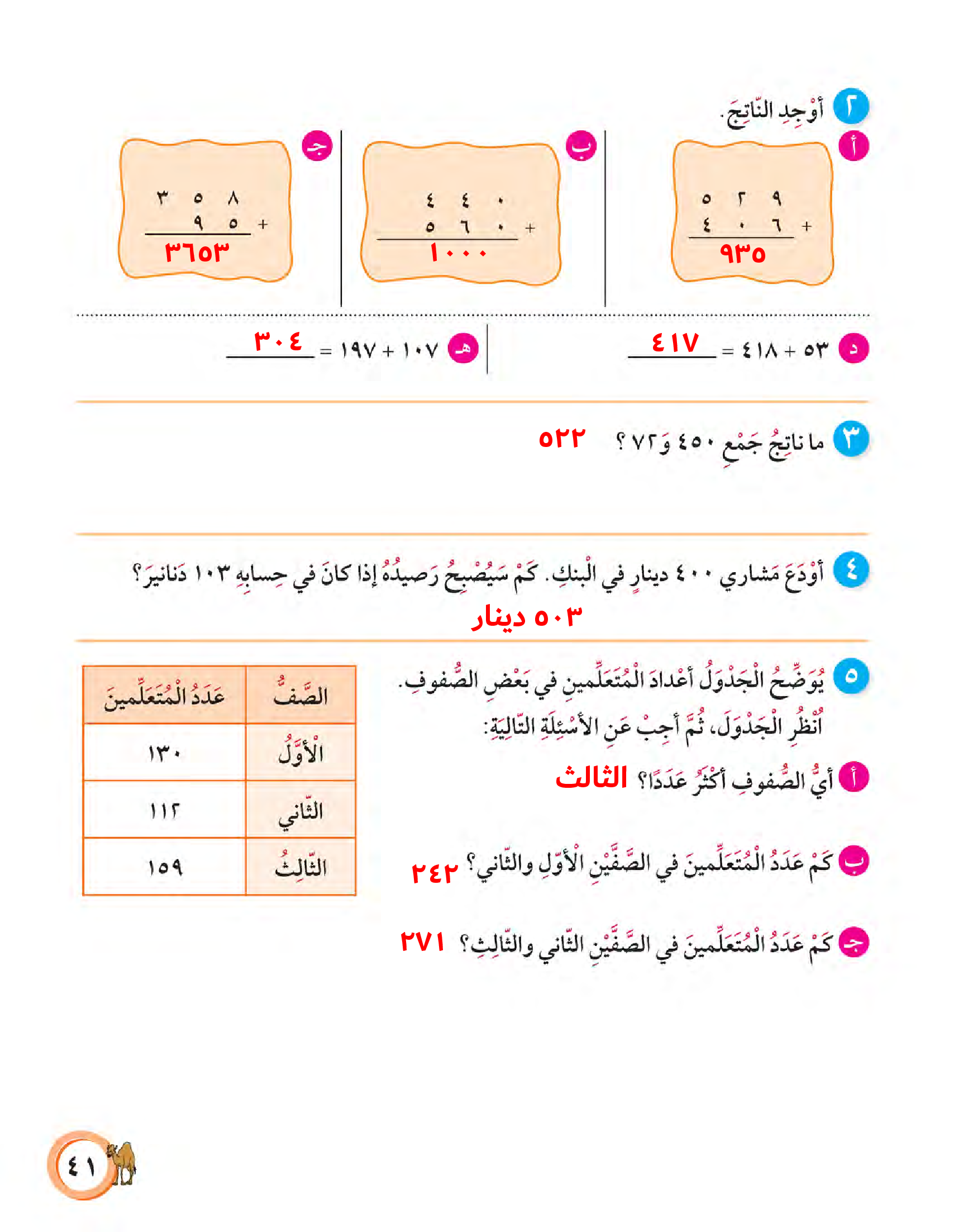 جمع عددين بناتج لا يزيد عن العدد 1000