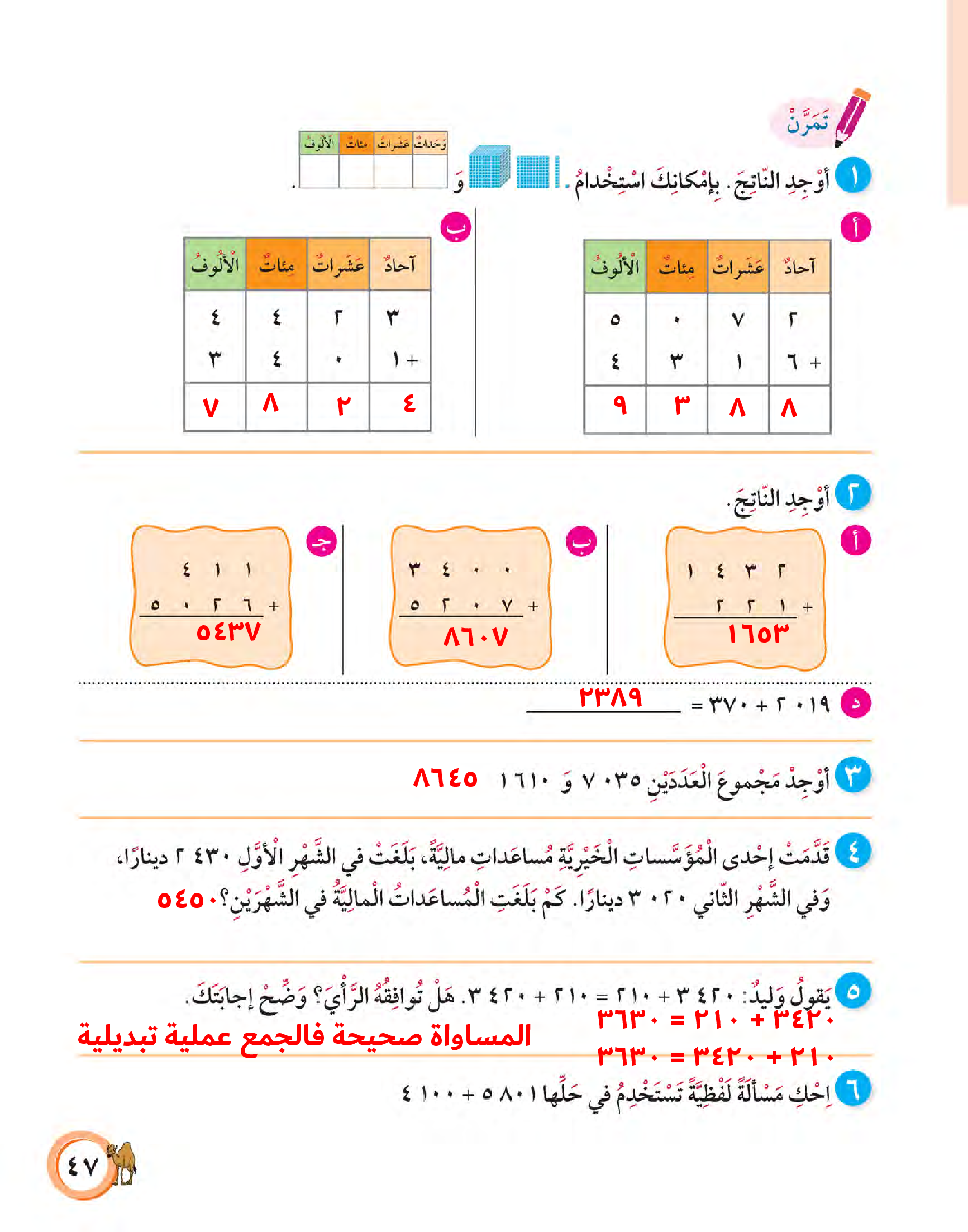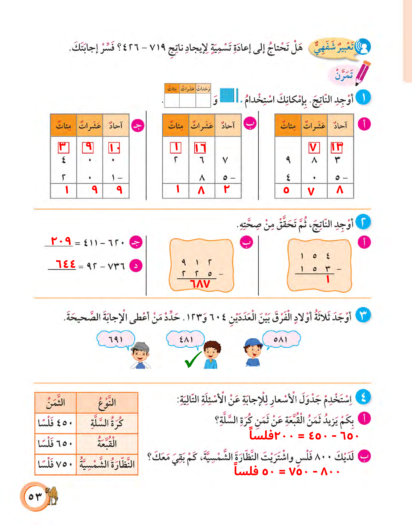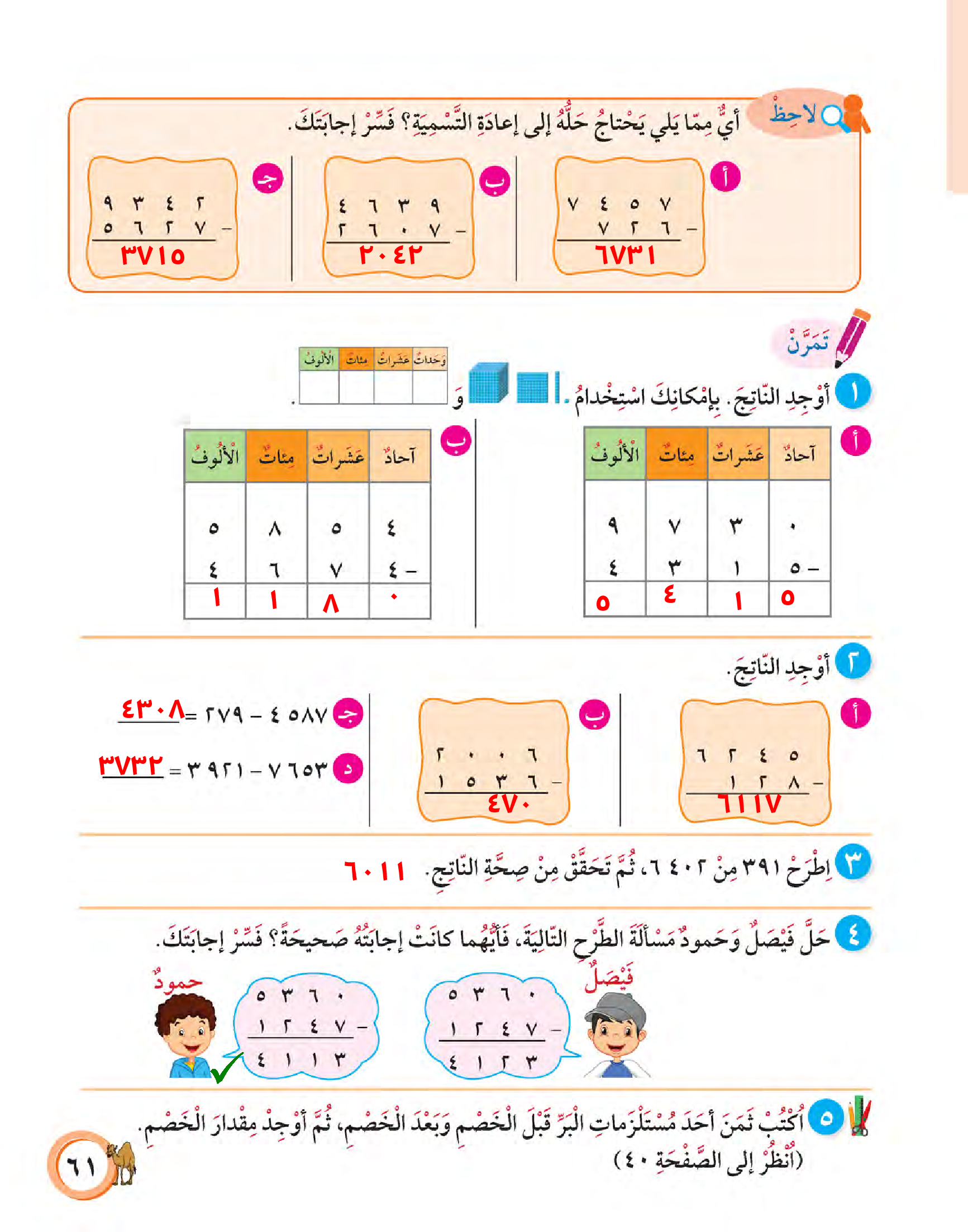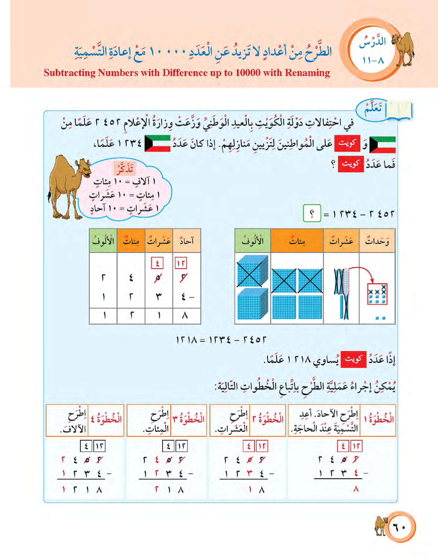 الطرح من أعداد لا تزيد عن العدد 10000 مع اعادة التسمية