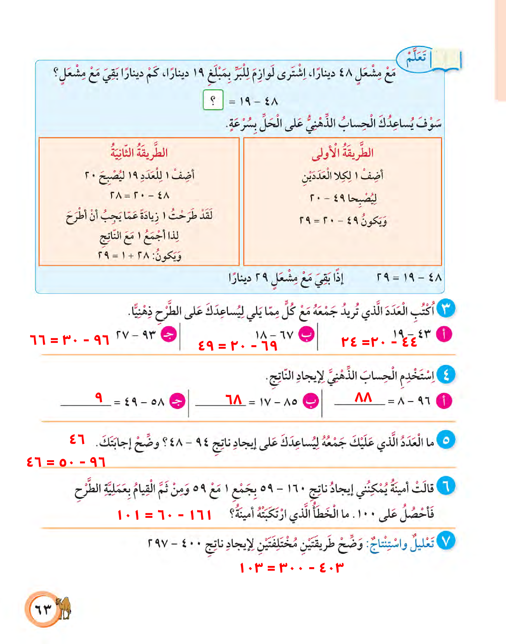الطرح من أعداد لا تزيد عن العدد 10000 بدون اعادة التسمية