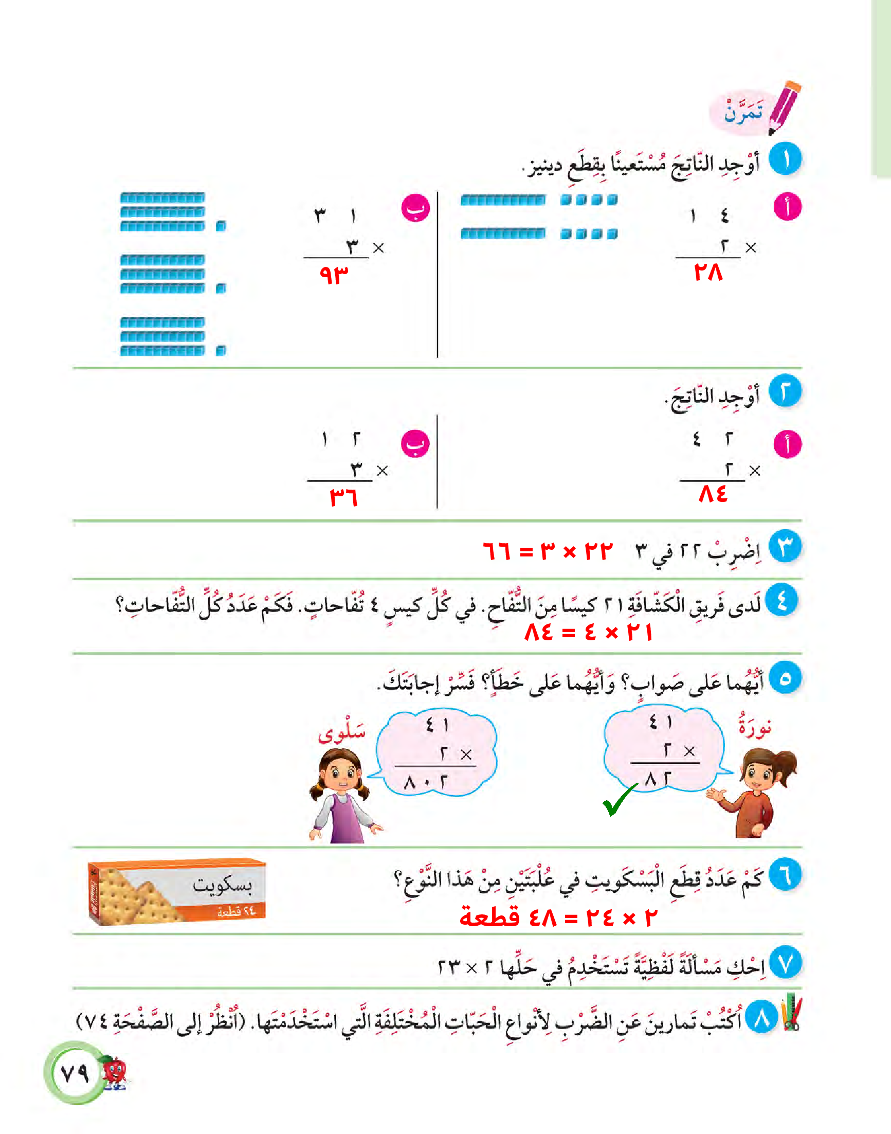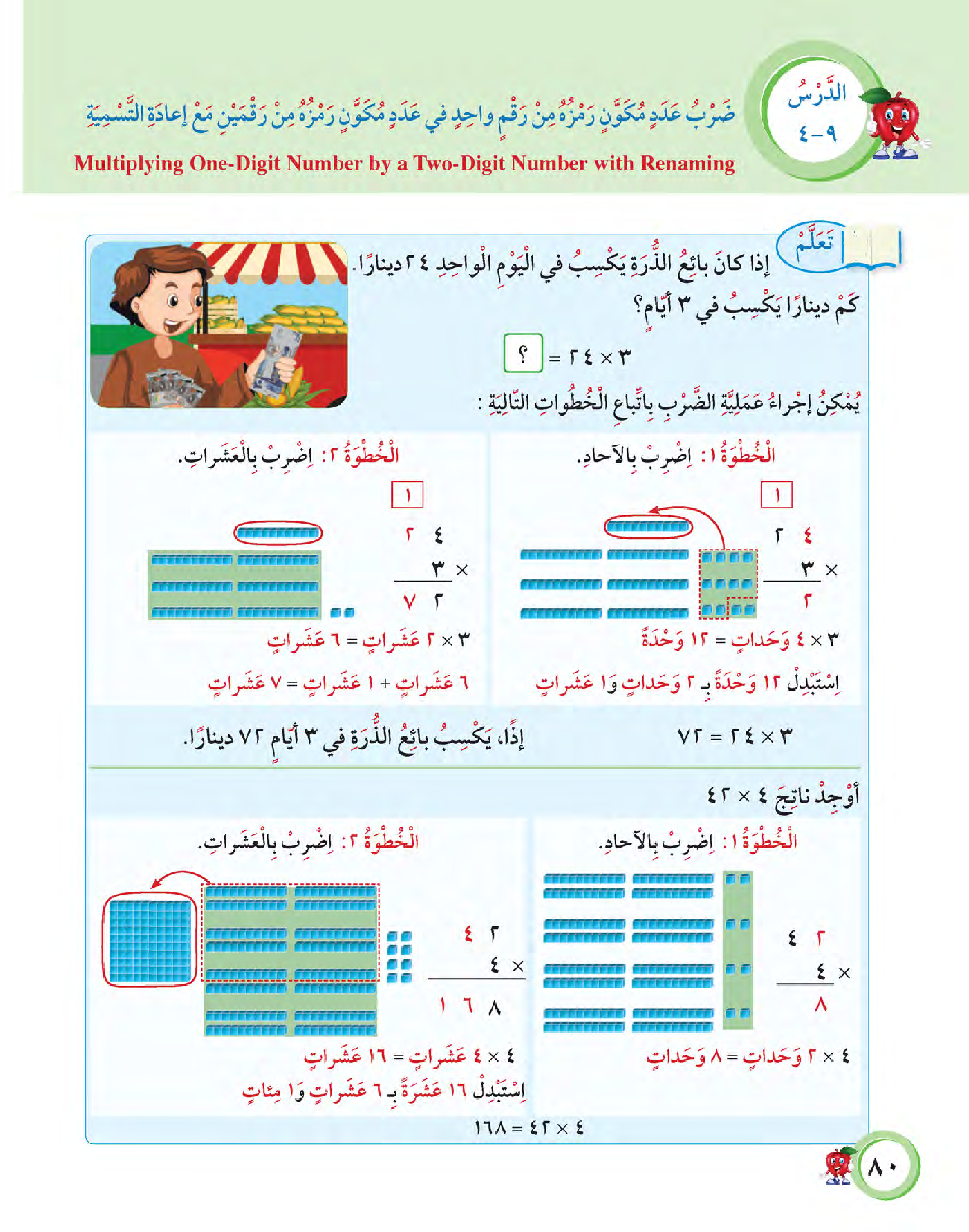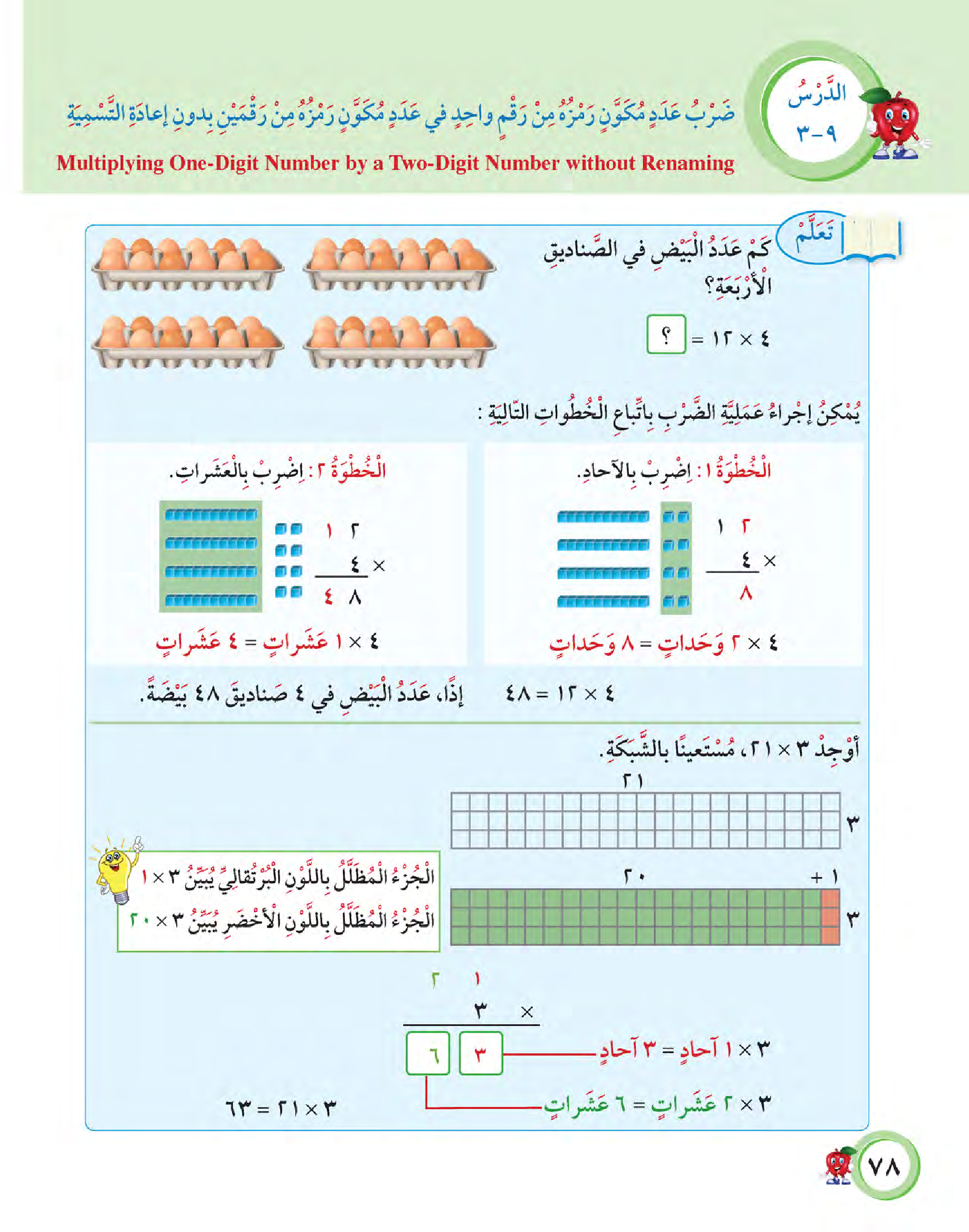 ضرب عدد مكون رمزه من رقم واحد في عدد مكون رمزه من رقمين مع اعادة التسمية
