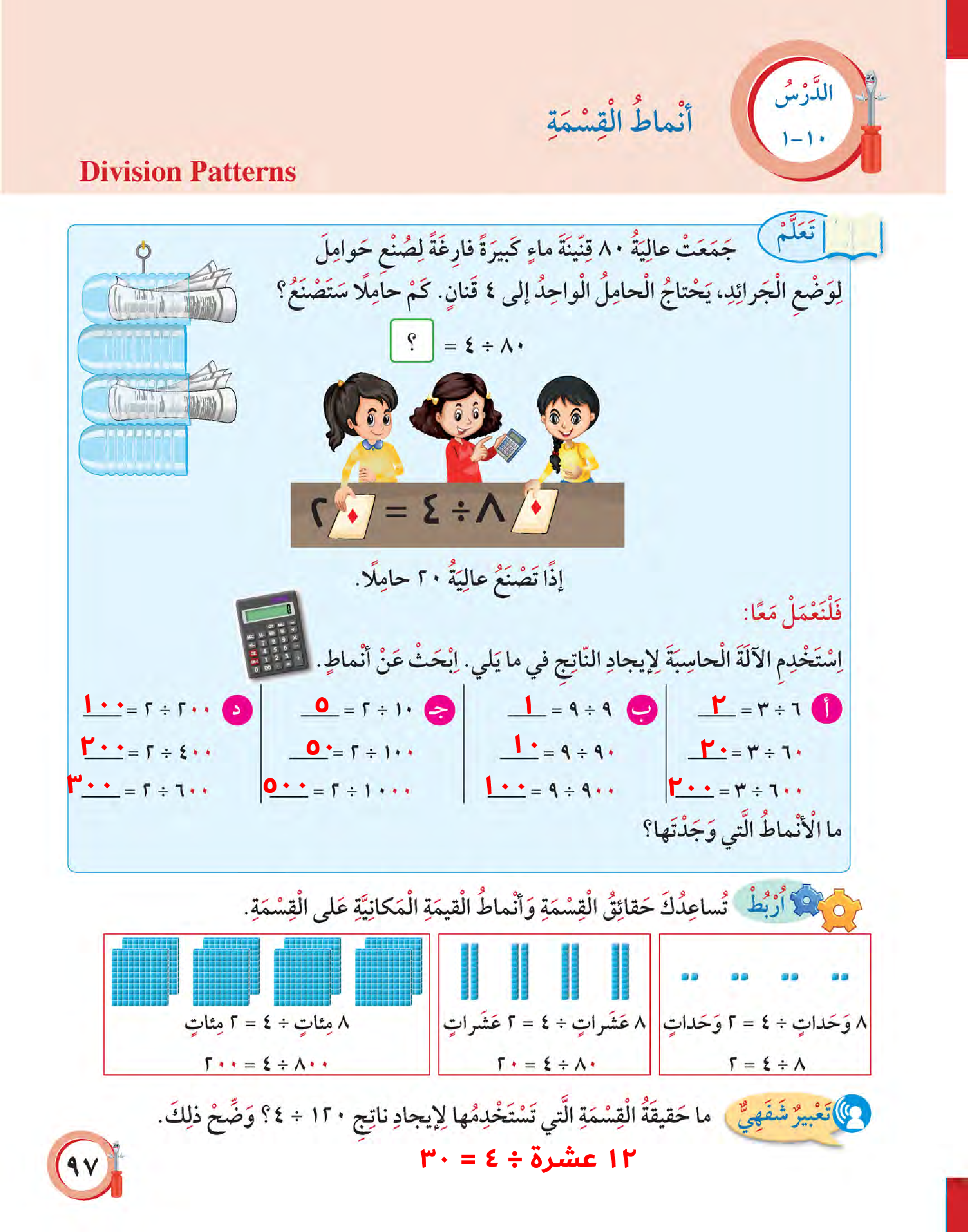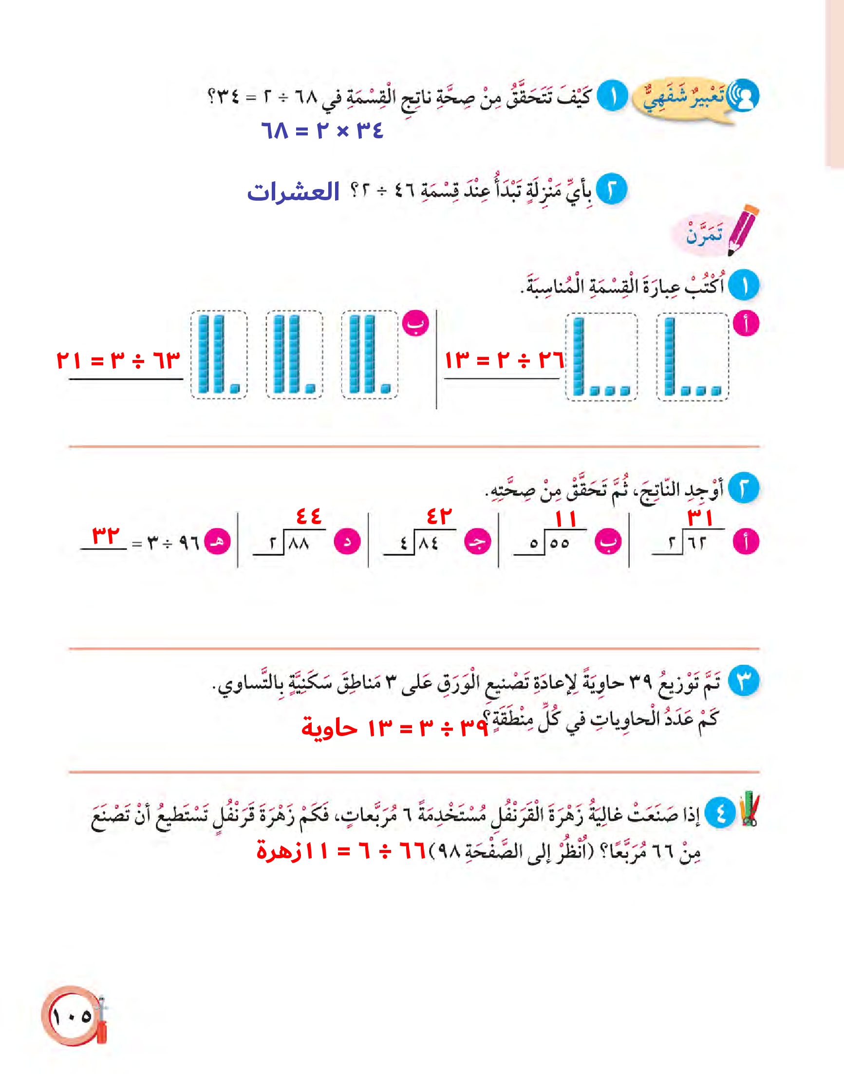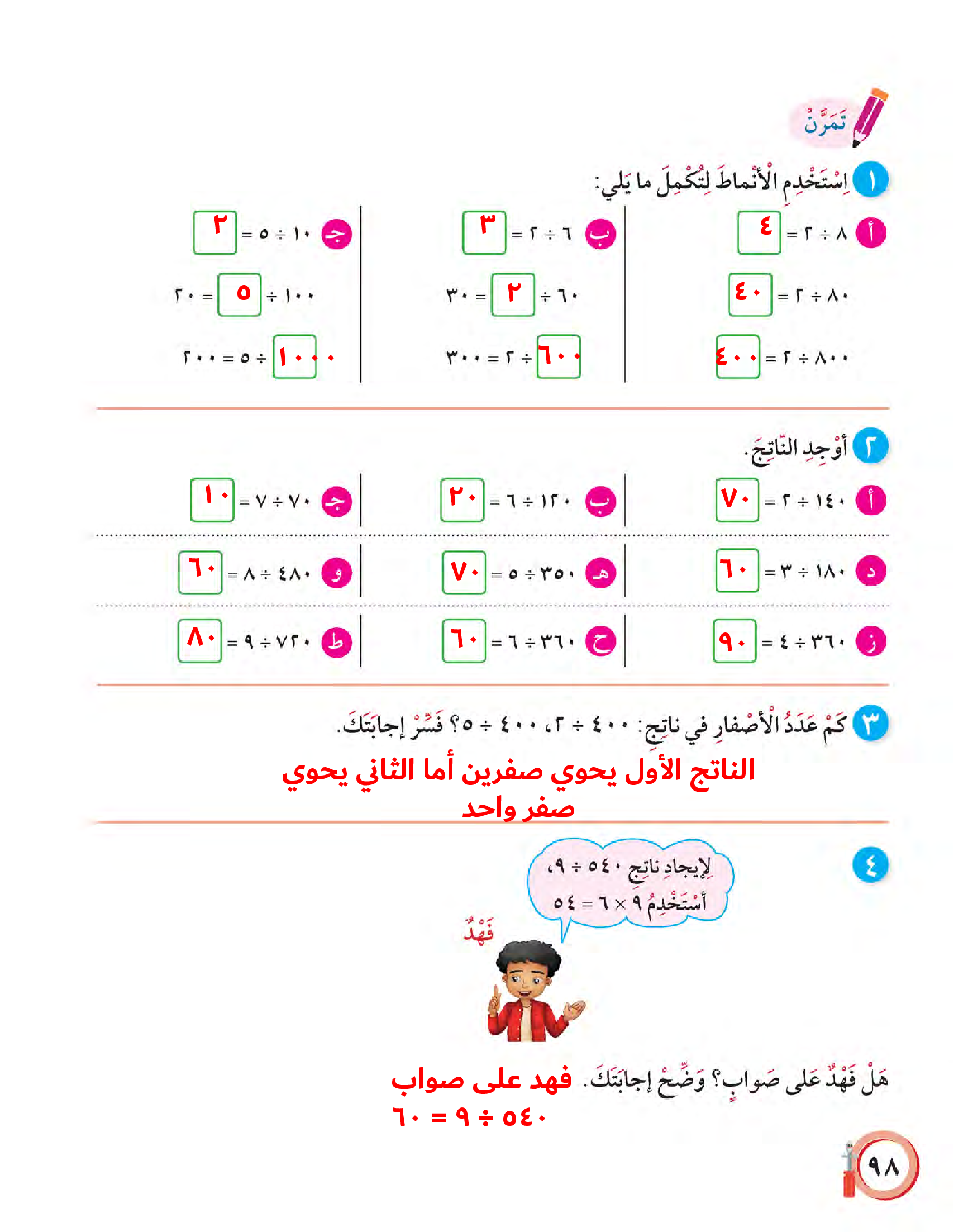 القسمة على عدد مكون رمزه من رقم واحد بدون اعادة التسمية وبدون باق