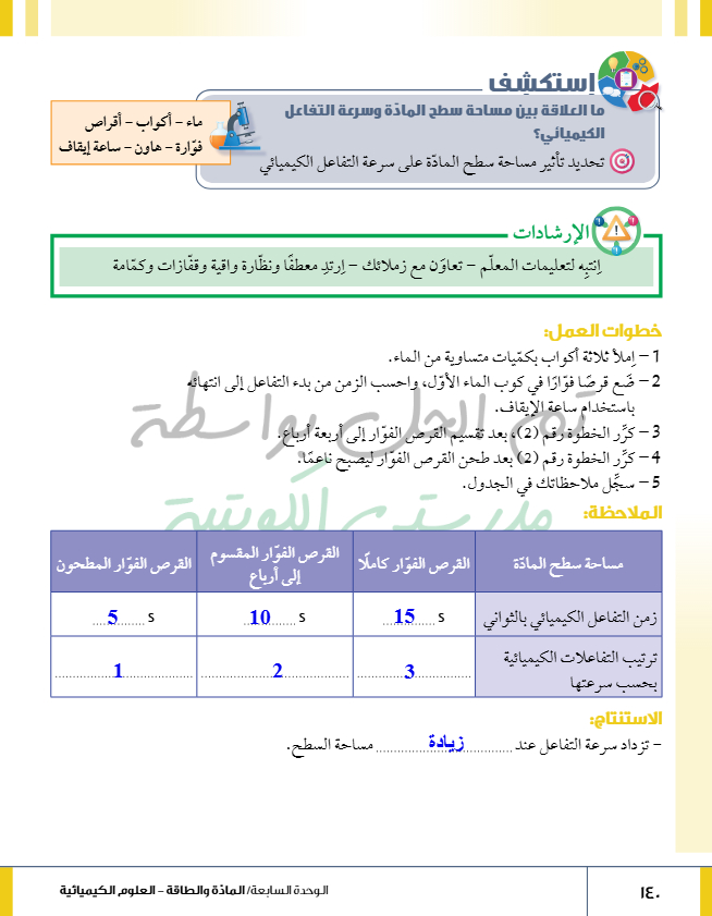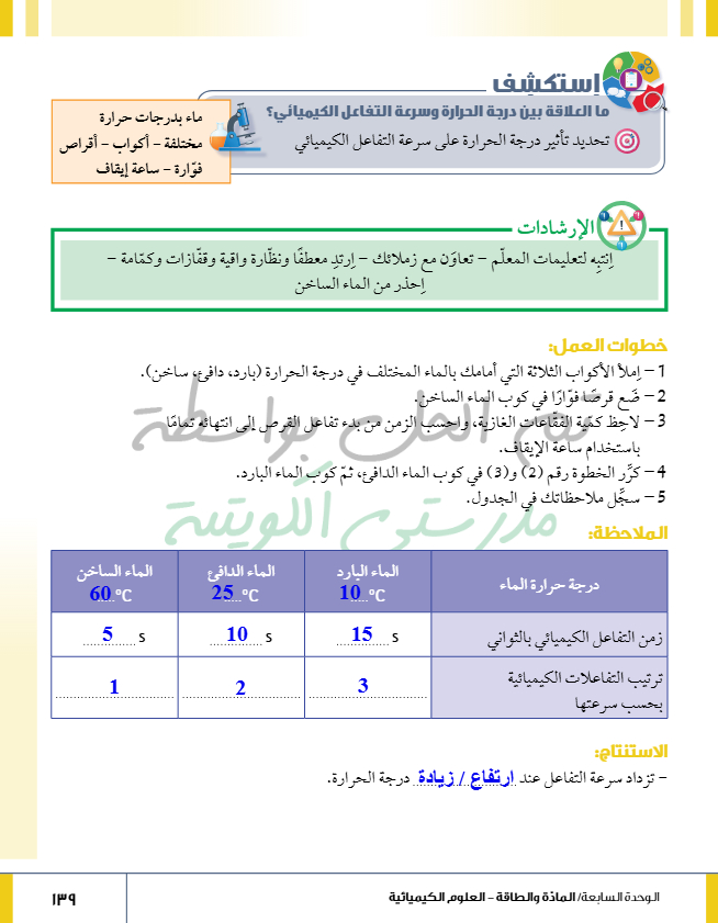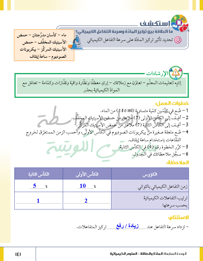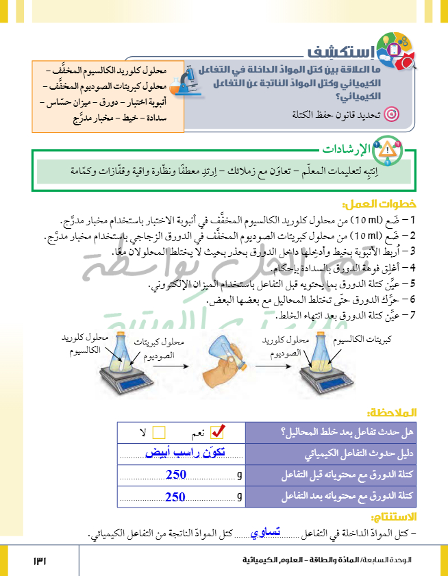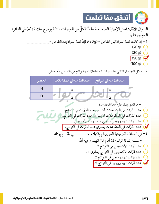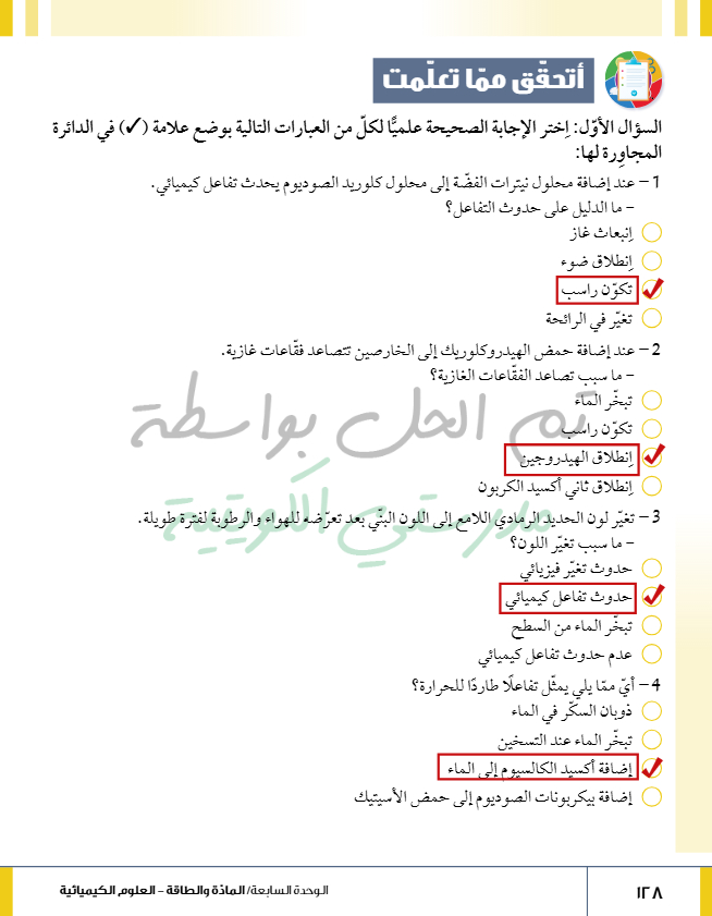 تقويم فصل التفاعل الكيميائي