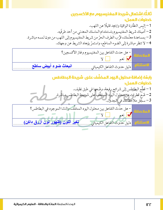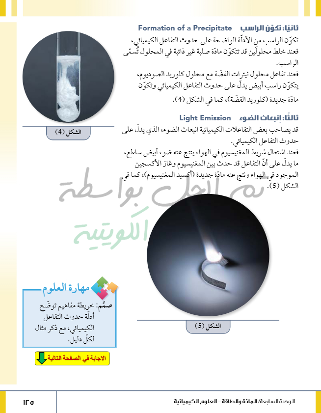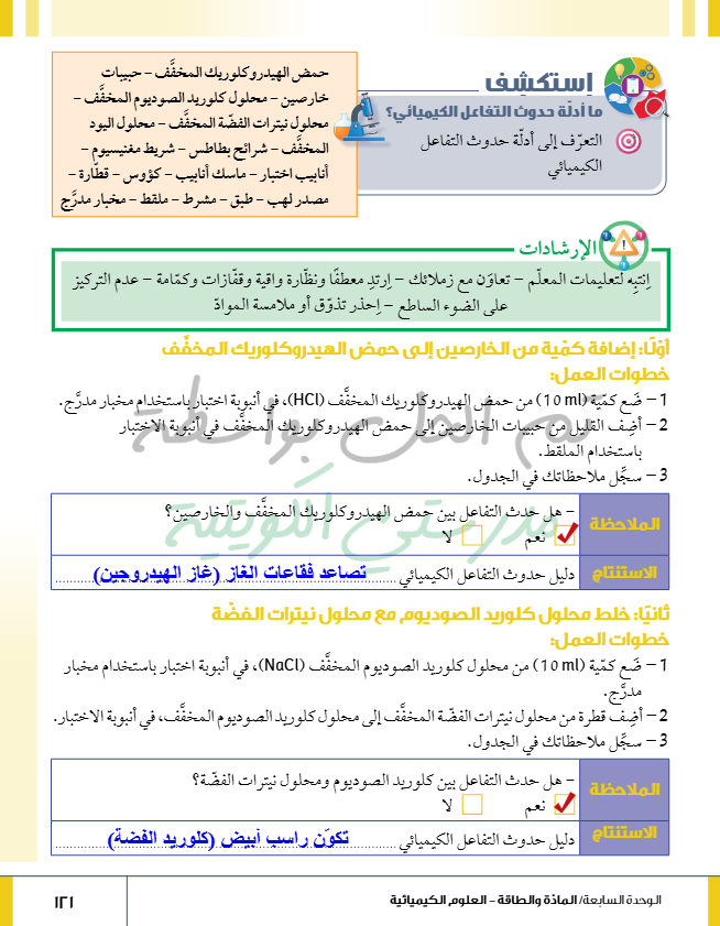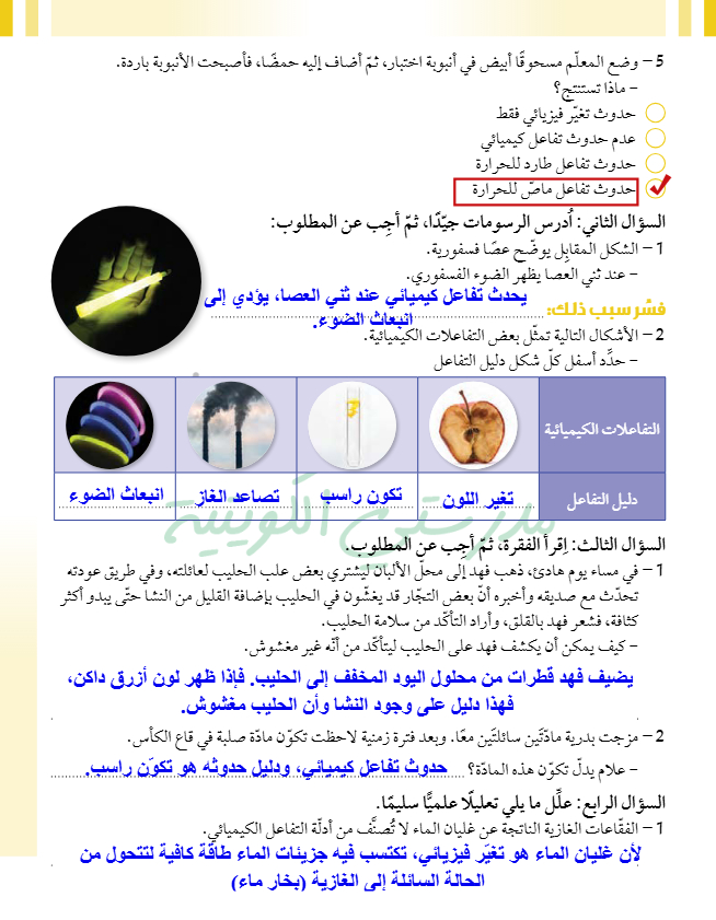 أدلة حدوث التفاعل الكيميائي