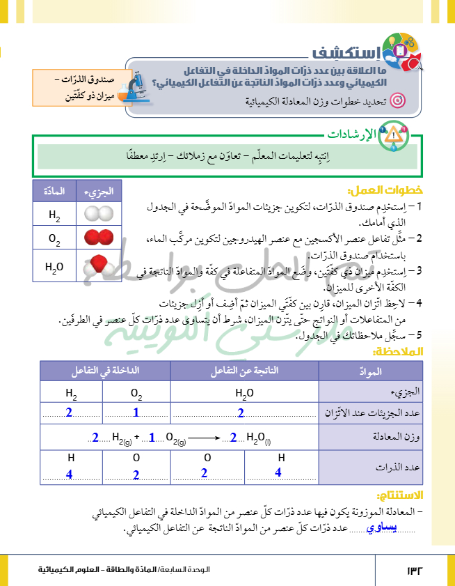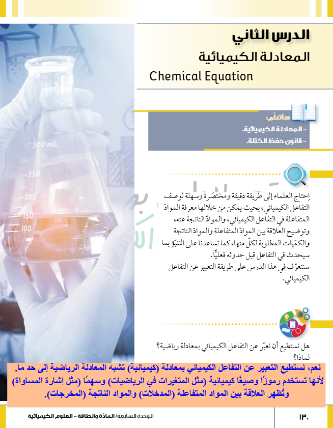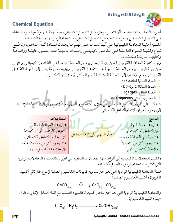 المعادلة الكيميائية