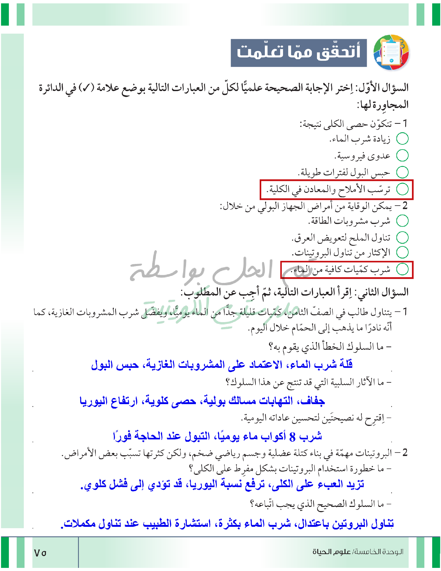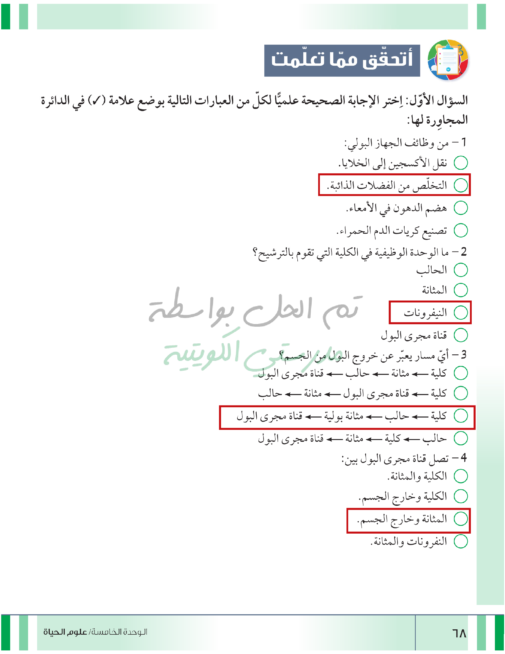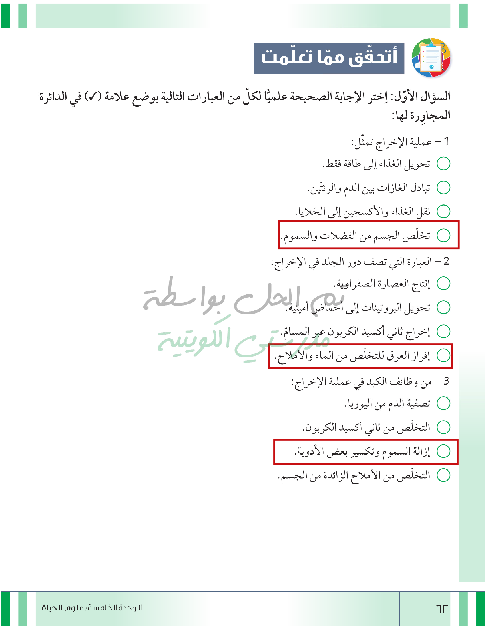 تقييم نهاية فصل الاخراج في الانسان