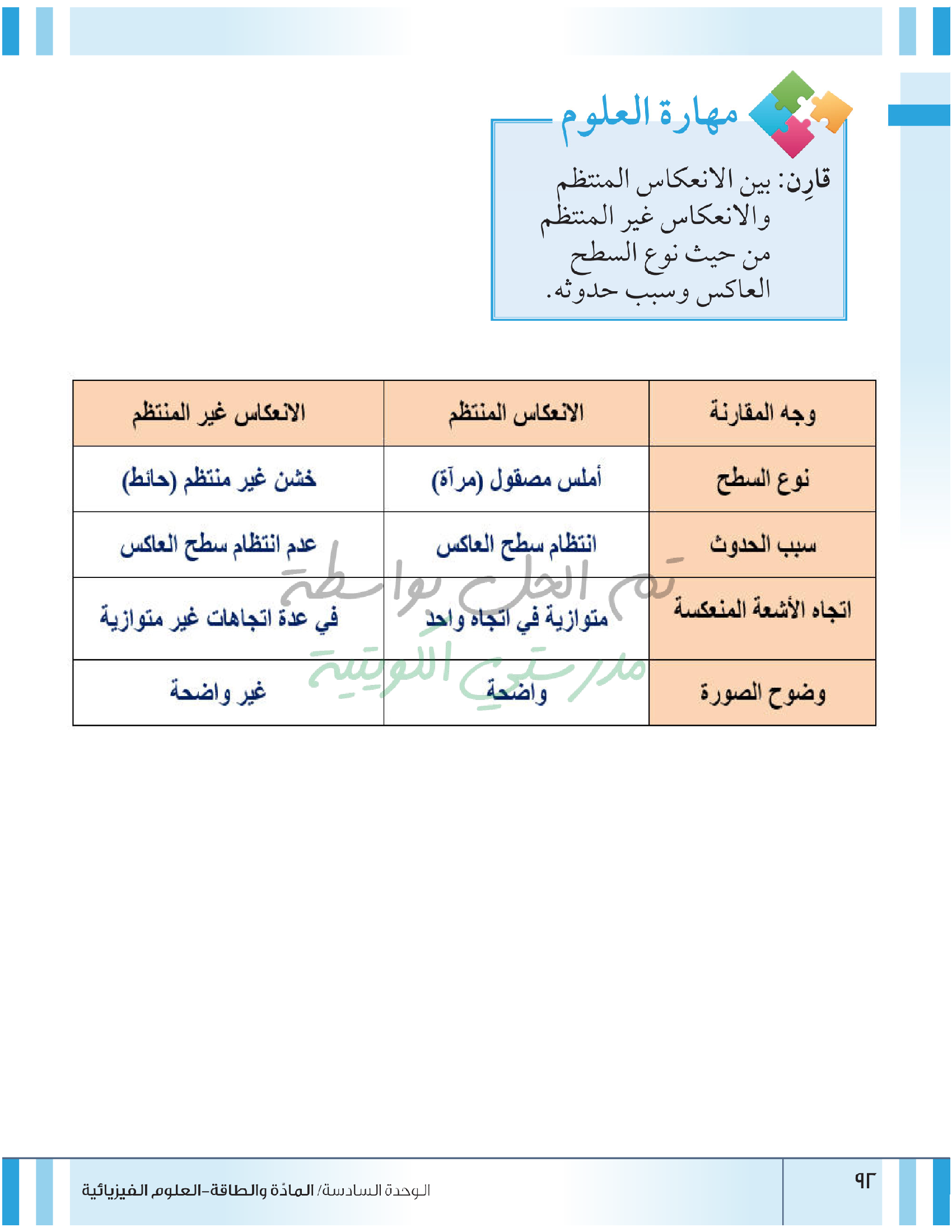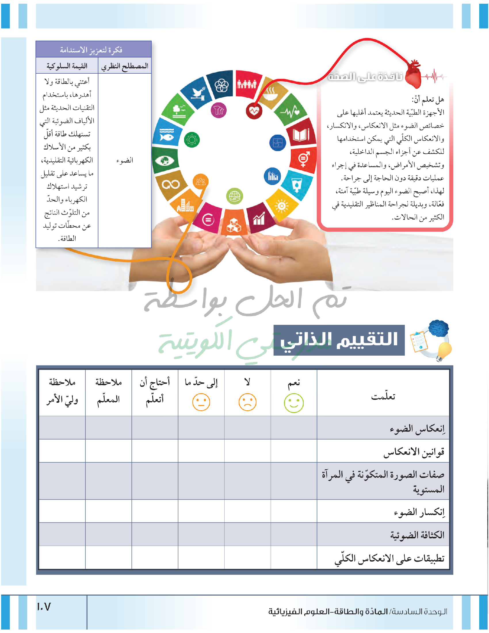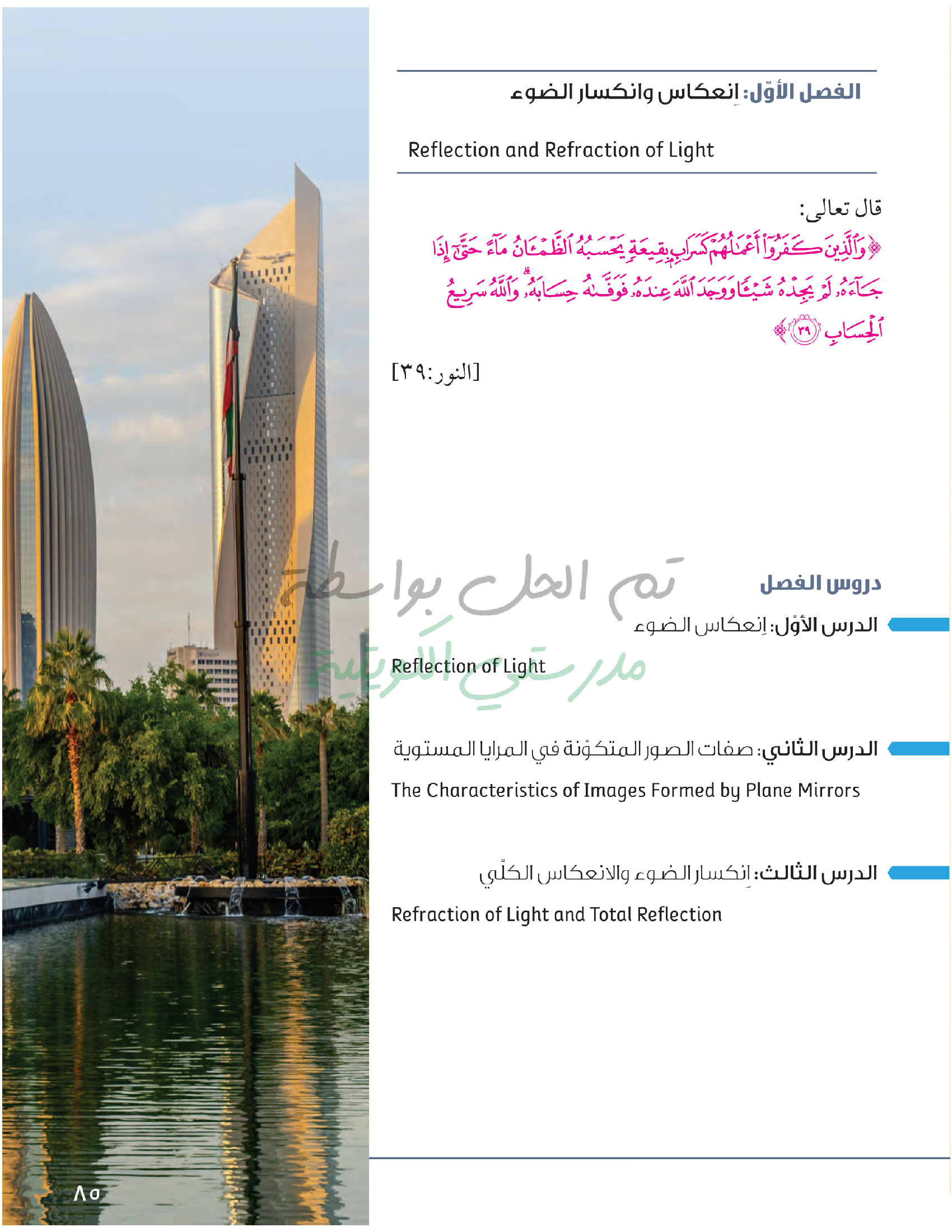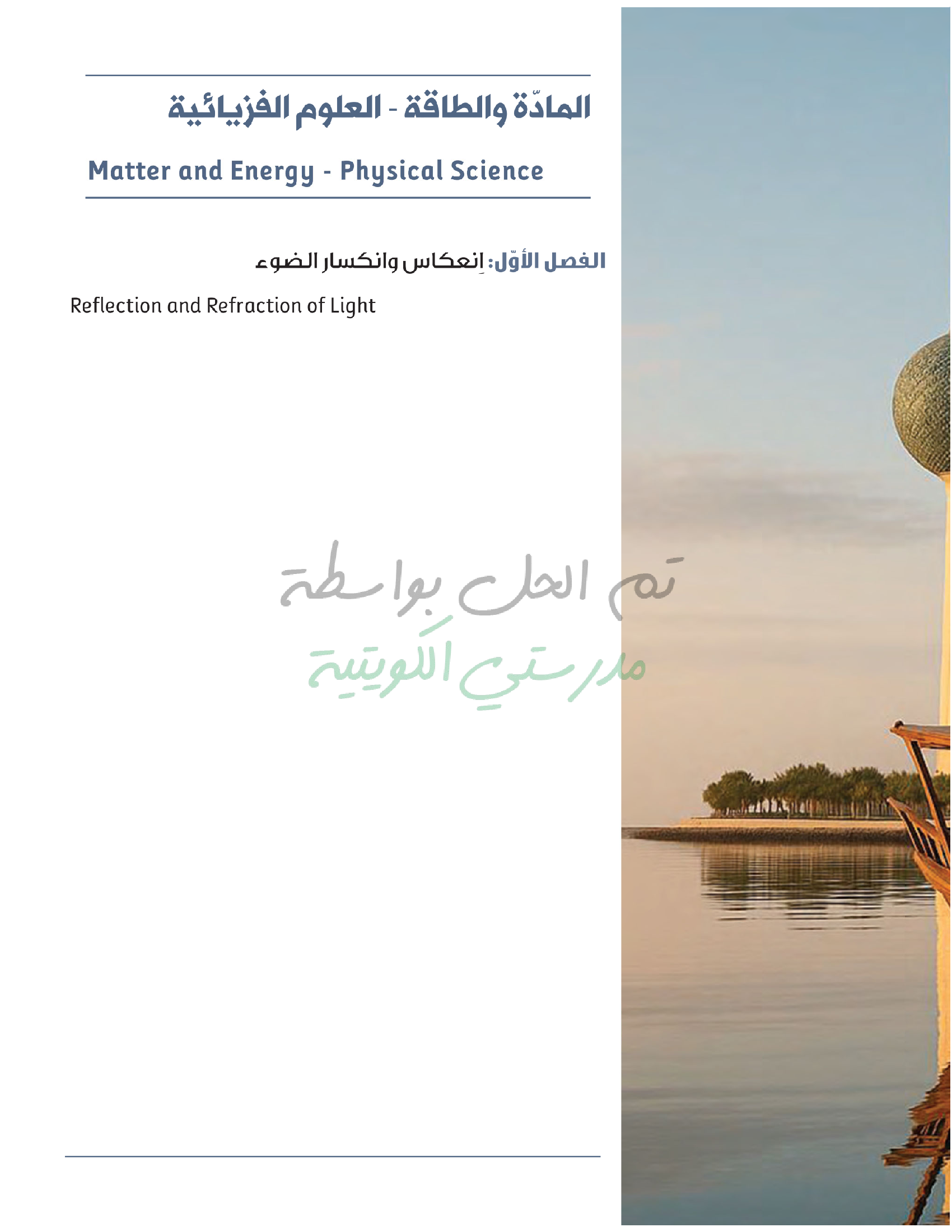 تقييم نهاية فصل انعكاس وانكسار الضوء