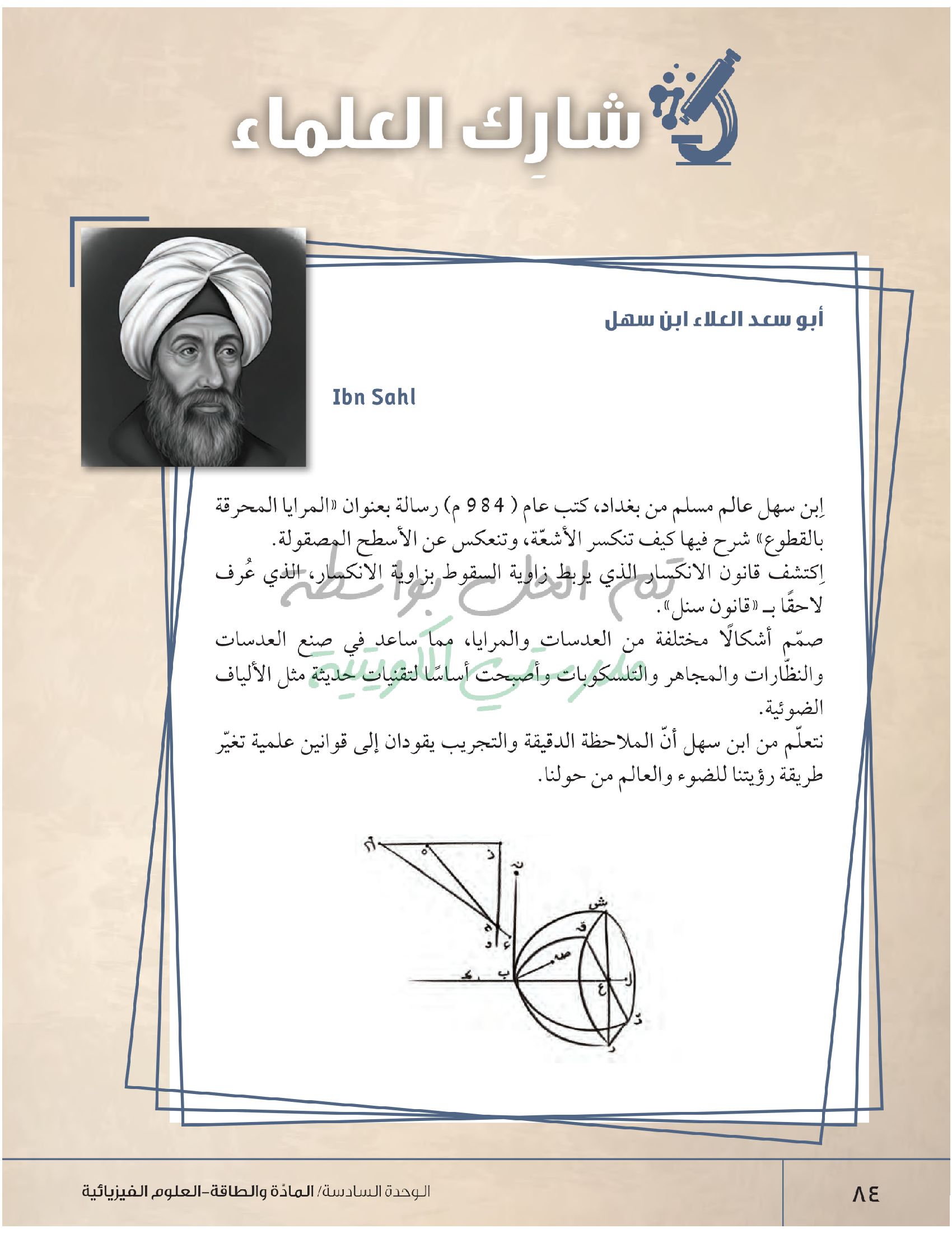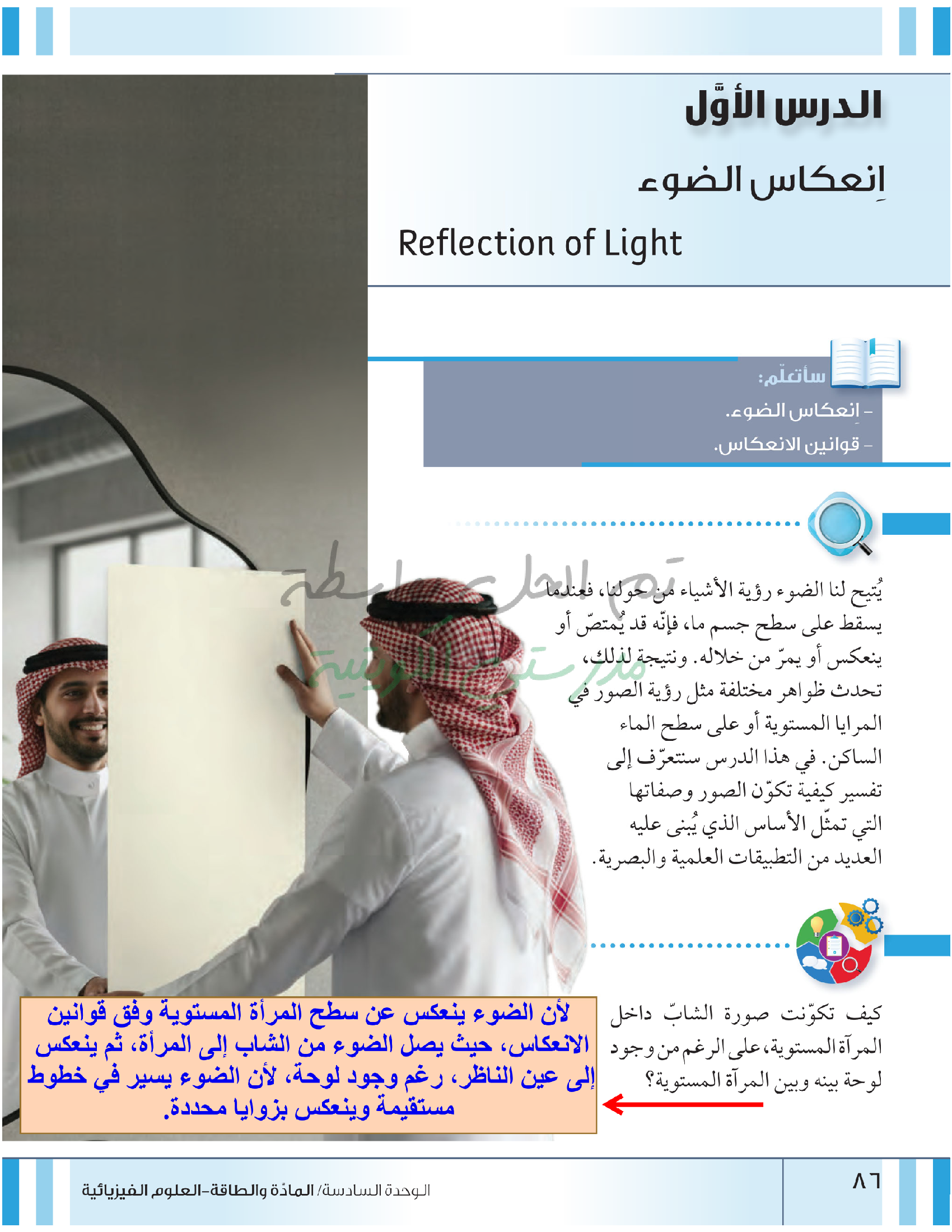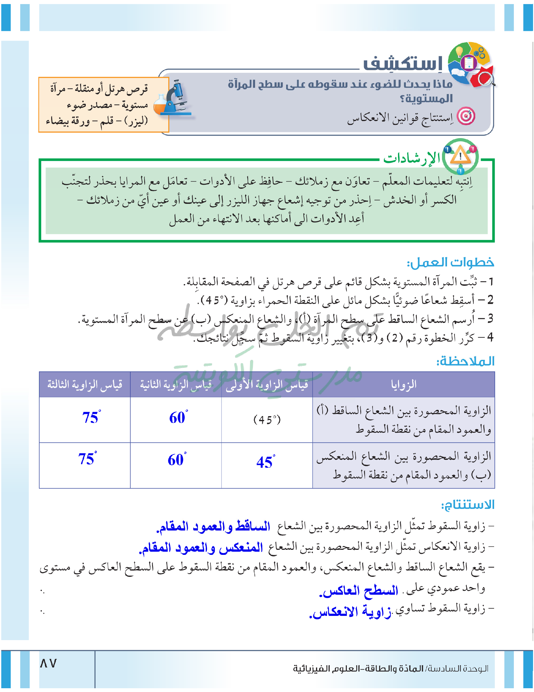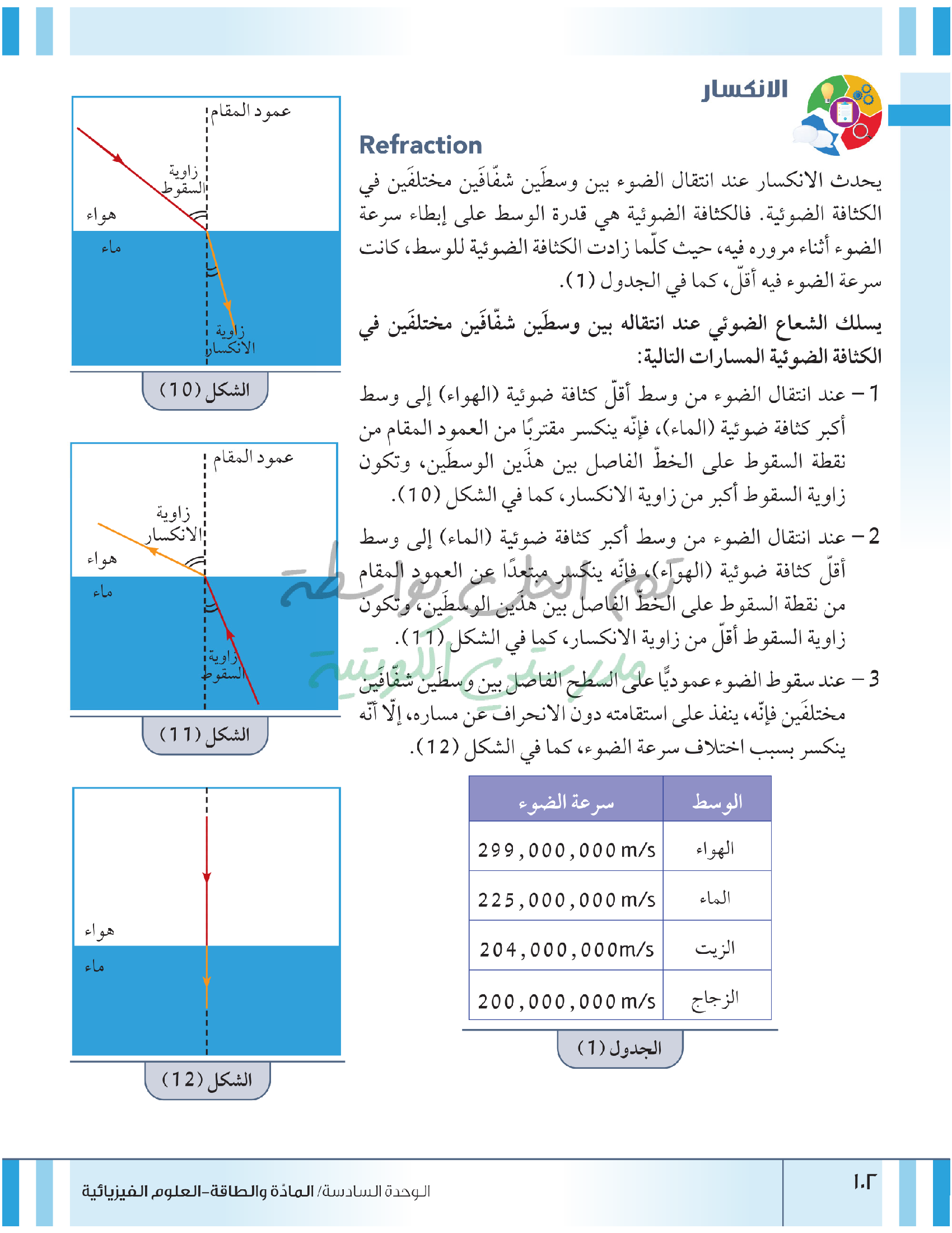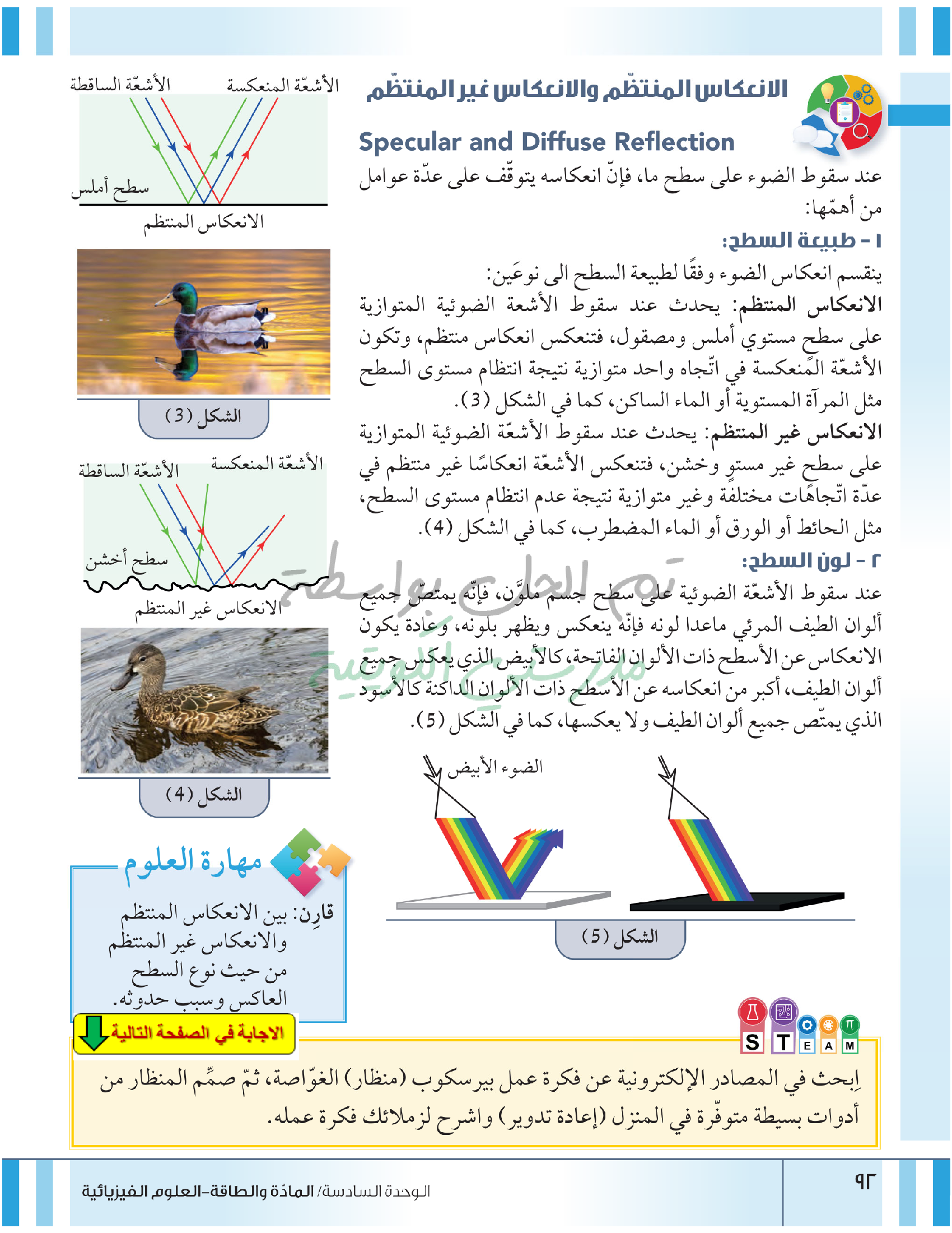تقييم نهاية فصل انعكاس وانكسار الضوء