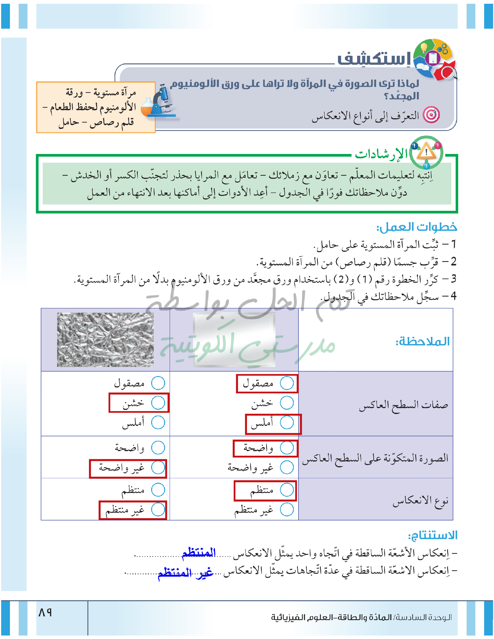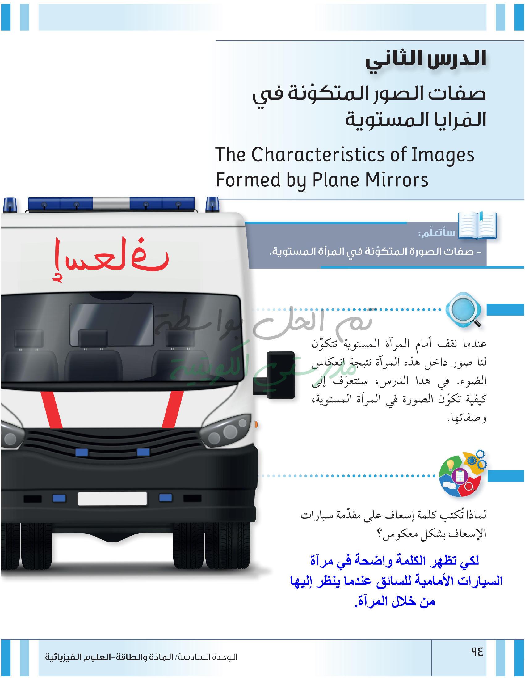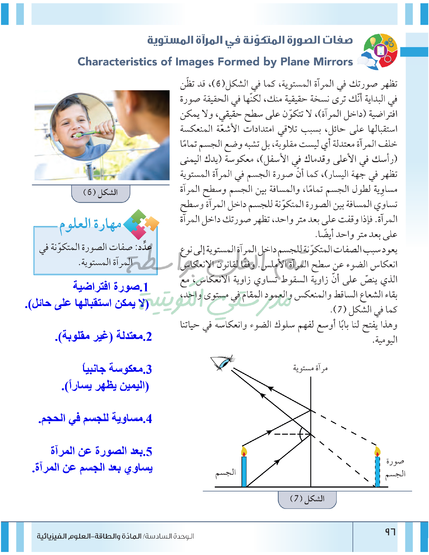 صفات الصور المتكونة في المرايا المستوية