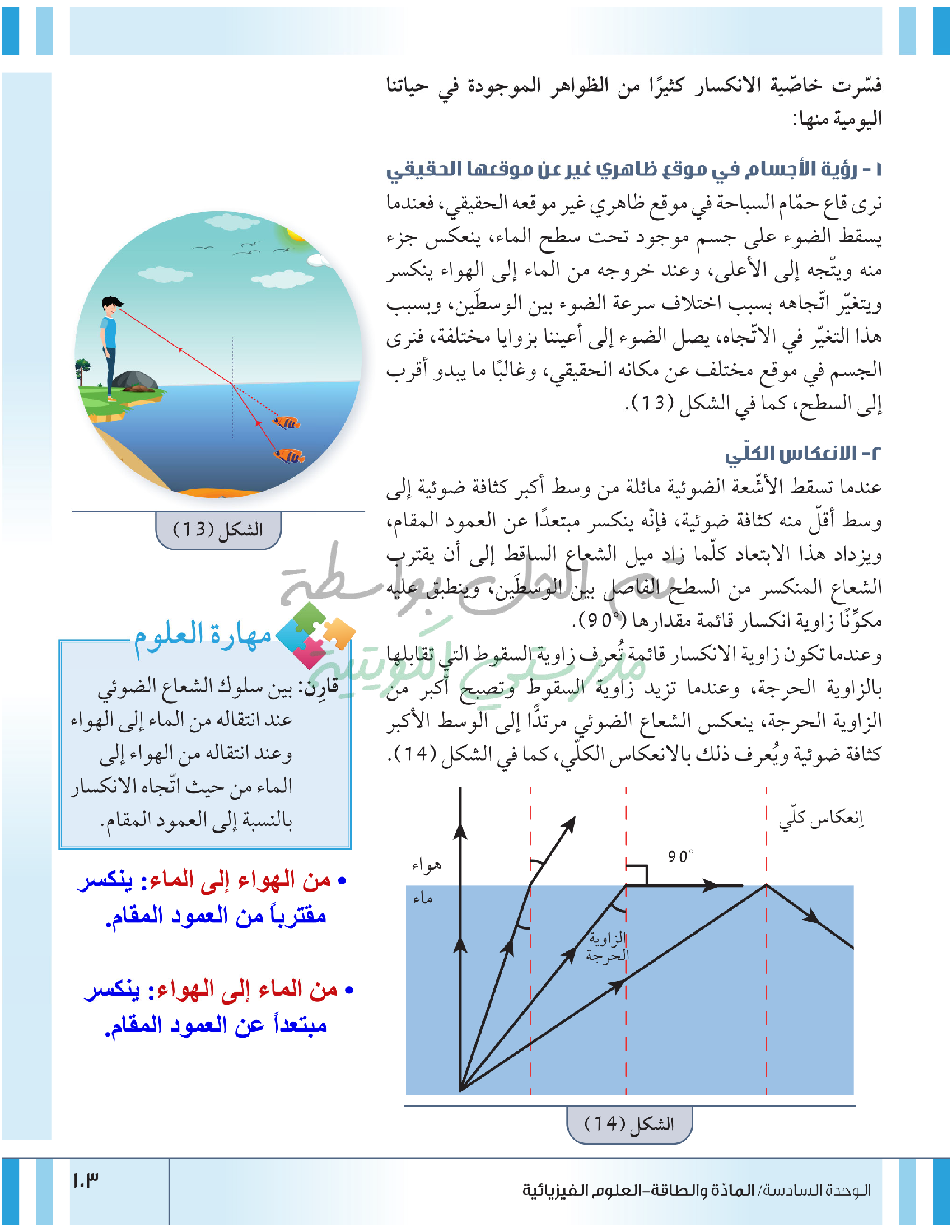 انكسار الضوء والانعكاس الكلي