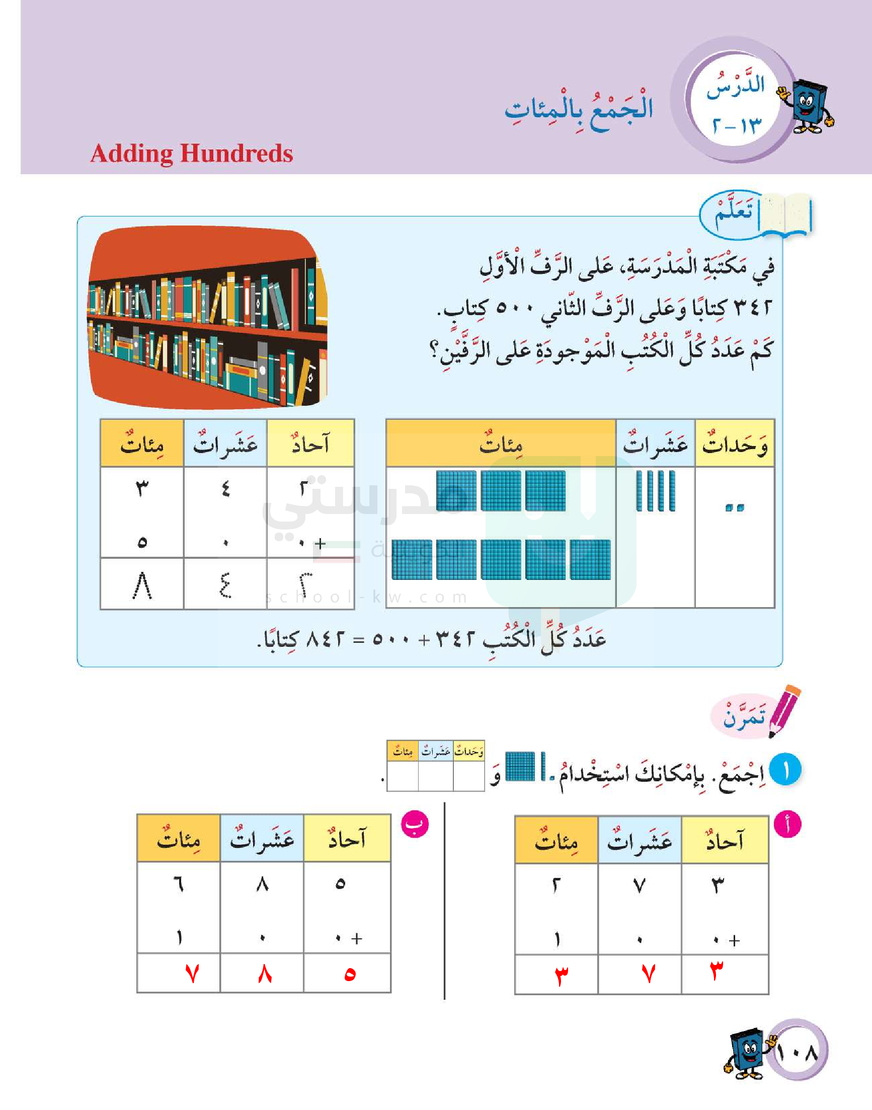 طرح مئات من عدد رمزه مكون من 3 أرقام