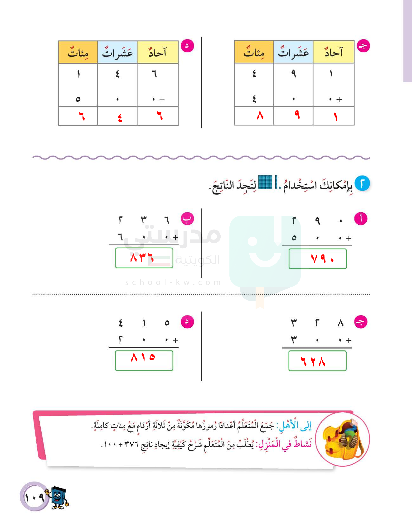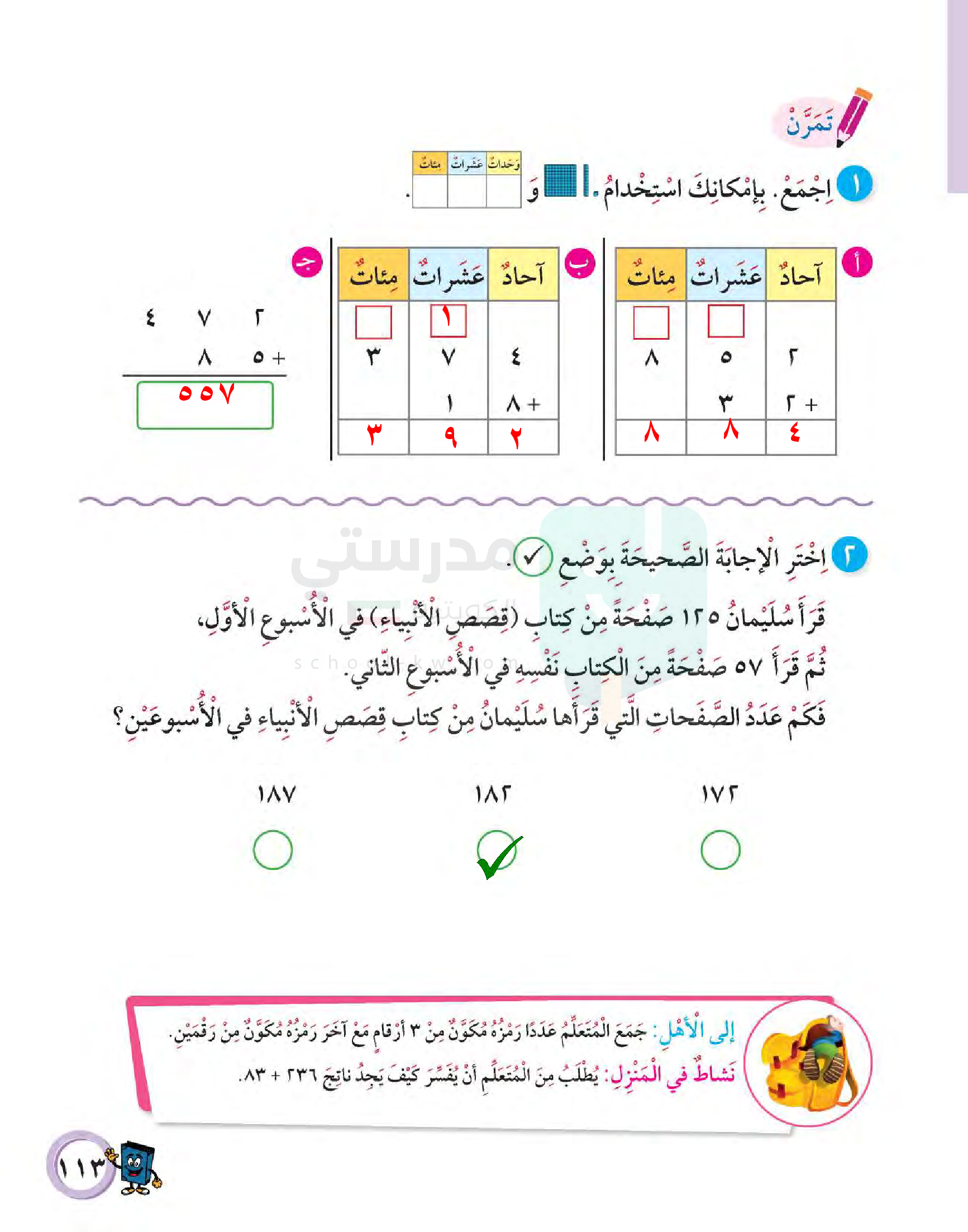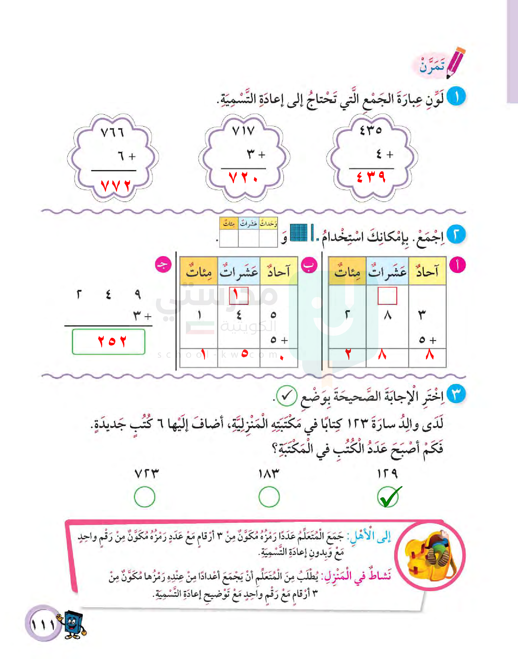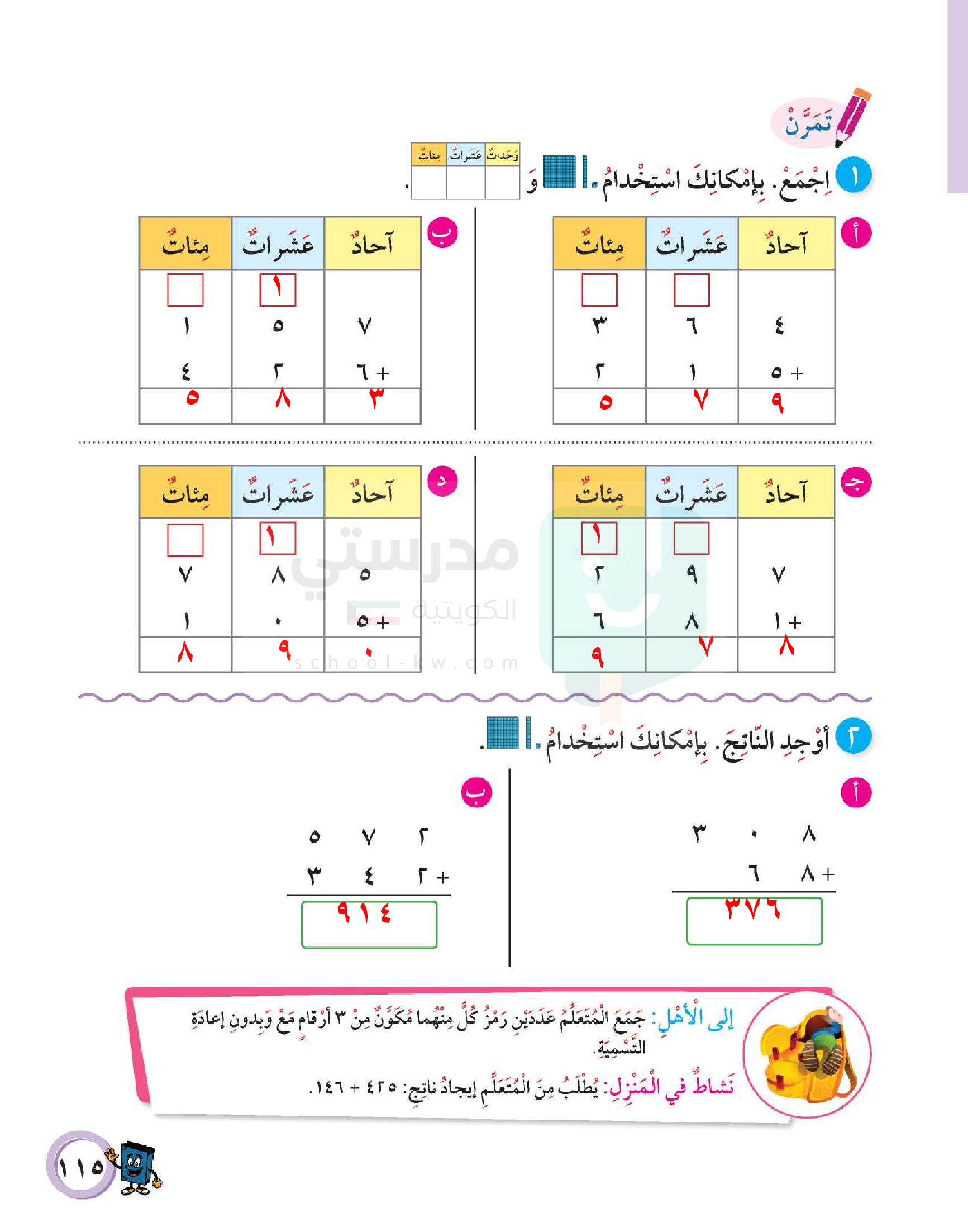 جمع عددين رمز كل منهما مكون من 3 أرقام