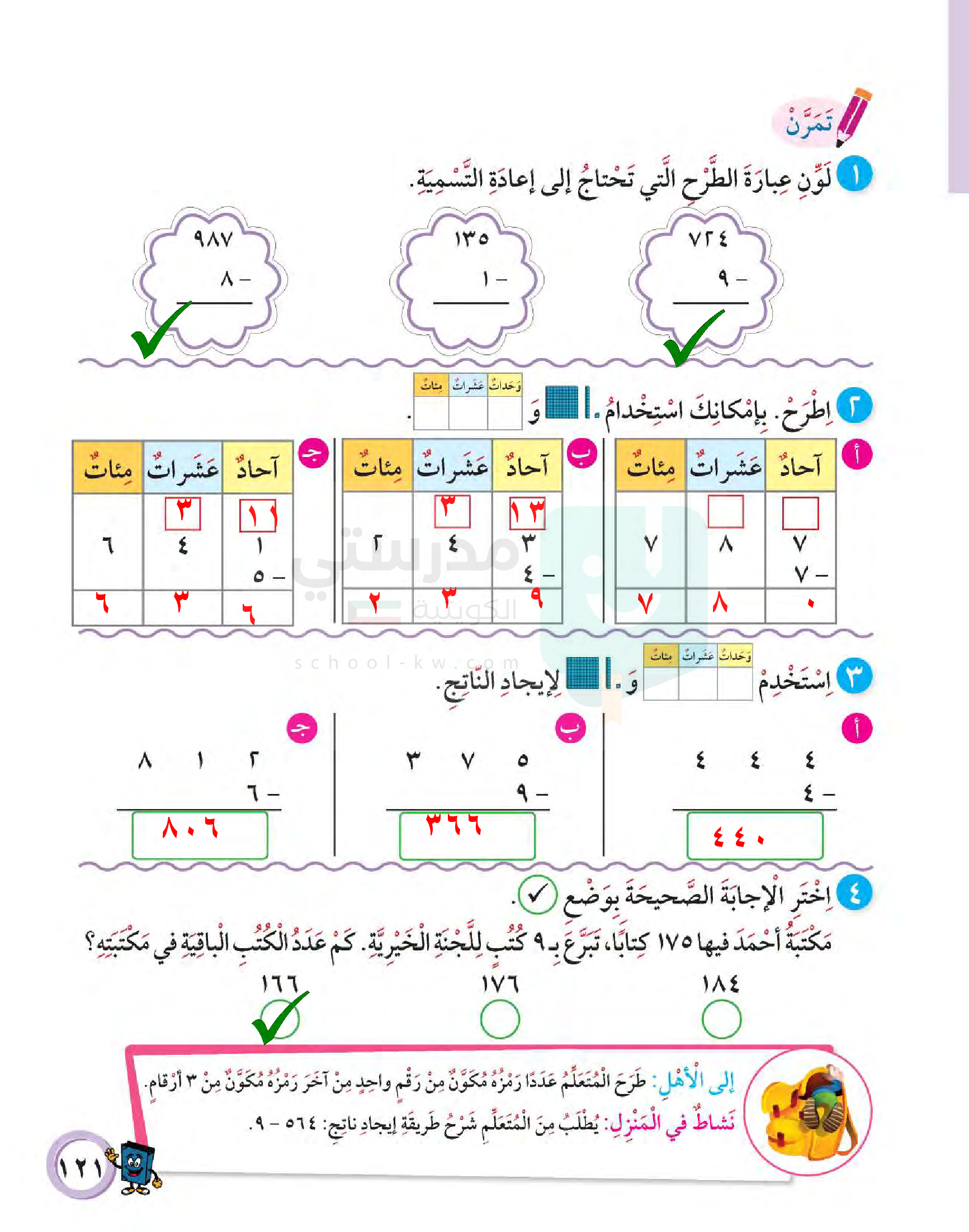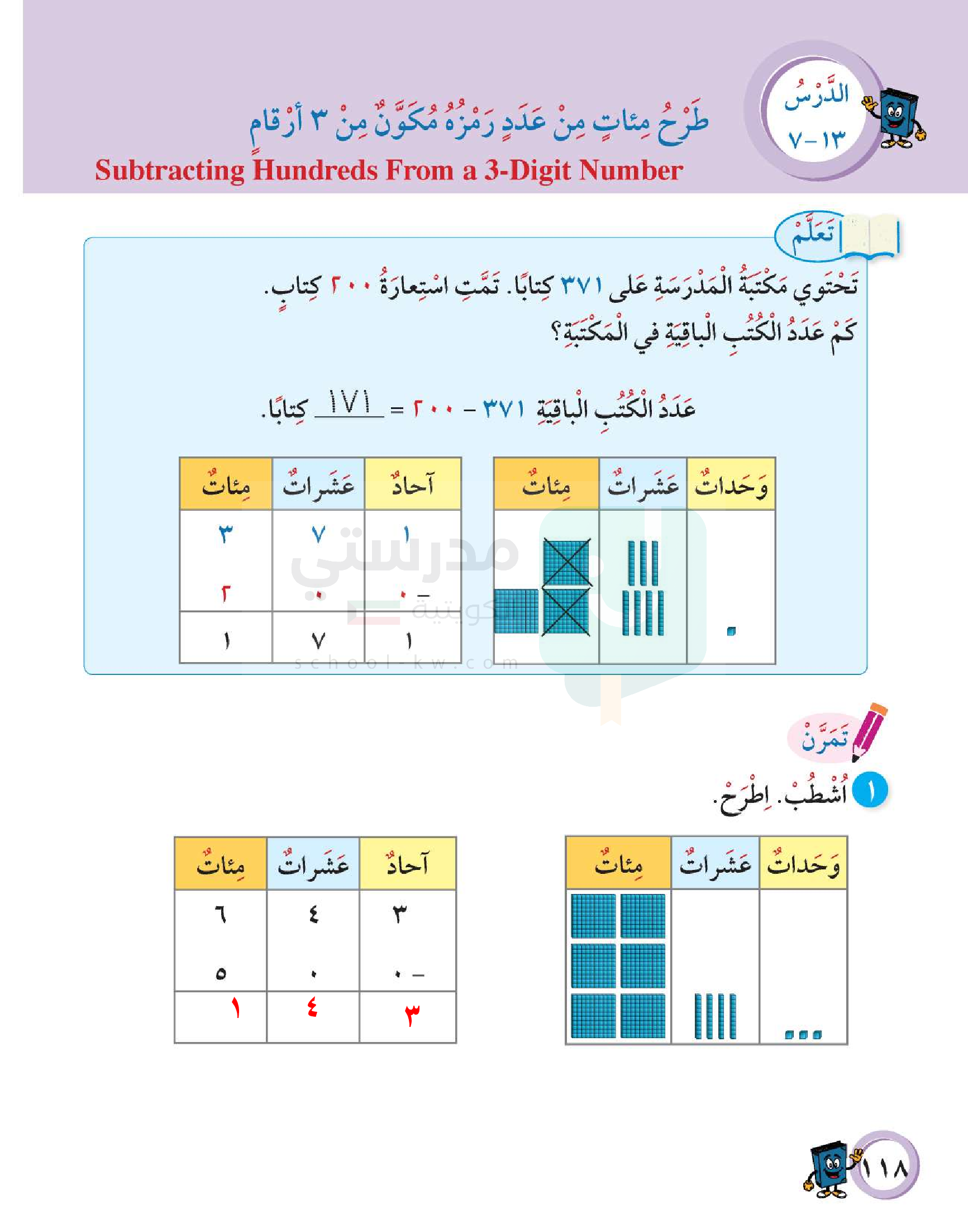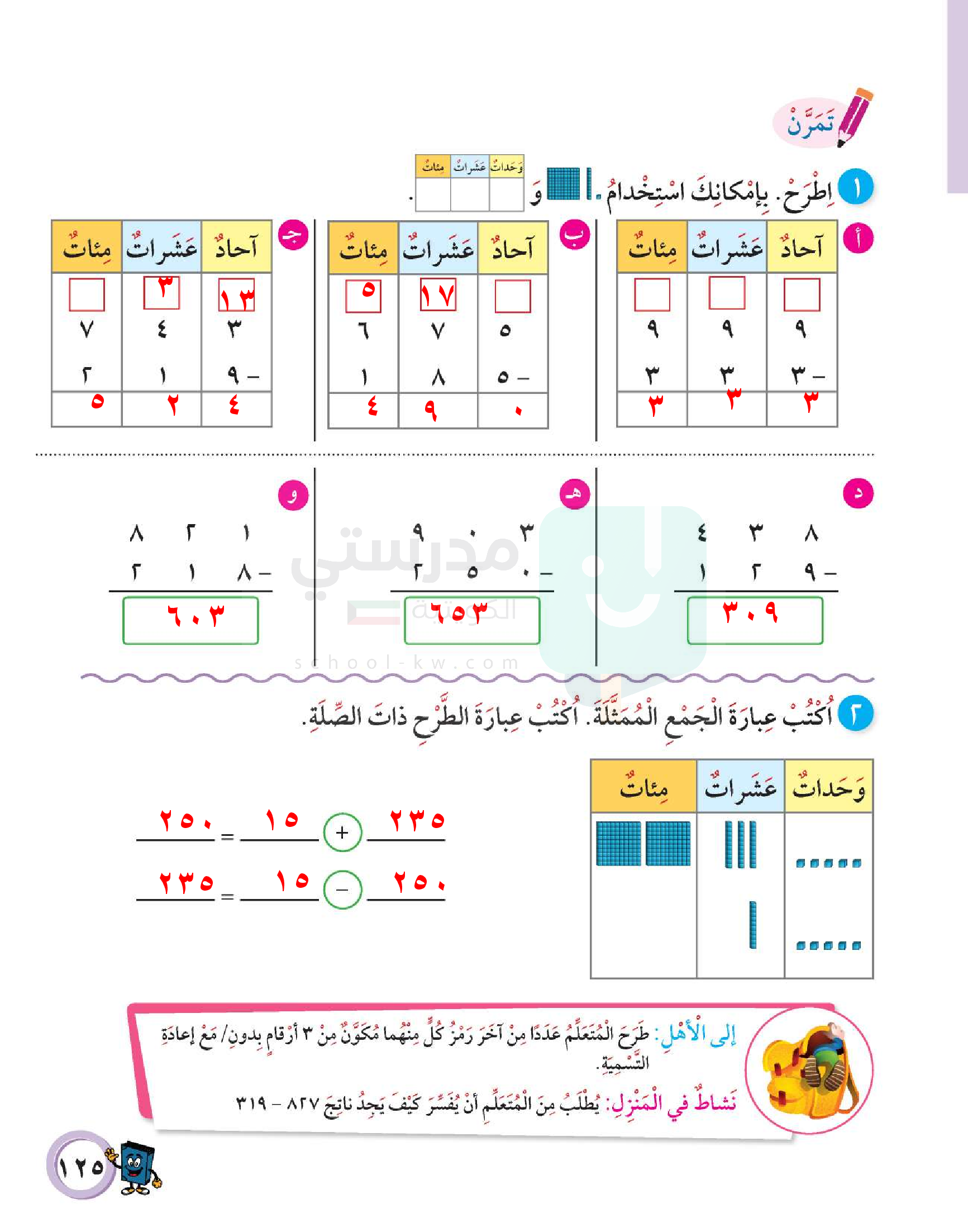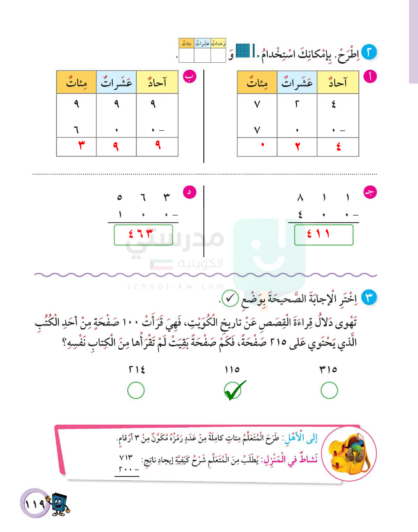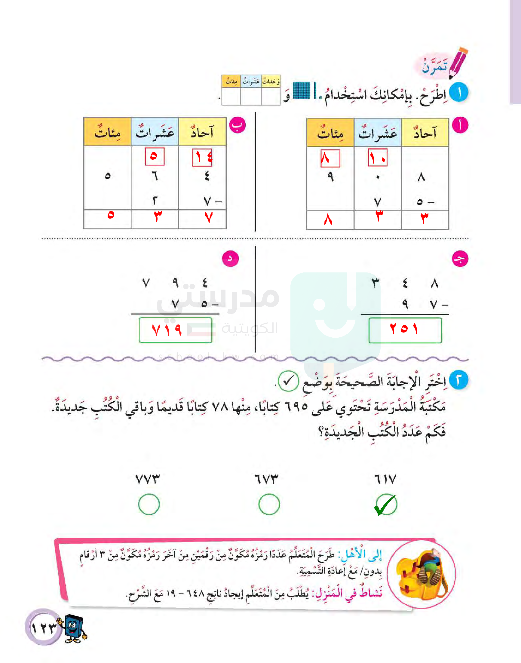 طرح عدد من عدد آخر رمز كل منهما مكون من 3 أرقام